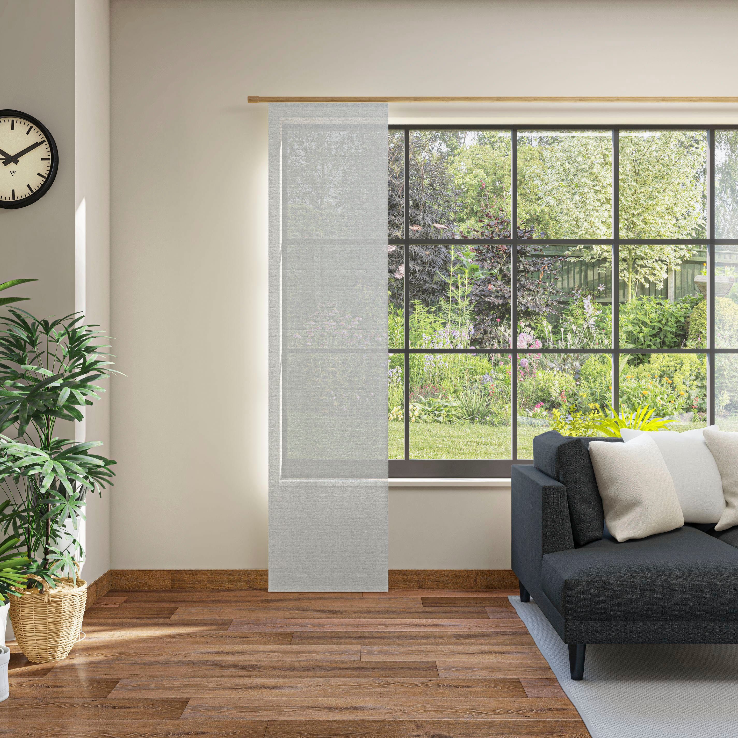 Hinweis Dekoration | Die angegebenen Maße sind die fertig dekorierten Maße. Eine Schiebegardine ist eine schmale, glatt hängende Stoffbahn, die sich sowohl als Sichtschutz als auch zur Raumteilung eignet. Durch die Schiebetechnik sind Schiebegardinen sehr flexibel einsetzbar. |