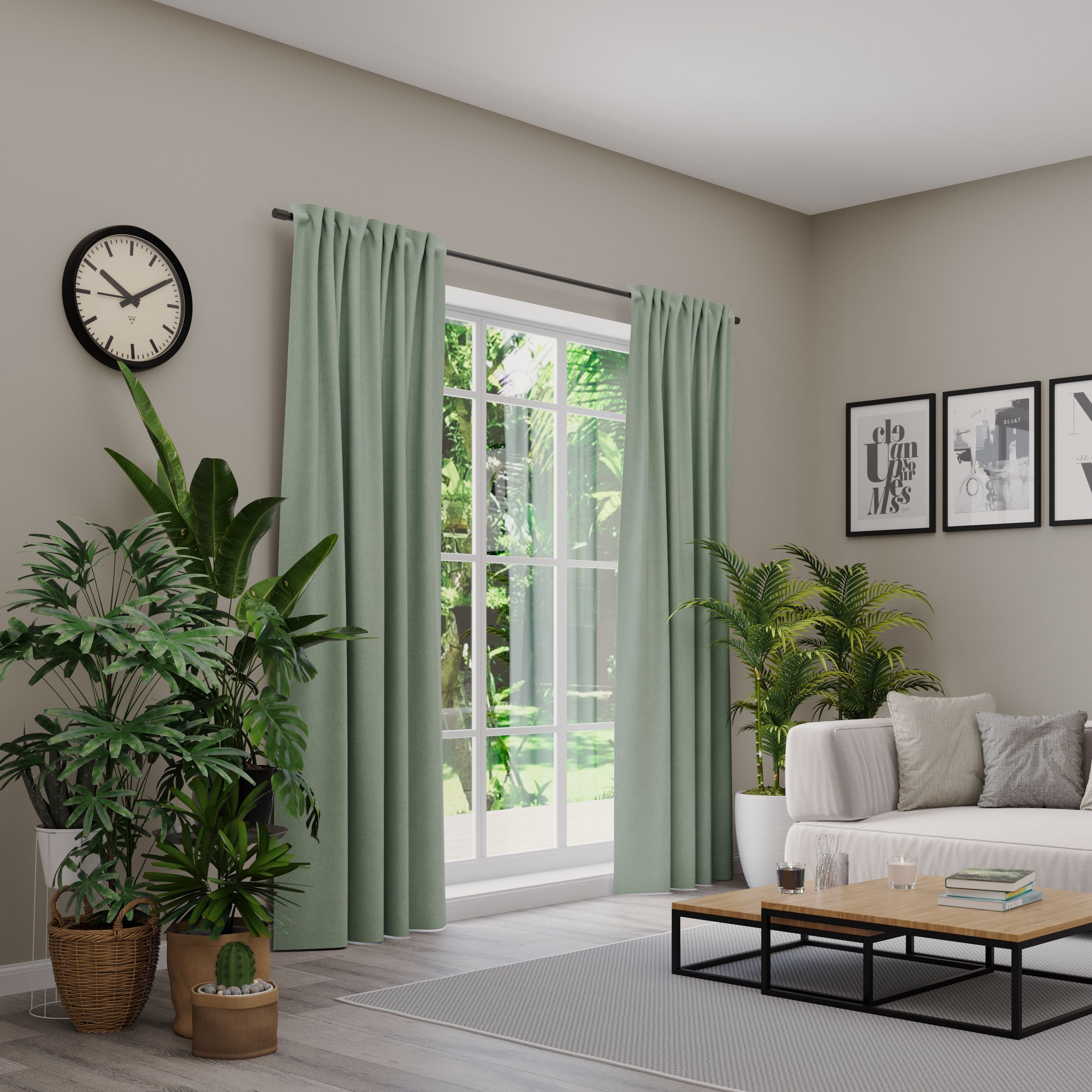 Hinweis Dekoration | Am Fenster fertig dekoriert, reduziert sich die Breite um ca. die Hälfte. Die angegebenen Maße sind Stoffmaße. |