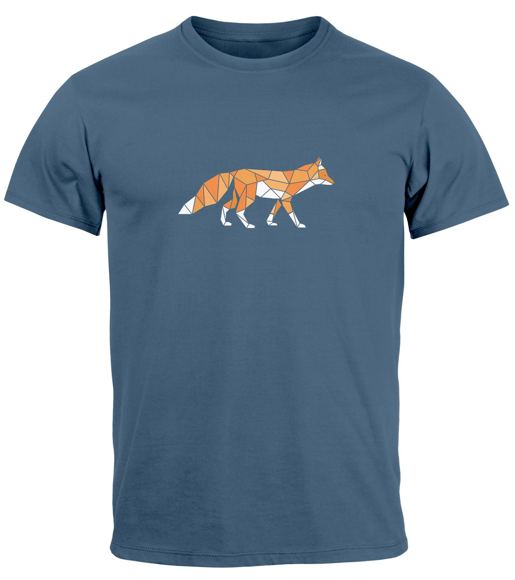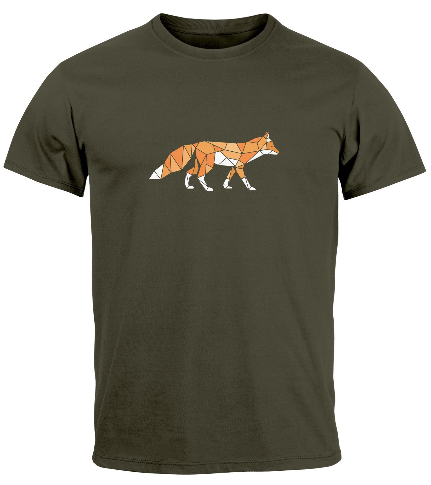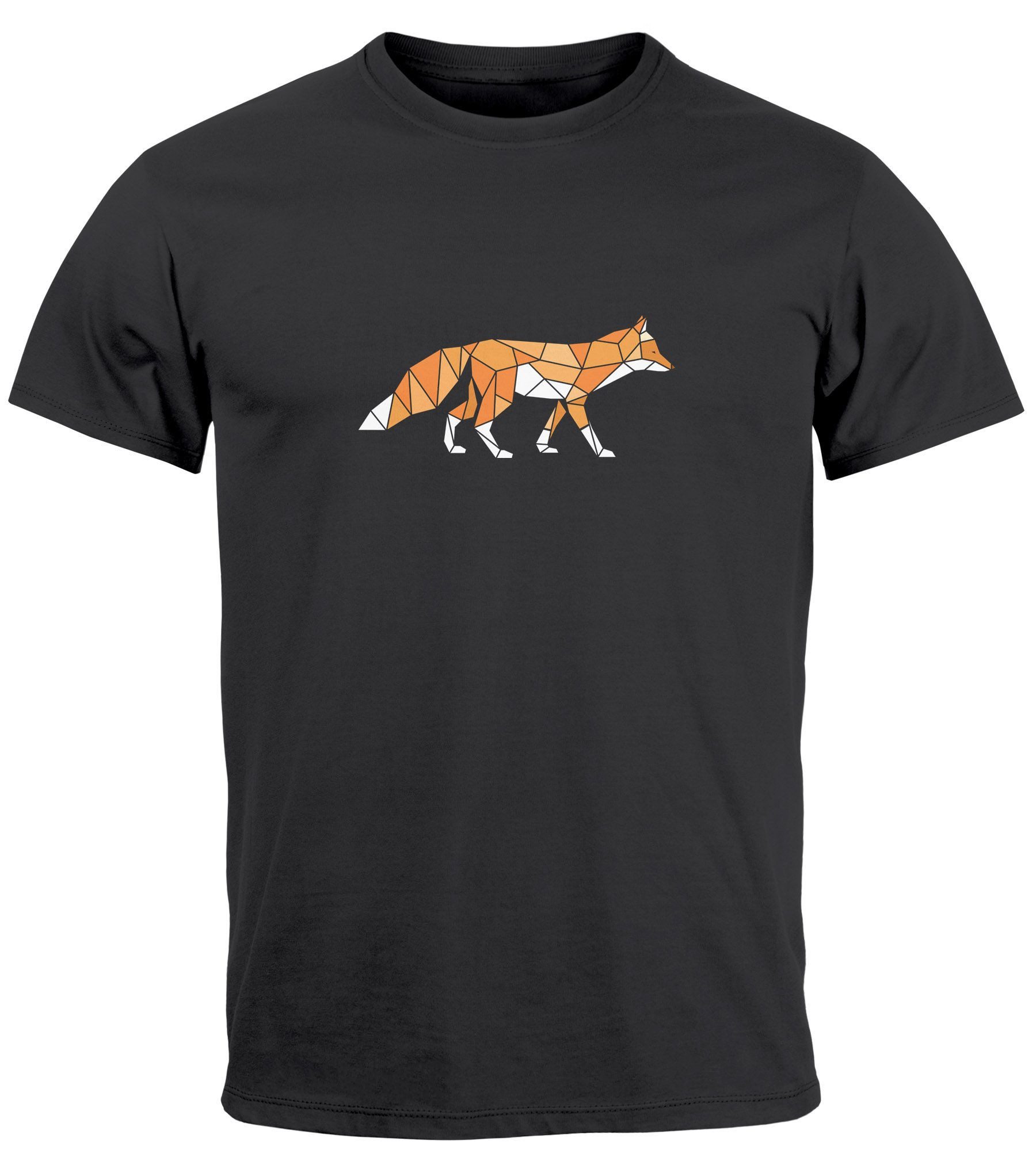 Neverless Print-Shirt Herren T-Shirt Aufdruck Fuchs Polygon Kunstdruck Geometrie Outdoor mit Print