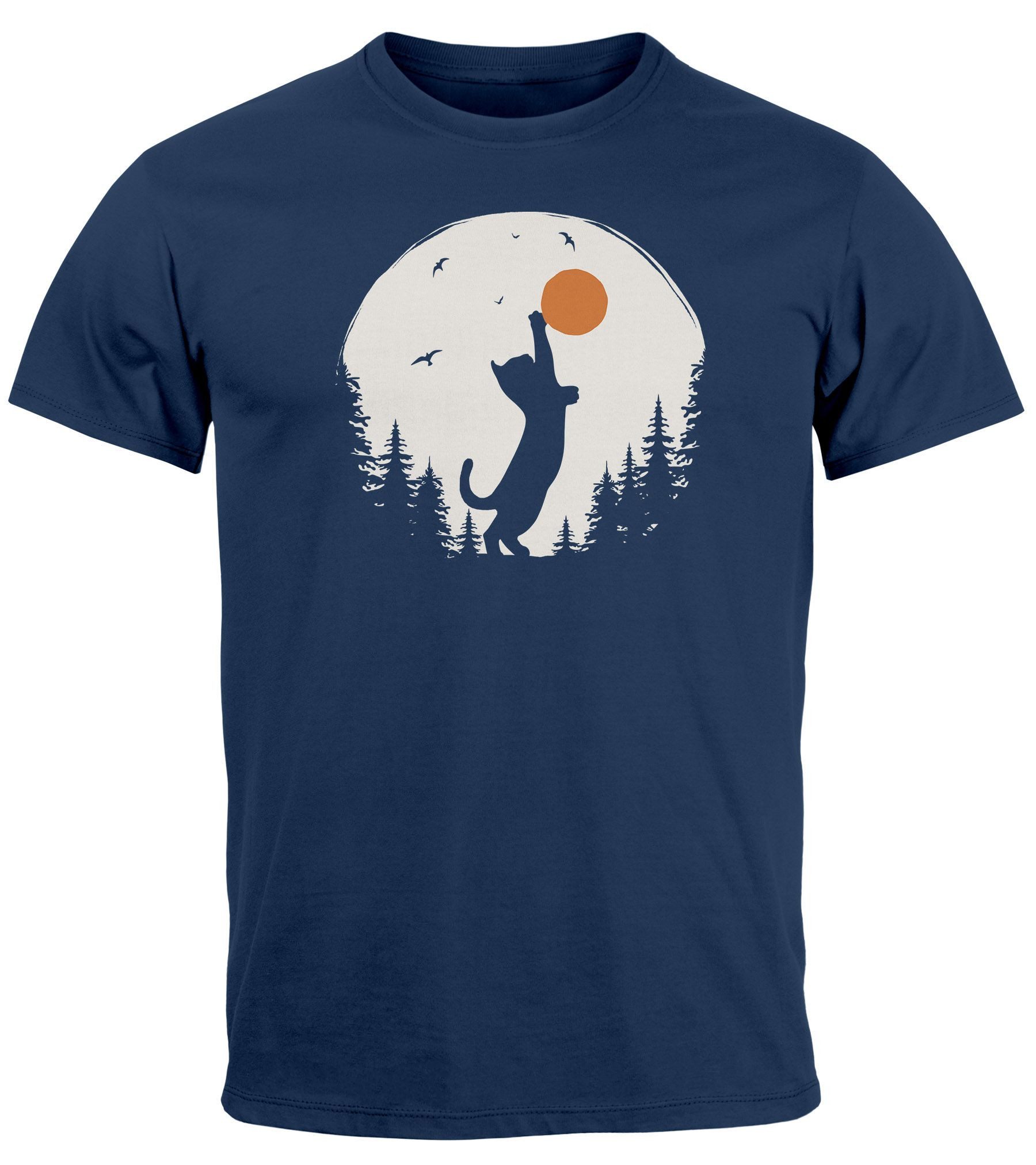 Neverless Print-Shirt Herren T-Shirt Frontprint Katze Silhouette Natur Aufdruck Printshirt mit Print