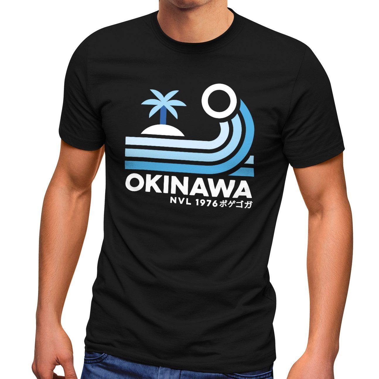 Print-Shirt Herren T-Shirt Japan Okinawa Schriftzug Retro Palme Welle Fashion