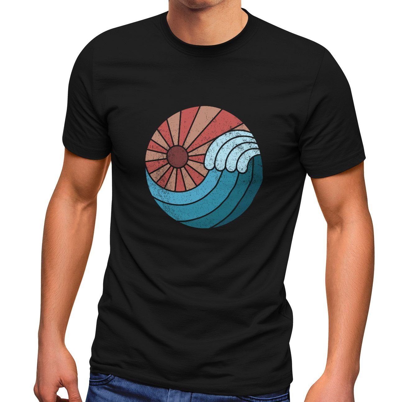 Print-Shirt Neverless® Herren T-Shirt Welle Wave Sonne Sommer Retro Vintage