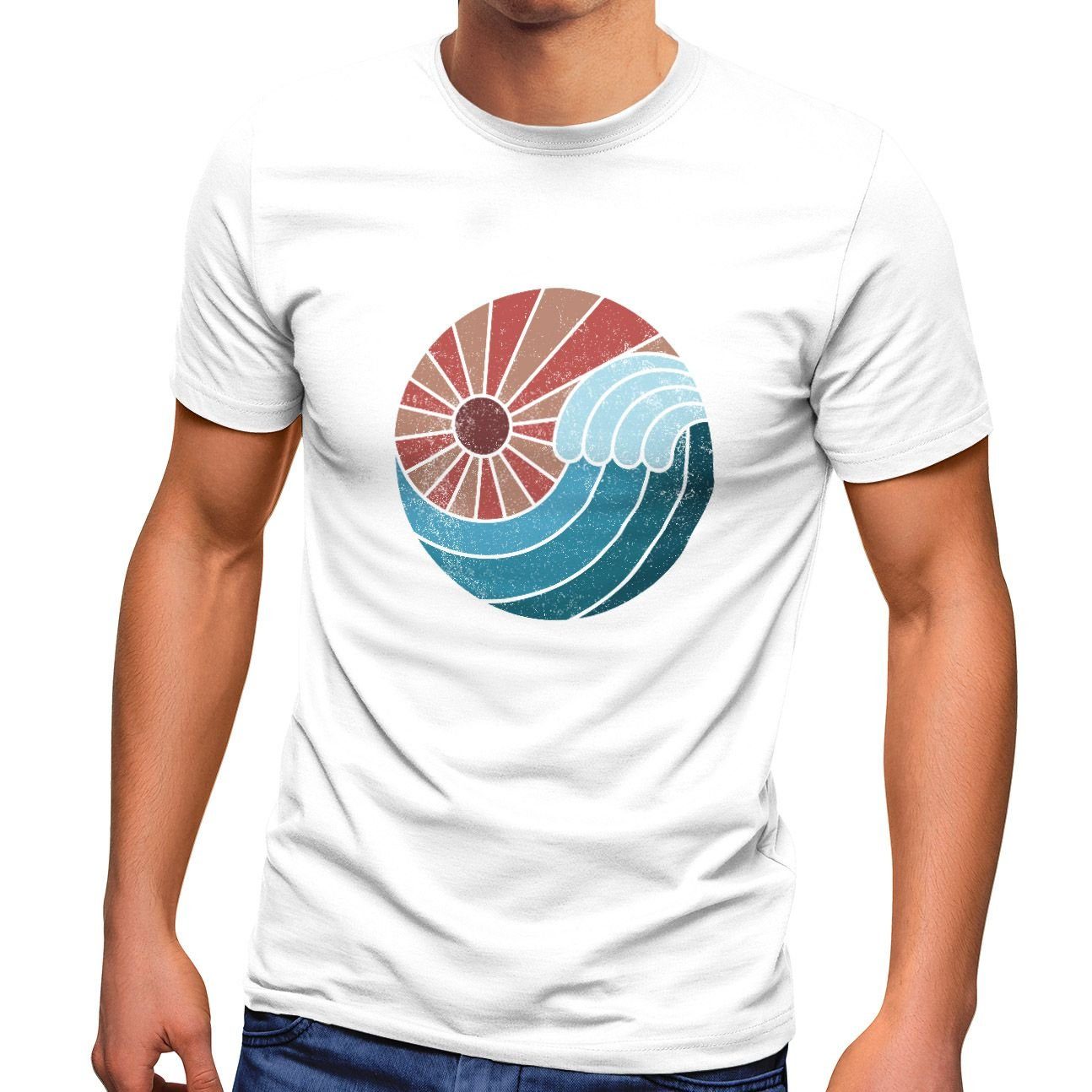 Neverless Print-Shirt Neverless® Herren T-Shirt Welle Wave Sonne Sommer Retro Vintage mit Print