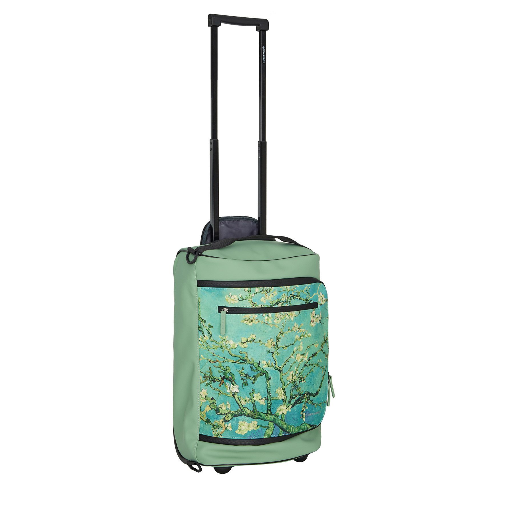 Der New Rebels OnBoard Trolley Laredo vereint funktionales Design mit künstlerischem Flair. Dieser hochwertige Reisekoffer besticht durch sein wasserabweisendes Planenmaterial aus PU und den einzigartigen Kunstdruck im Stil von Van Goghs "Mandelblütenzweig" in frischen Grün- und Türkistönen.