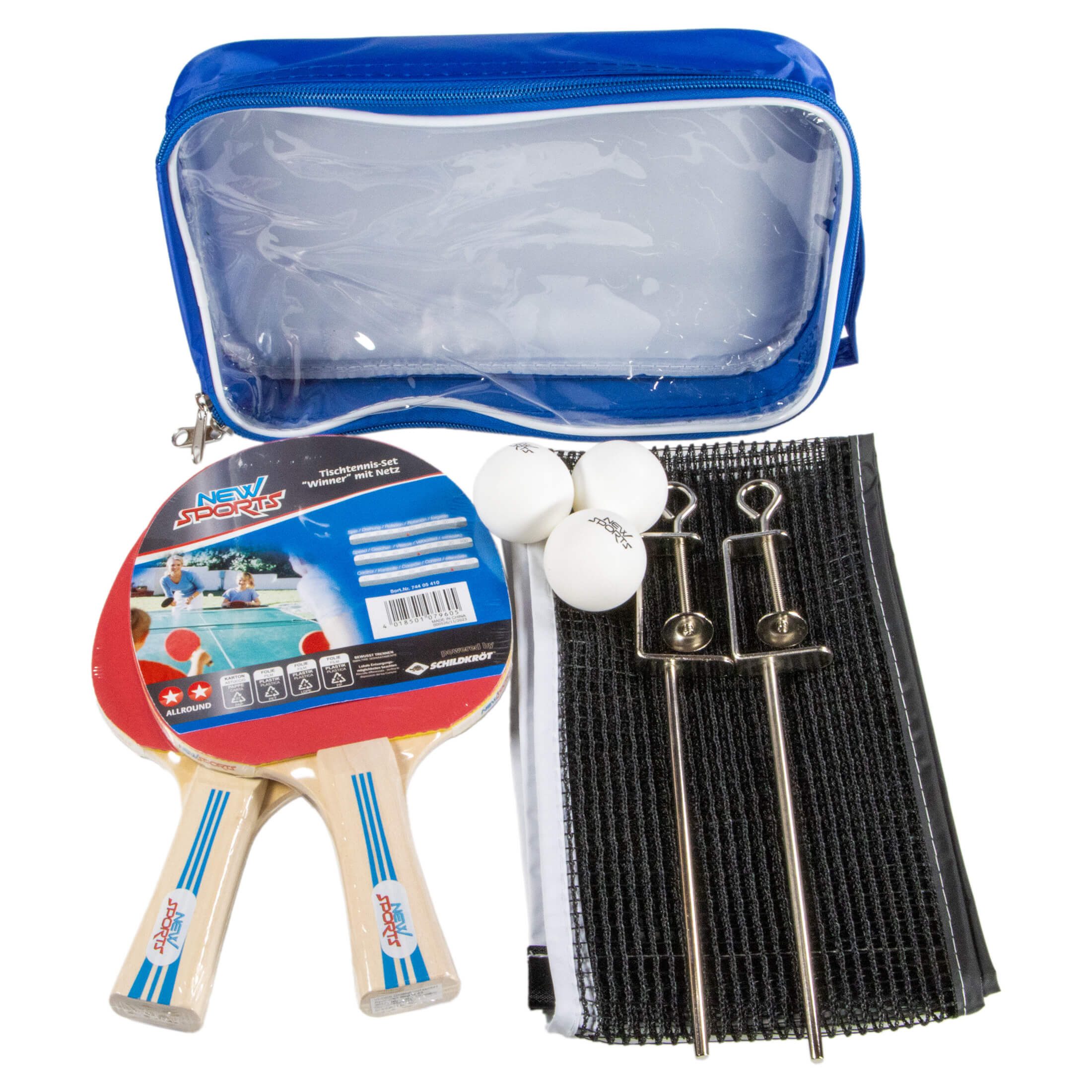 - Set bestehend aus 2 Schlägern, 3 Bällen und Netz mit Tischklemmen