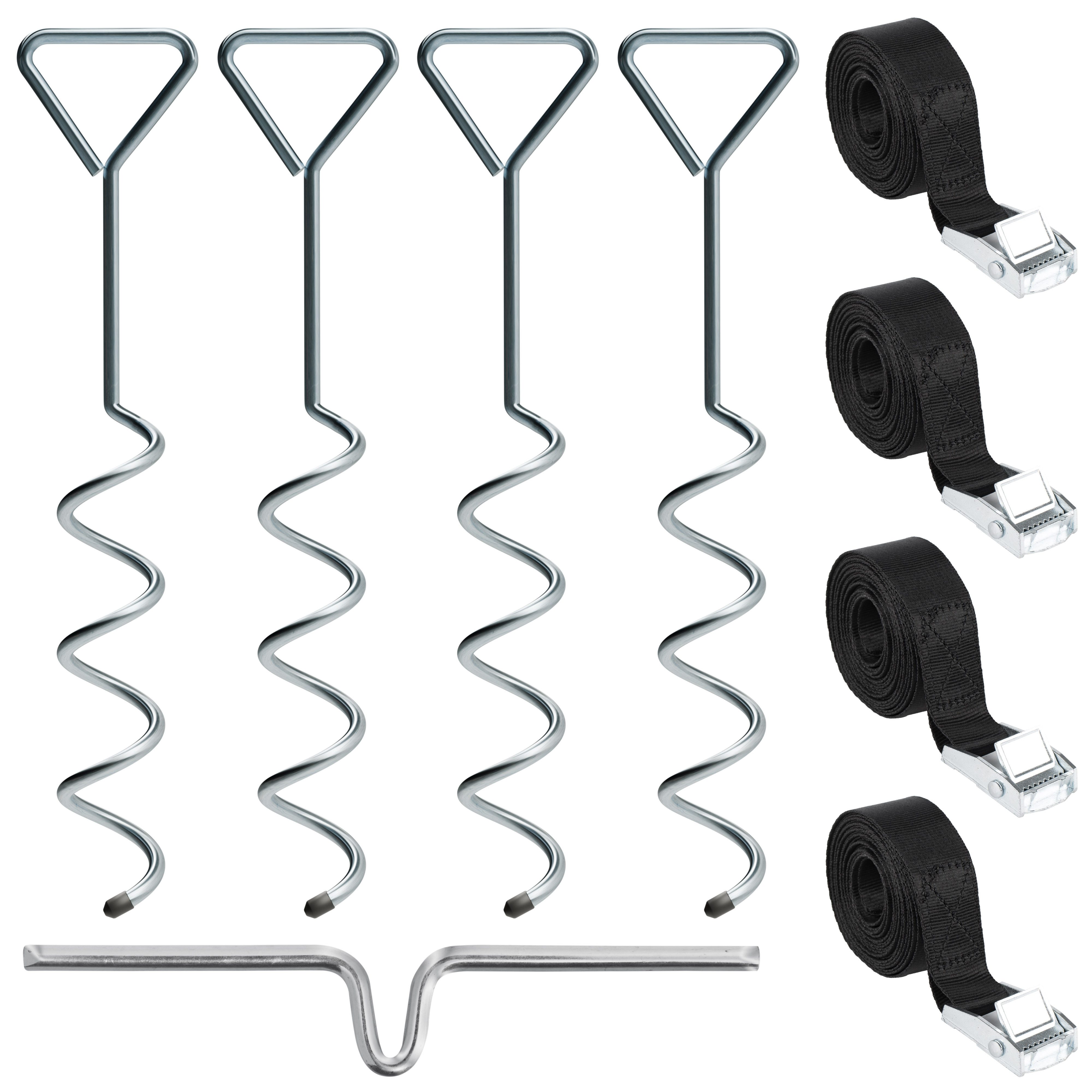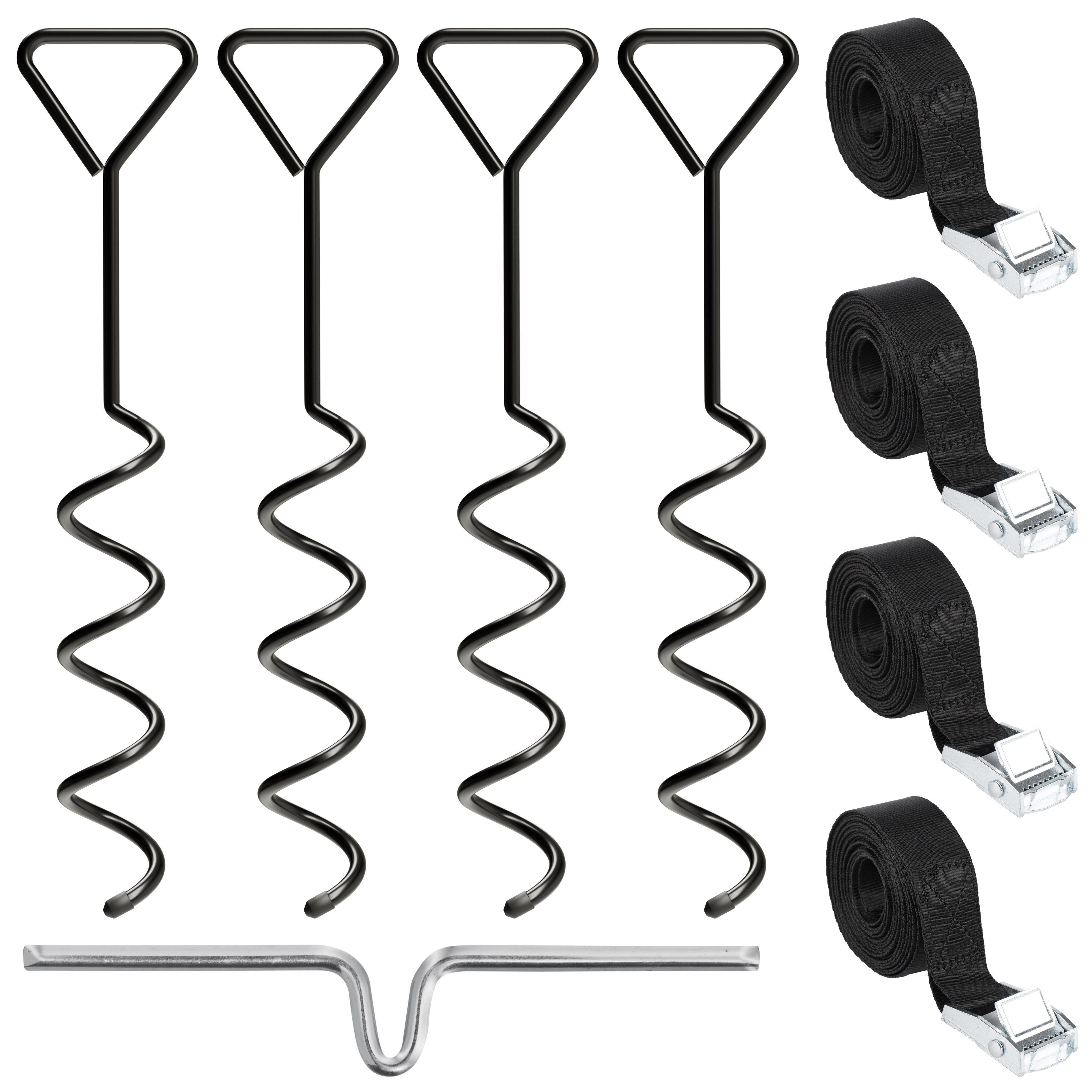 Das NewHabitat Erdanker Set bietet die perfekte Lösung zur sicheren Befestigung von Trampolinen, Pavillons, Zelten oder Schaukeln. Die extra langen Bodenanker aus Edelstahl sorgen für maximale Stabilität, während die robusten Spanngurte auch extremen Witterungsbedingungen standhalten.