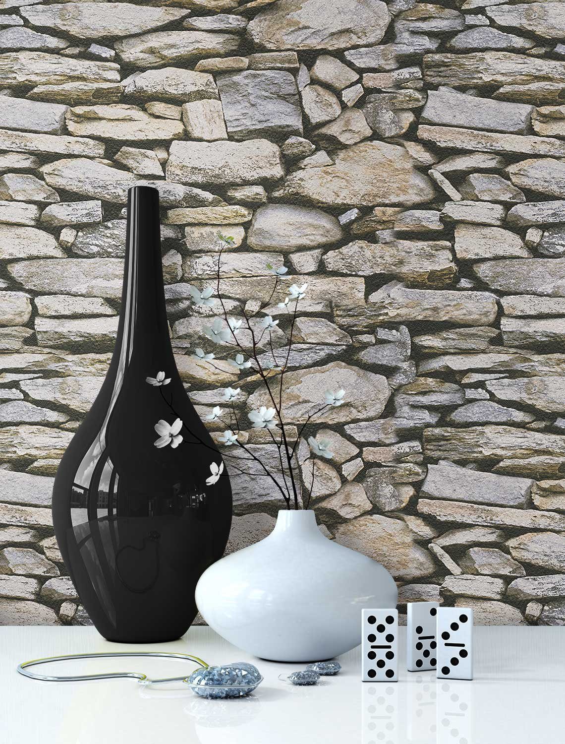 Oberflächenstruktur | Steintapete Grau Beige Ziegelstein Backstein Mauerwerk Klinker Tapete Steinoptik Wohnzimmer Schlafzimmer Flur |