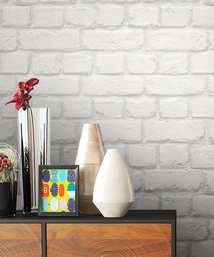 Optik | Steintapete Tapete Weiß Steinoptik Wohnzimmer Ziegelstein Backstein Mauerwerk Klinker |
