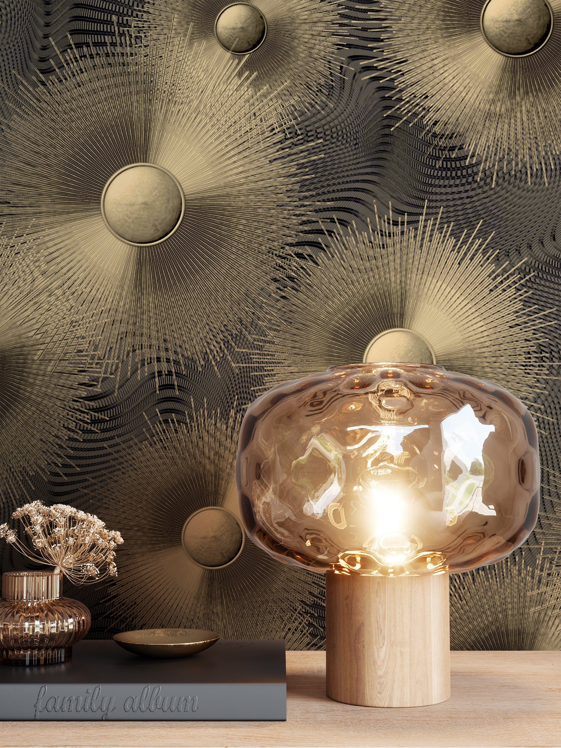 Oberflächenstruktur | Gold Tapete Uni Leicht Glänzend - Unitapete Modern Einfarbig Struktur für Wohnzimmer Schlafzimmer Küche |
