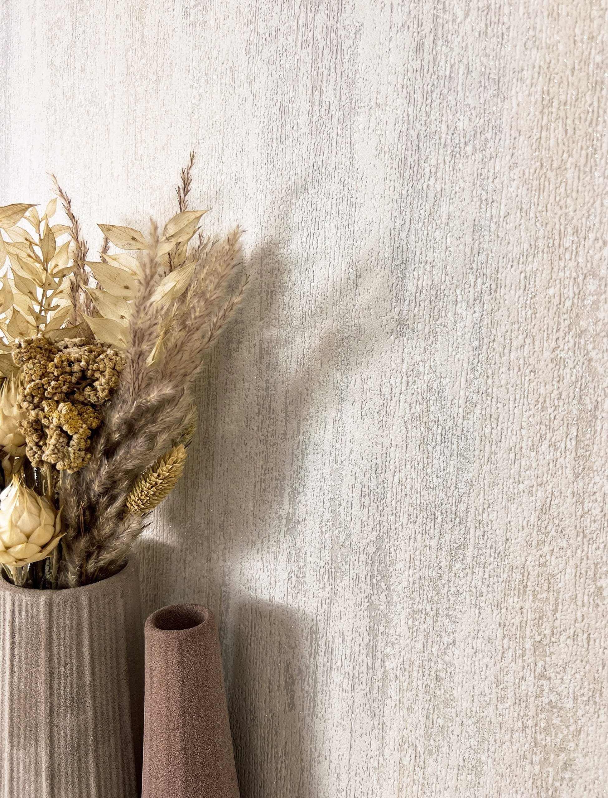 Oberflächenstruktur | Grau Tapete Modern Unifarbe - Glanztapete Universal Beige Greige Uni Glamour Struktur Metallic für Wohnzimmer Schlafzimmer Küche |