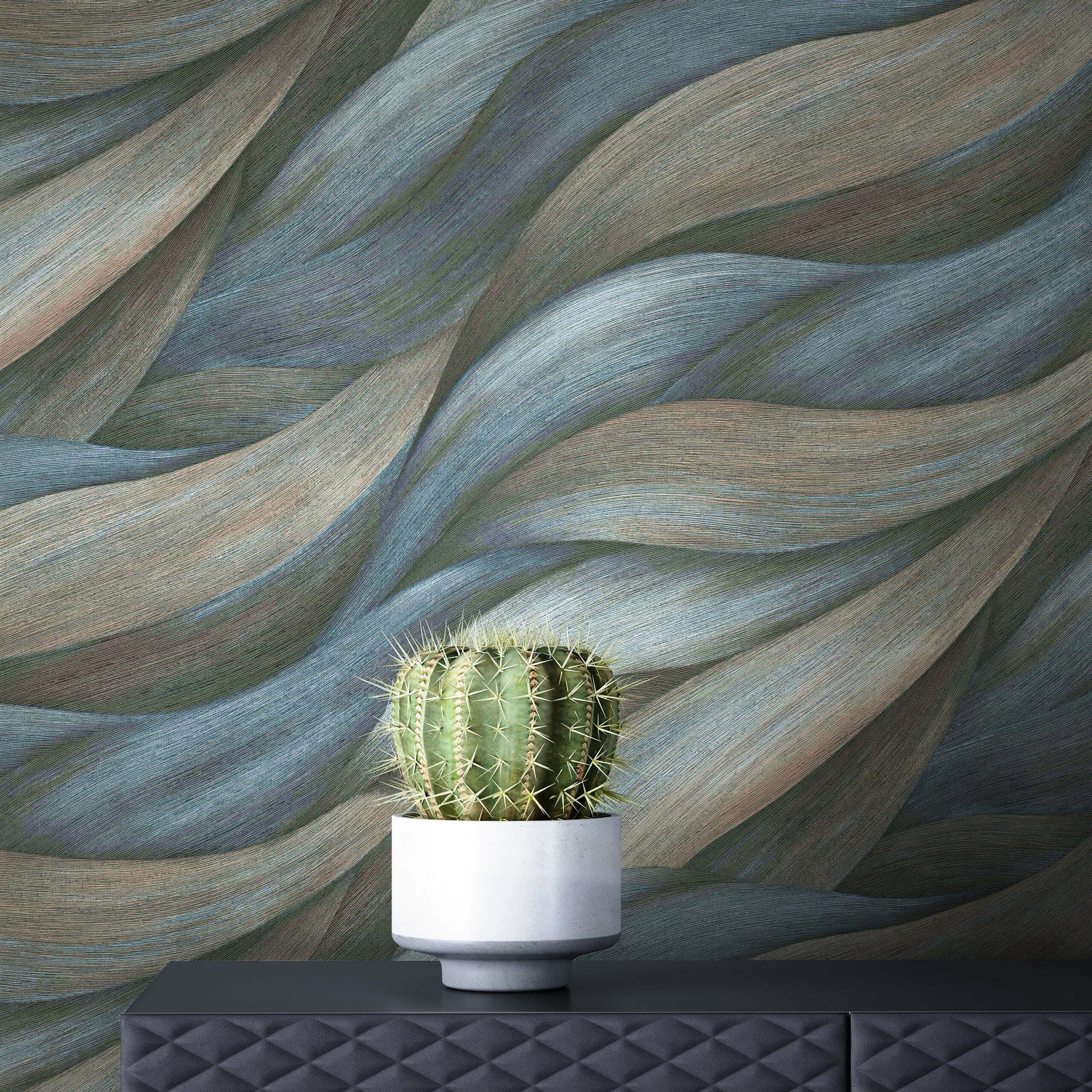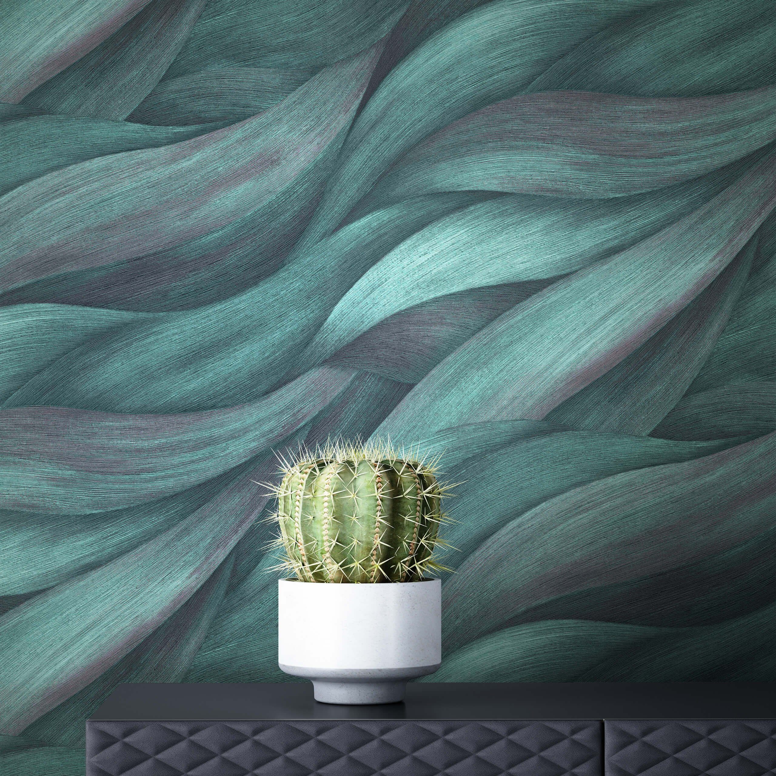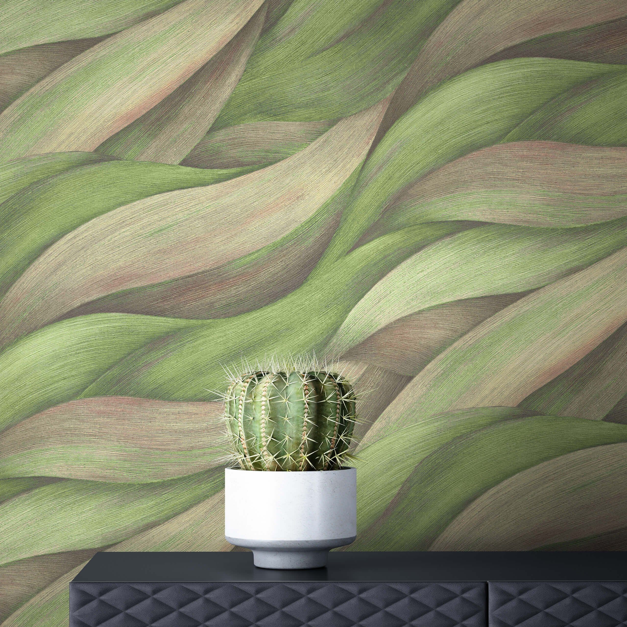 Grün Tapete Modern Blätter - Mustertapete Abstrakt Wellen Muster für Wohnzimmer Schlafzimmer Küche