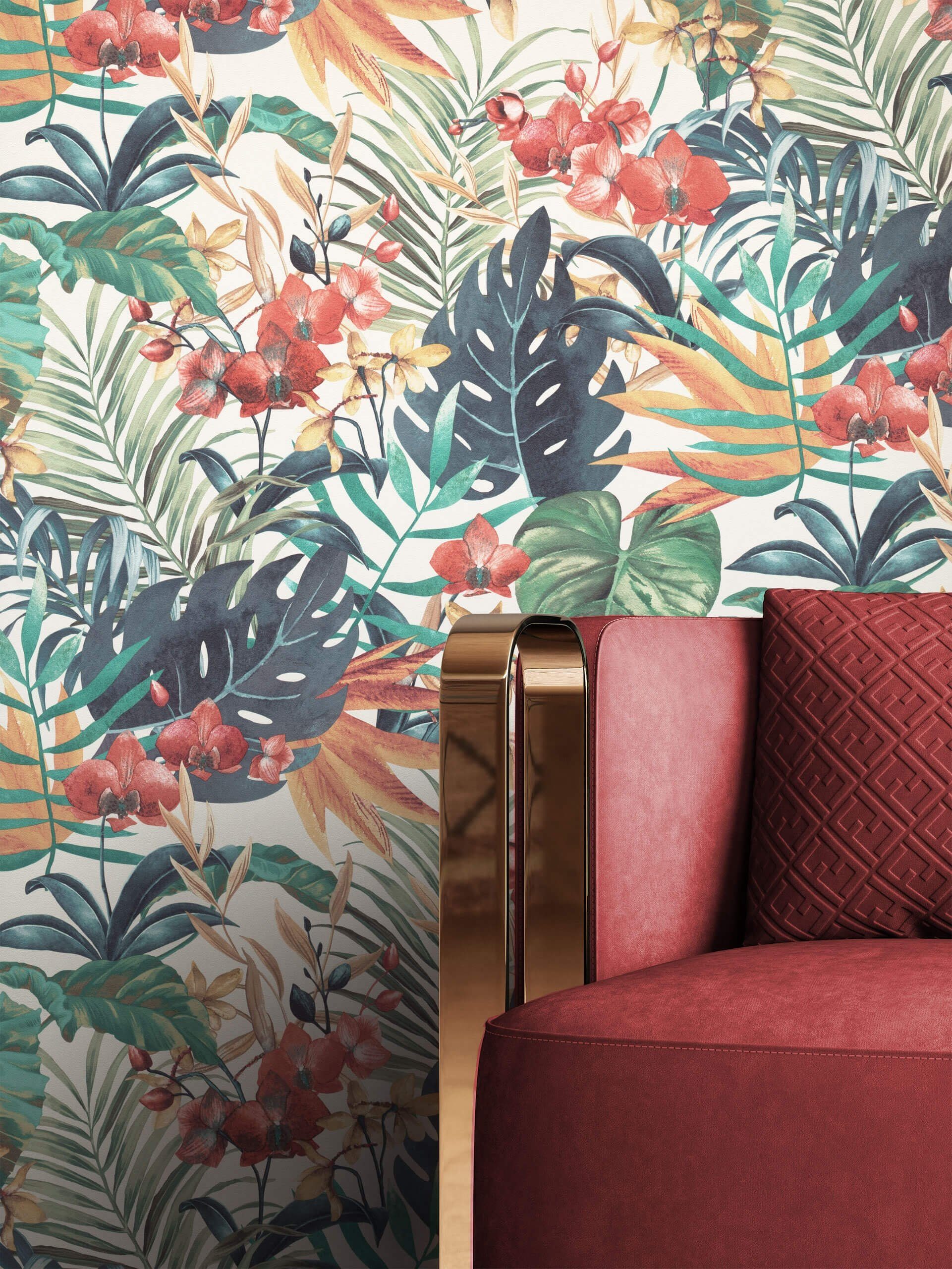 Oberflächenstruktur | Rot Tapete Modern Unifarbe - Einfarbig Uni Struktur für Wohnzimmer Schlafzimmer Küche |
