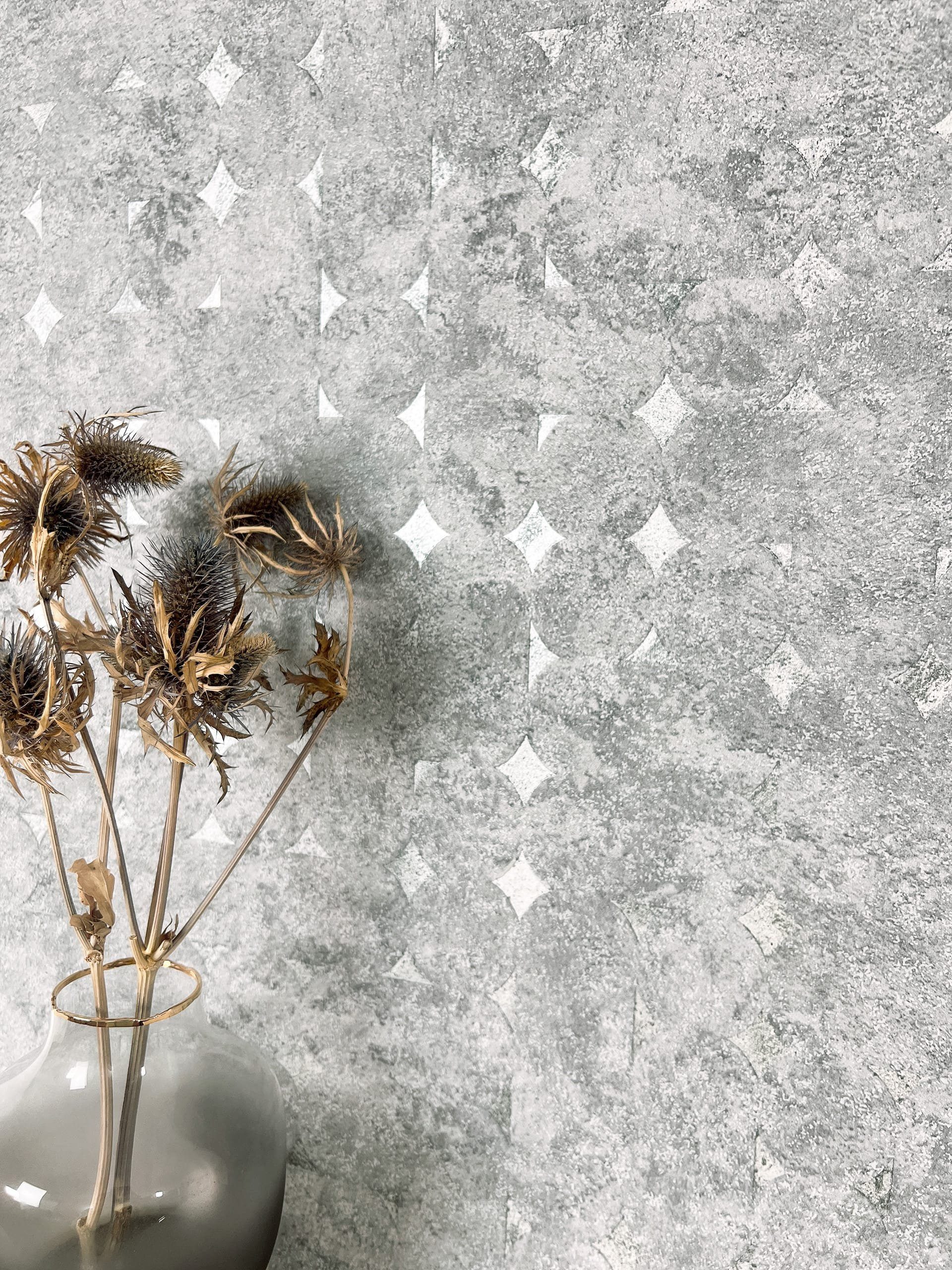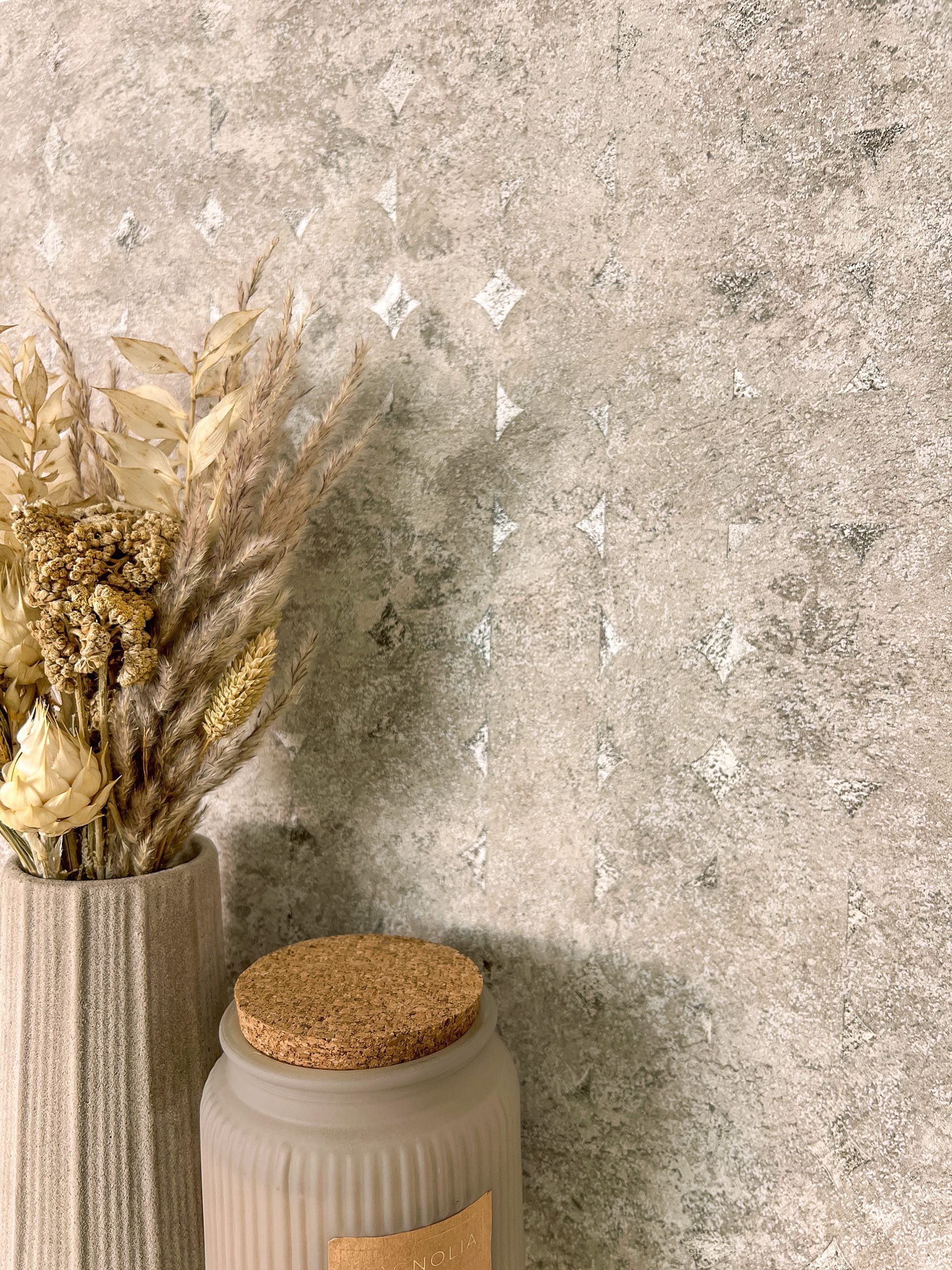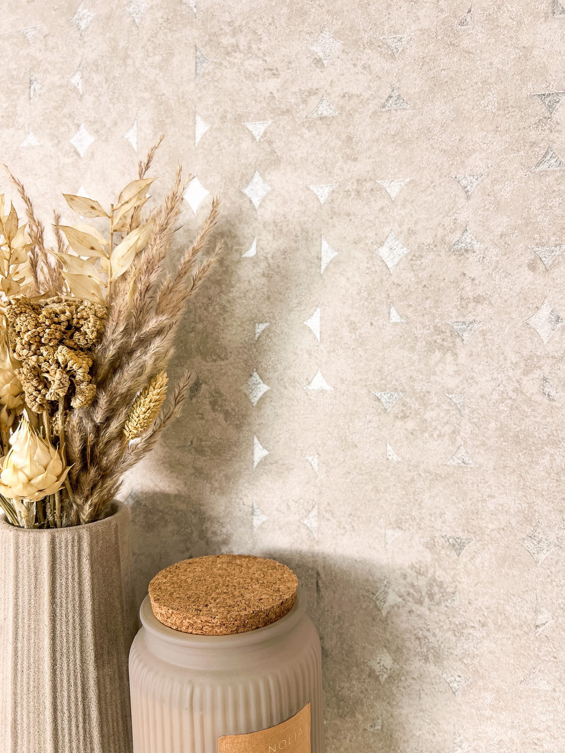 Oberflächenstruktur | Beige Tapete Modern Rauten - Mustertapete Grafisch Creme Silber Grafisch Retro Used-Look Struktur für Schlafzimmer Wohnzimmer Küche |