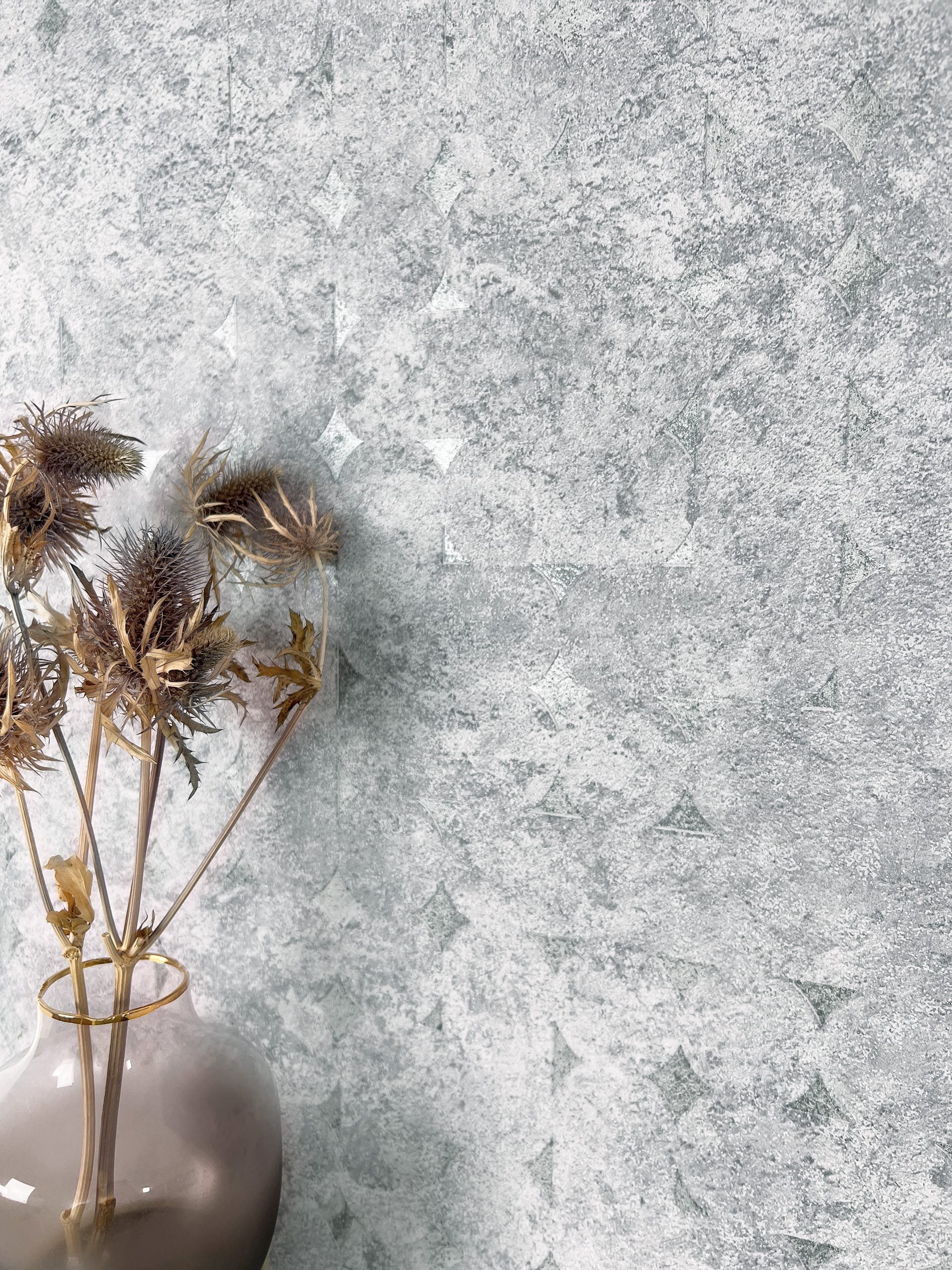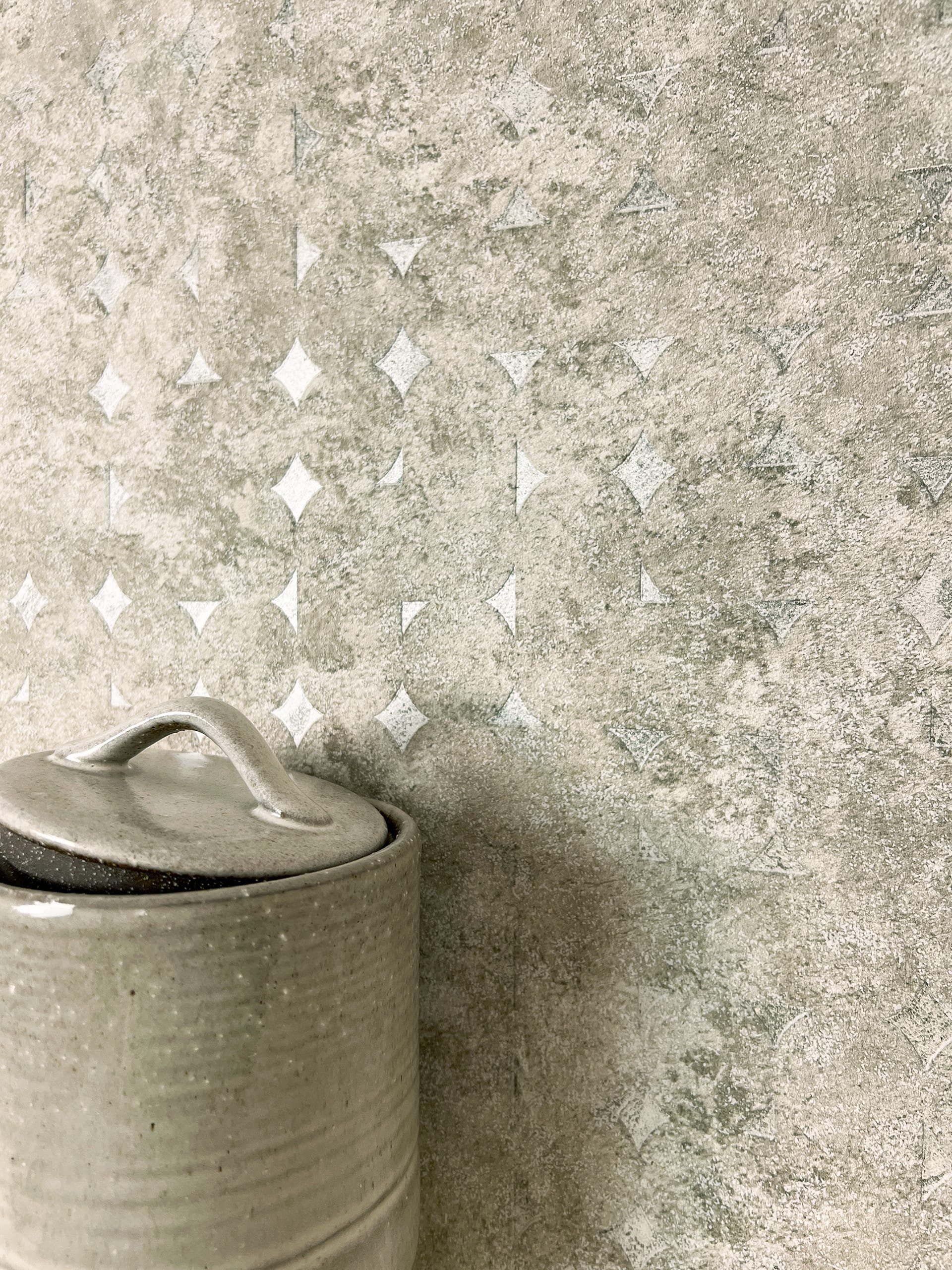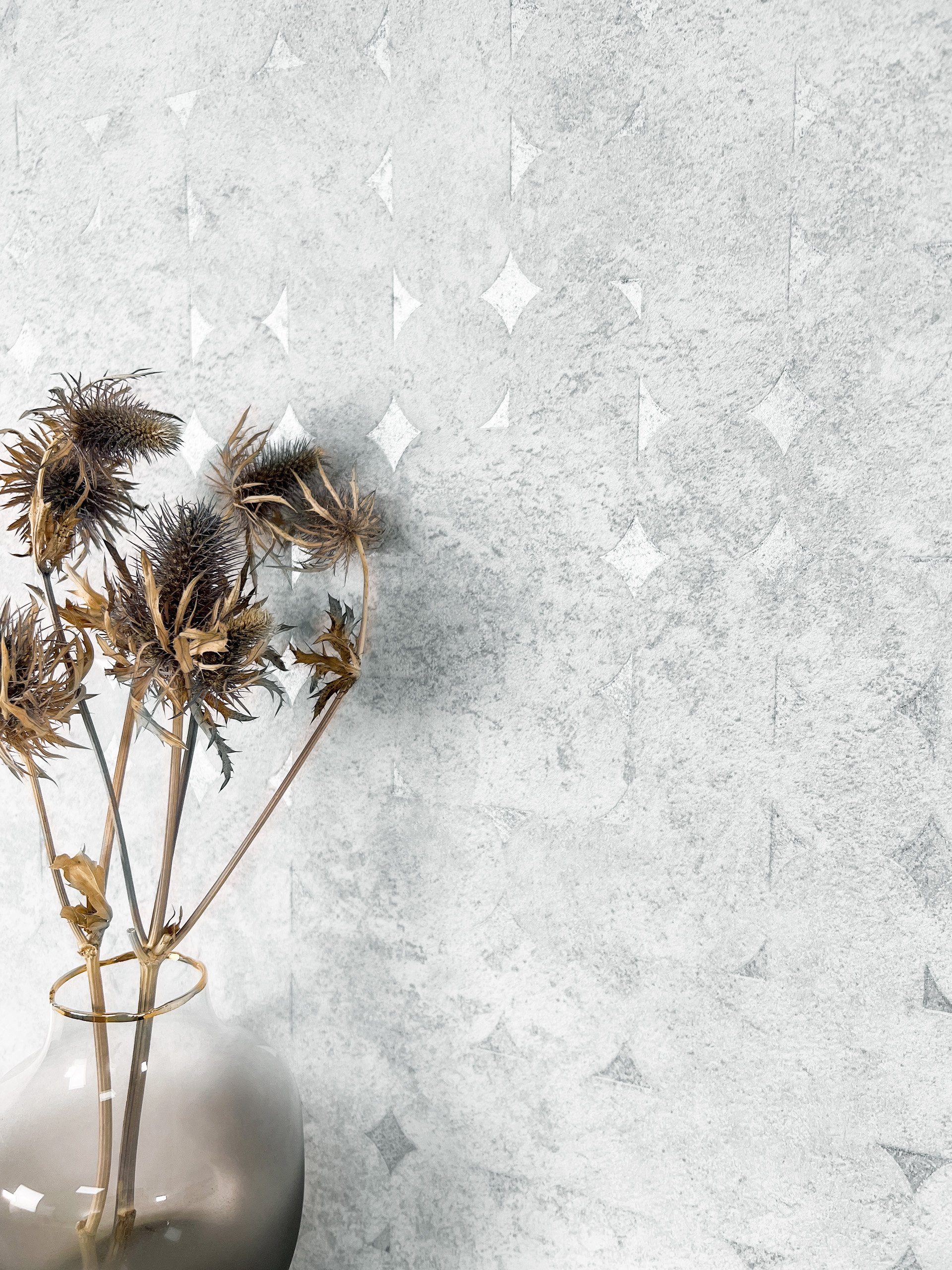 Oberflächenstruktur | Beige Tapete Modern Rauten - Mustertapete Grafisch Creme Silber Grafisch Retro Used-Look Struktur für Schlafzimmer Wohnzimmer Küche |