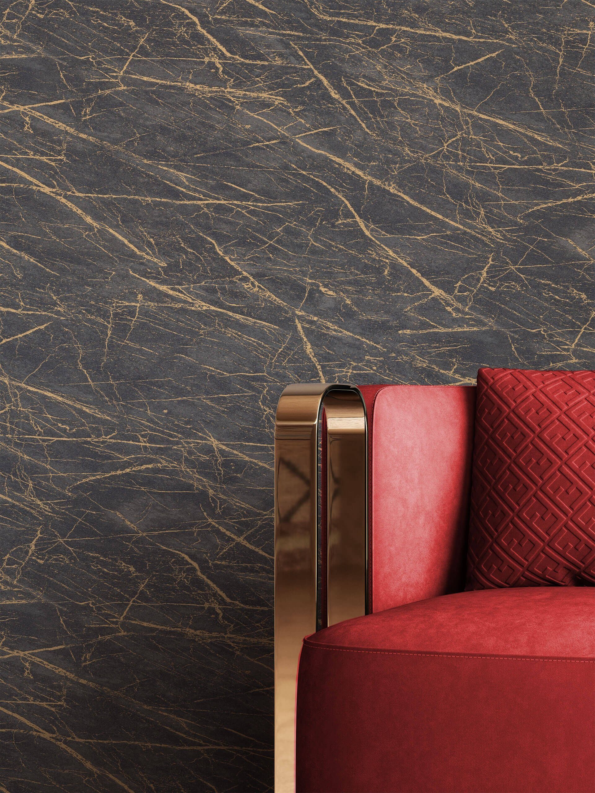 Oberflächenstruktur | Schwarz Tapete Glamour Marmor - Marmortapete Mustertapete Anthrazit Gold Modern Muster für Wohnzimmer Schlafzimmer Küche |
