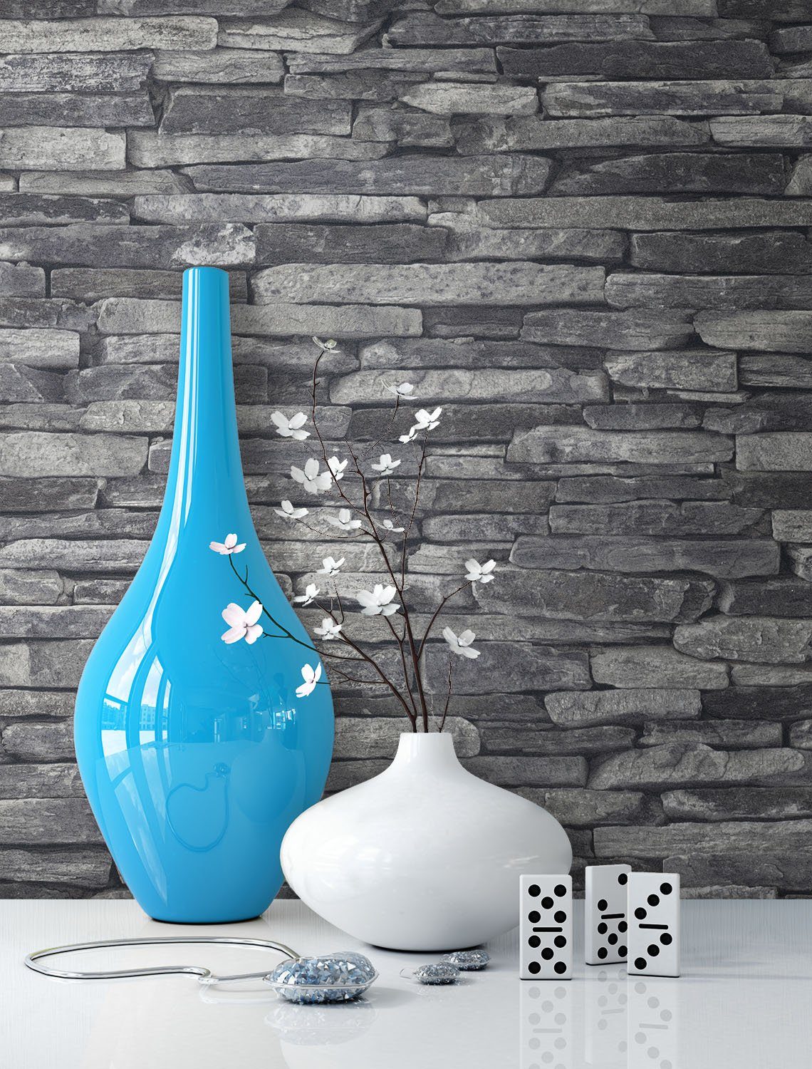 Oberflächenstruktur | Steintapete Anthrazit Ziegelstein Backstein Mauerwerk Klinker Tapete Steinoptik Wohnzimmer Schlafzimmer Flur |