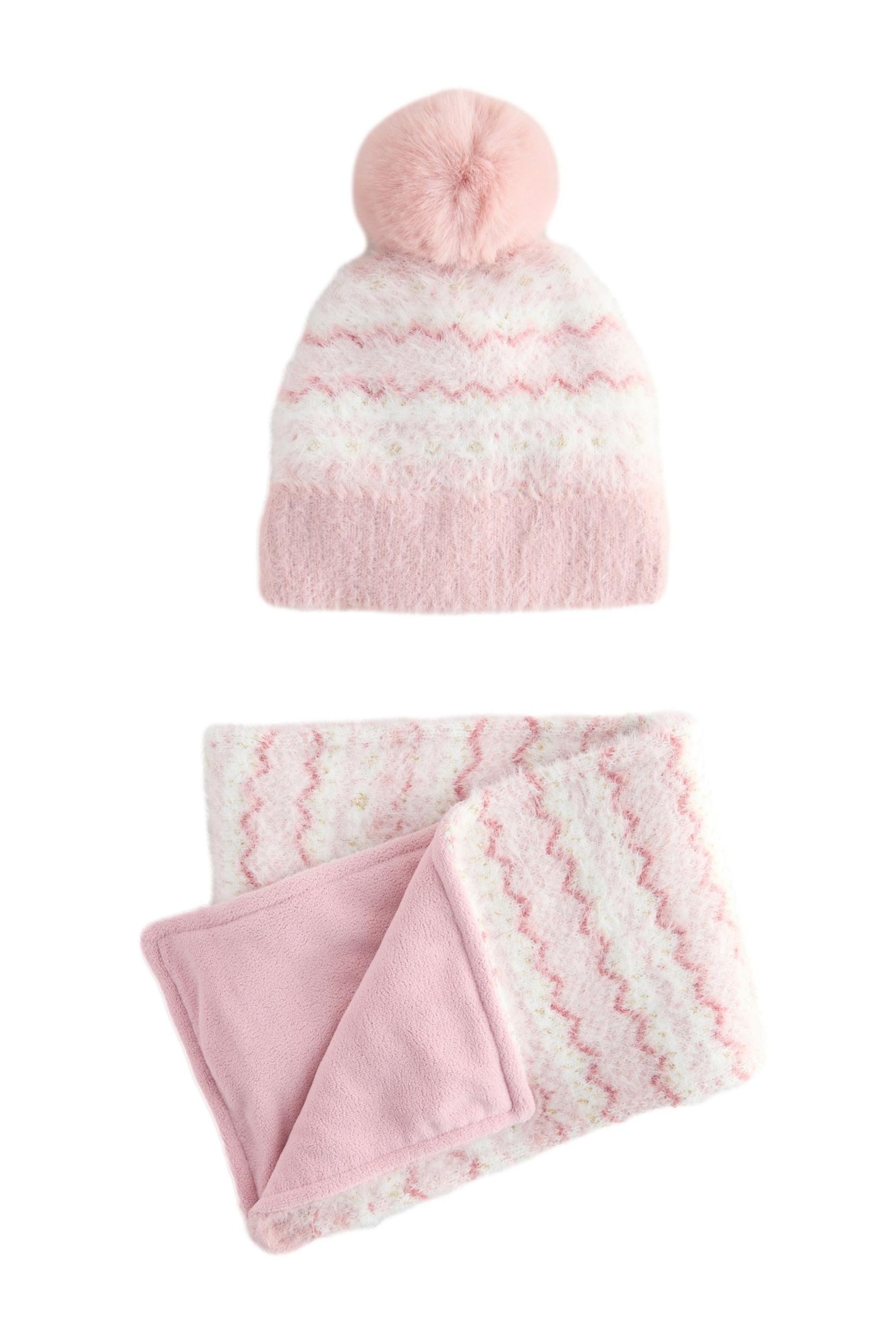 Materialzusammensetzung | Hut Oberstoff: 82% Polyester, 18% Polyamid. Futter: 96% Baumwolle, 4% Elasthan. Kunstfell: 100% Polyester/ Schal Oberstoff: 82% Polyester, 18% Polyamid |
