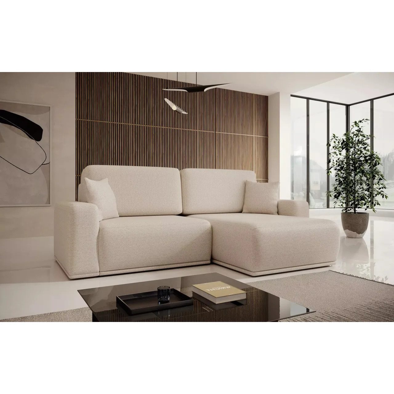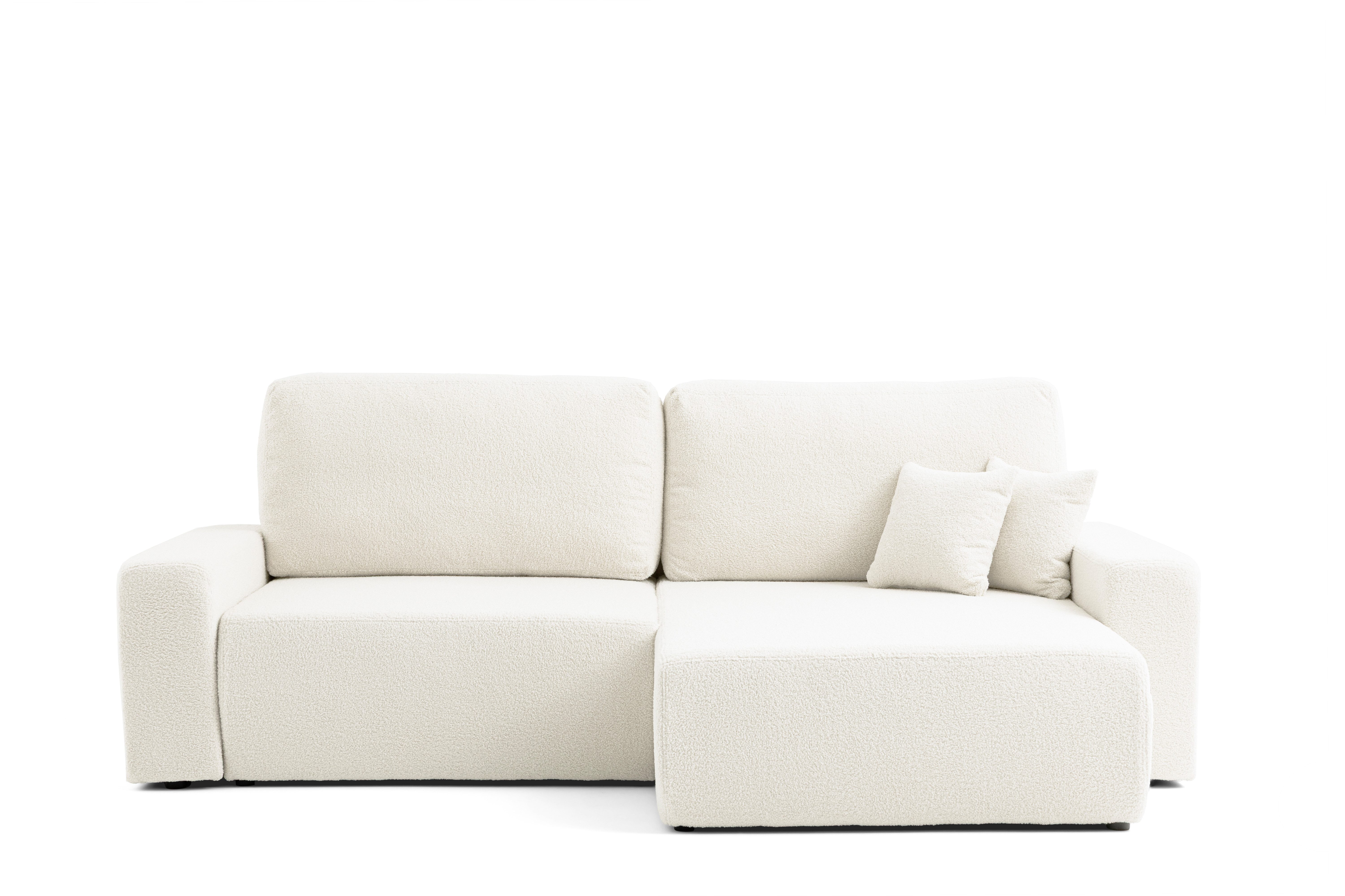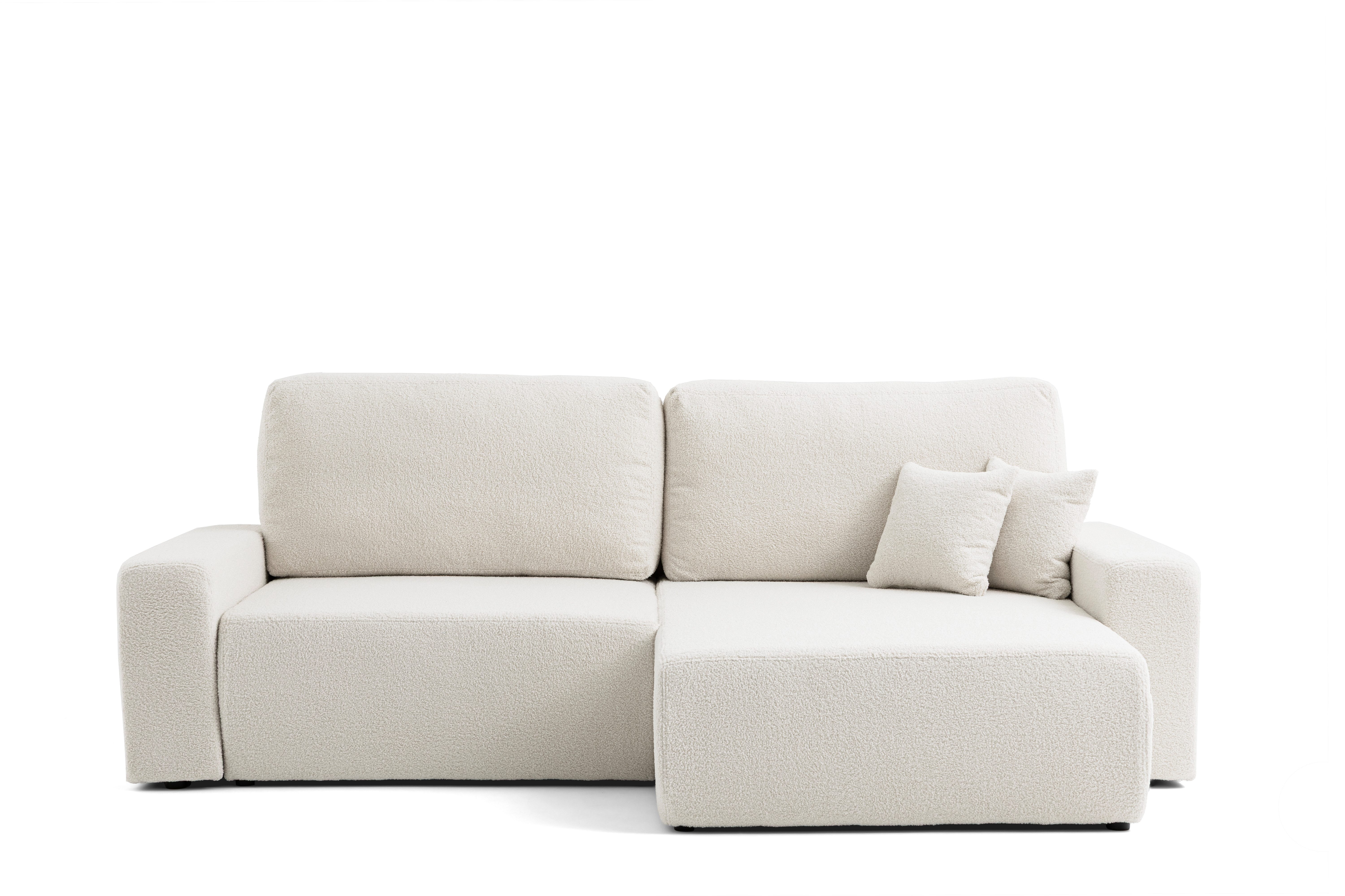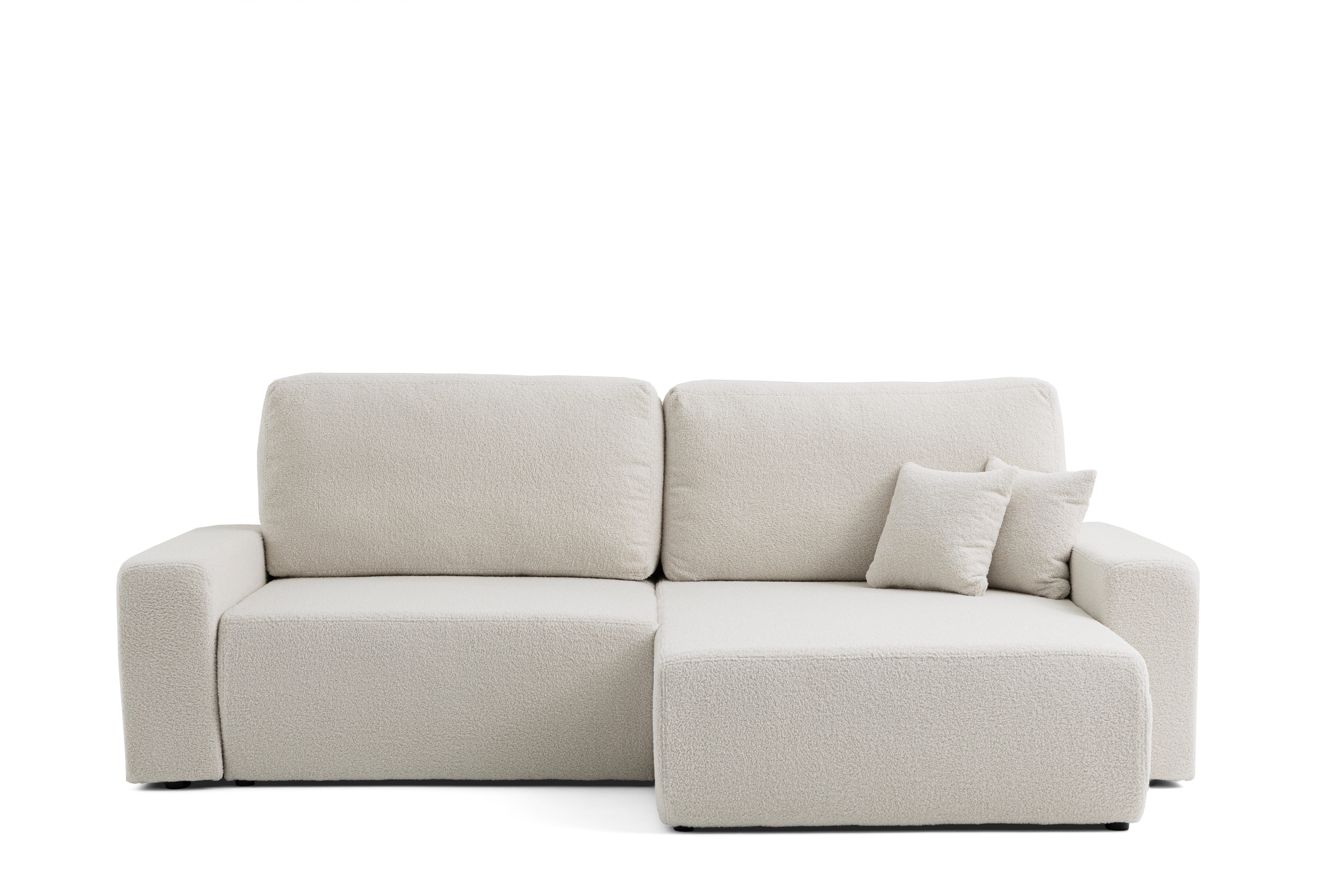 Das Ecksofa Joy ist die perfekte Kombination aus modernem Design, Komfort und Funktionalität. Durch seine minimalistische und zeitlose Form passt es sowohl in elegante als auch in gemütlichere Innenräume. Dank der Schlaffunktion und der großen ausgeklappten Fläche - bis zu 205 x 140 cm - fungiert das Modell Joy auch erfolgreich als Bett und ist somit eine perfekte Lösung für den täglichen Gebrauch. Die breiten, weichen Rückenkissen und die entsprechend geformte Sitzfläche sorgen tagsüber für einen hohen Liegekomfort und verwandeln das Ecksofa nachts in einen bequemen, vollwertigen Schlafplatz. Es ist eine praktische und stilvolle Wahl für alle, die ein vielseitiges Wohnzimmermöbel suchen, das Ästhetik mit Funktion verbindet.