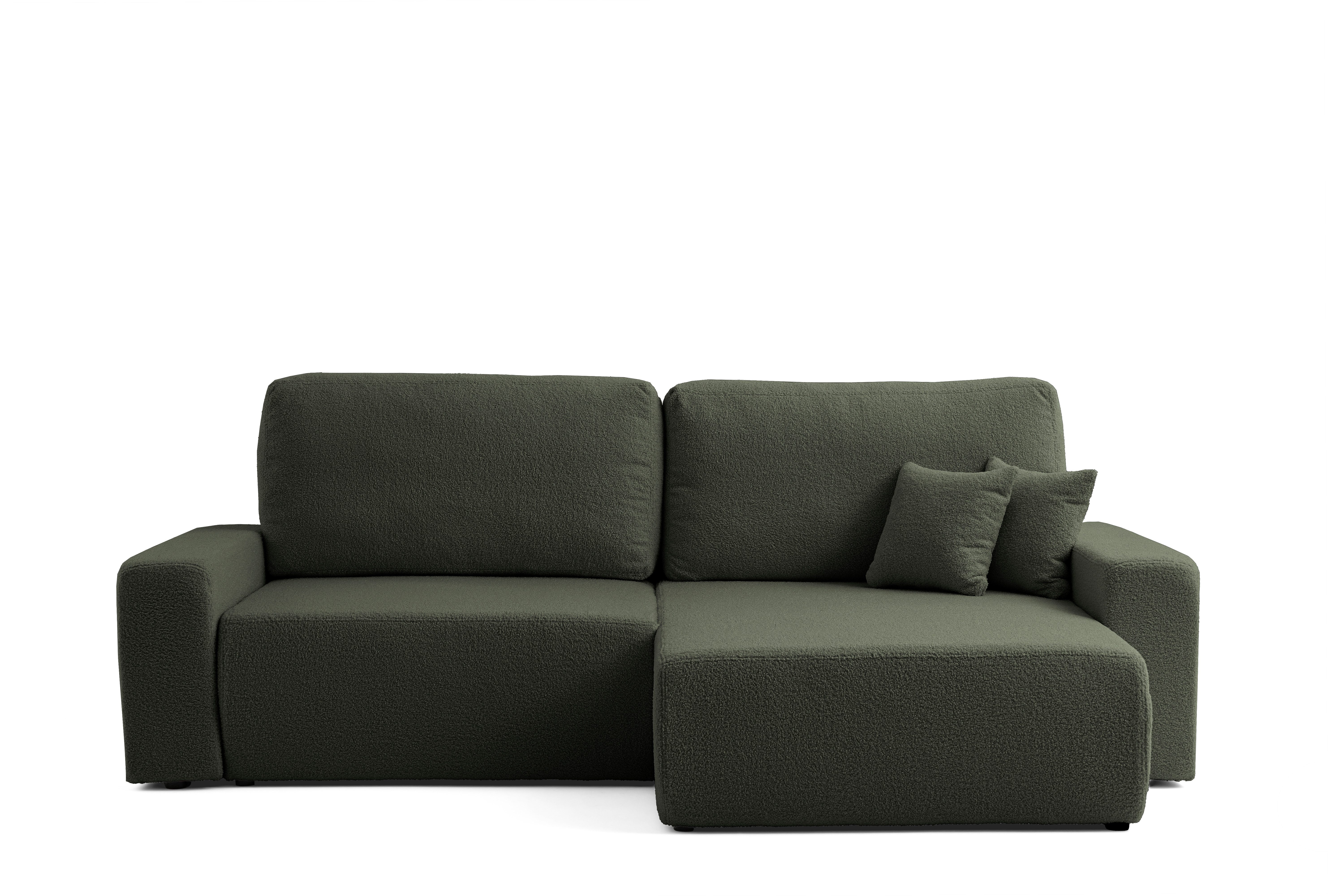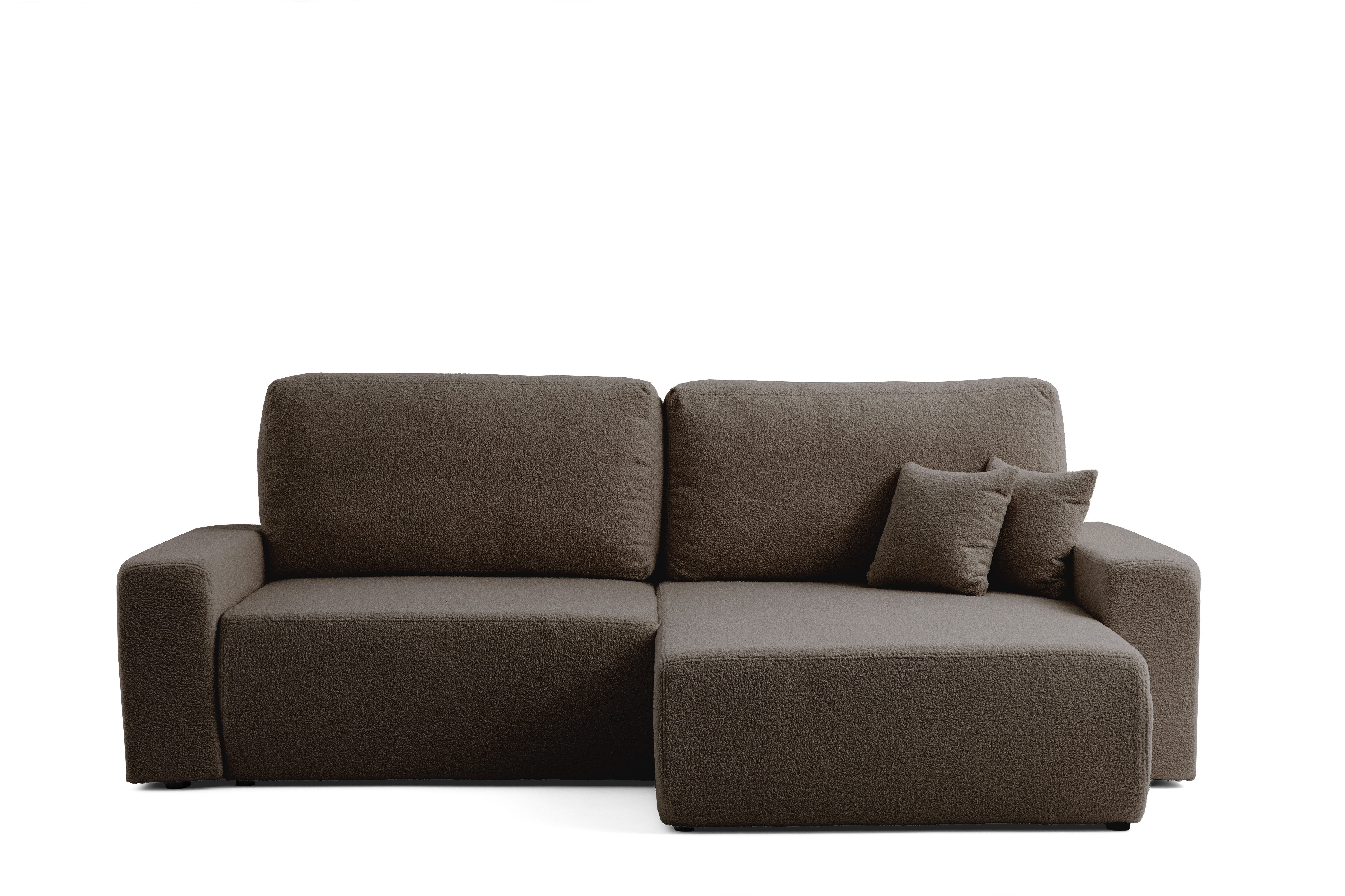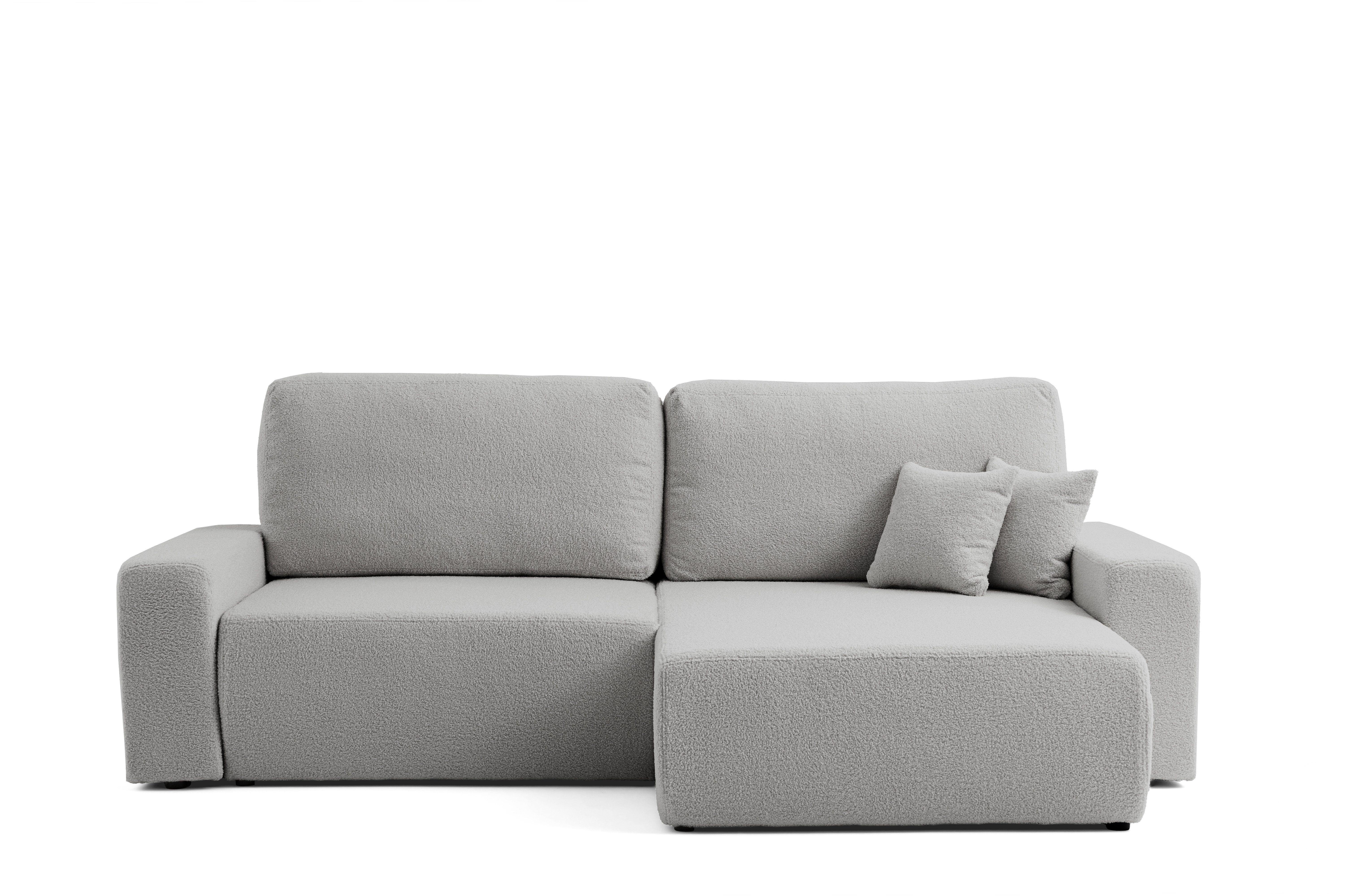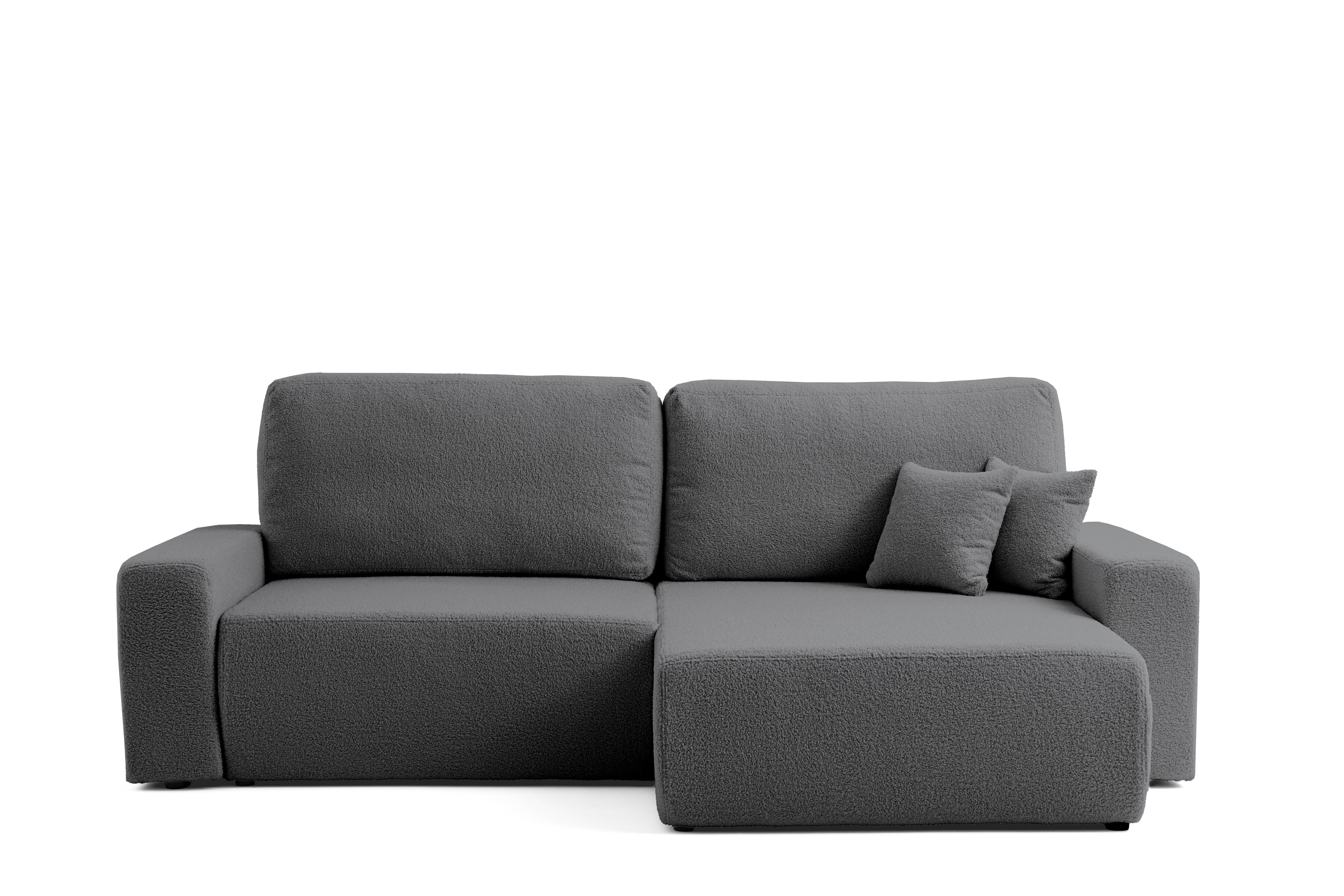 Das Ecksofa Joy wurde aus robusten und langlebigen Materialien hergestellt. Die Sitze bestehen aus einer Kombination aus T30-Schaum und gewellter Feder, die eine optimale Elastizität, Verformungsbeständigkeit und einen hohen Nutzungskomfort gewährleistet - sowohl beim Sitzen als auch beim Schlafen. Die Konstruktion auf der Grundlage eines Rahmens aus Holz und Möbelplatten garantiert die Stabilität und Langlebigkeit der Möbel. Dank seiner durchdachten Konstruktion lässt sich das Ecksofa leicht in ein Bett verwandeln - mit wenigen Handgriffen entsteht eine große und ebene Liegefläche, ideal für den täglichen Gebrauch. Der feine Bezugsstoff und die weichen Kissen unterstreichen den gemütlichen Charakter des Möbels.