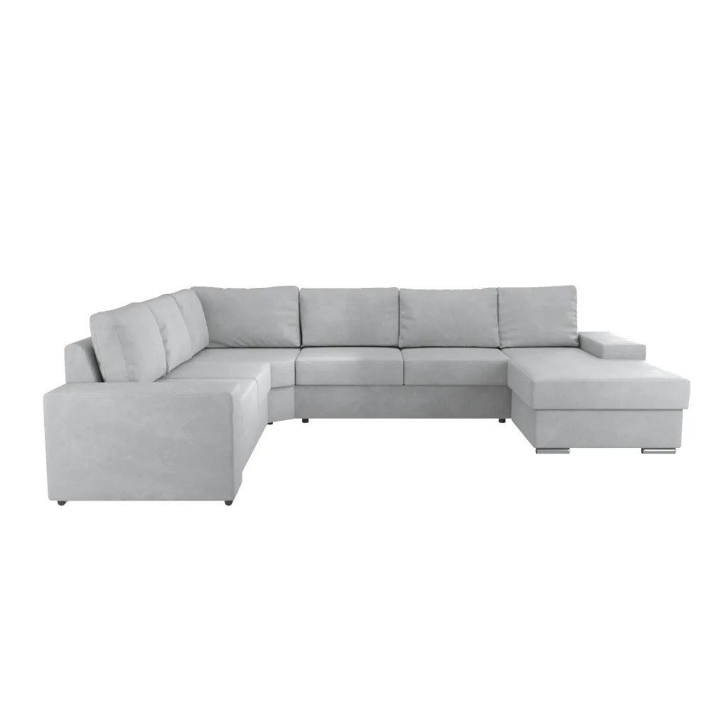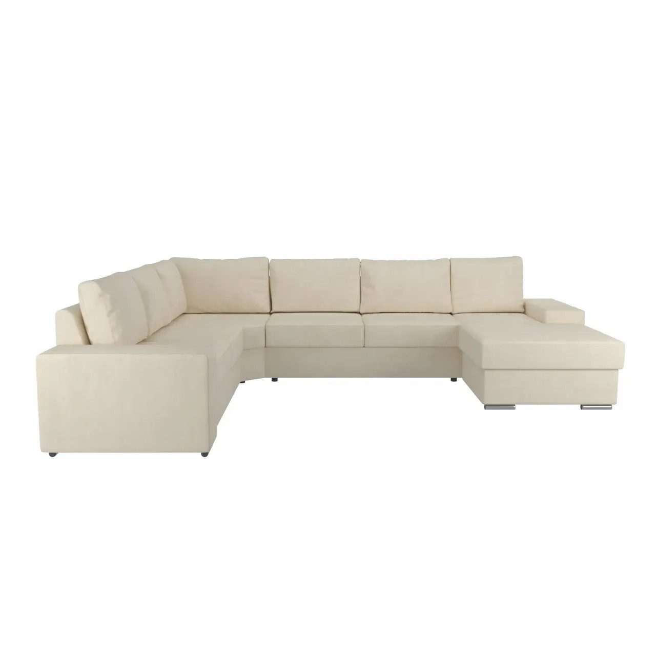 Das moderne und geräumige Ecksofa in U-Form ist die ideale Wahl für große Wohnzimmer, die auf Komfort und minimalistische Eleganz setzen. Dieses Modell zeichnet sich durch seine losen Rückenkissen aus, die nicht nur einen hohen Komfort bieten, sondern dem Interieur auch eine gemütliche, wohnliche Note verleihen. Das Fehlen einer Schlaffunktion und eines Bettzeugfachs bedeutet, dass die gesamte Struktur auf maximalen Sitzkomfort und tägliche Entspannung optimiert wurde.