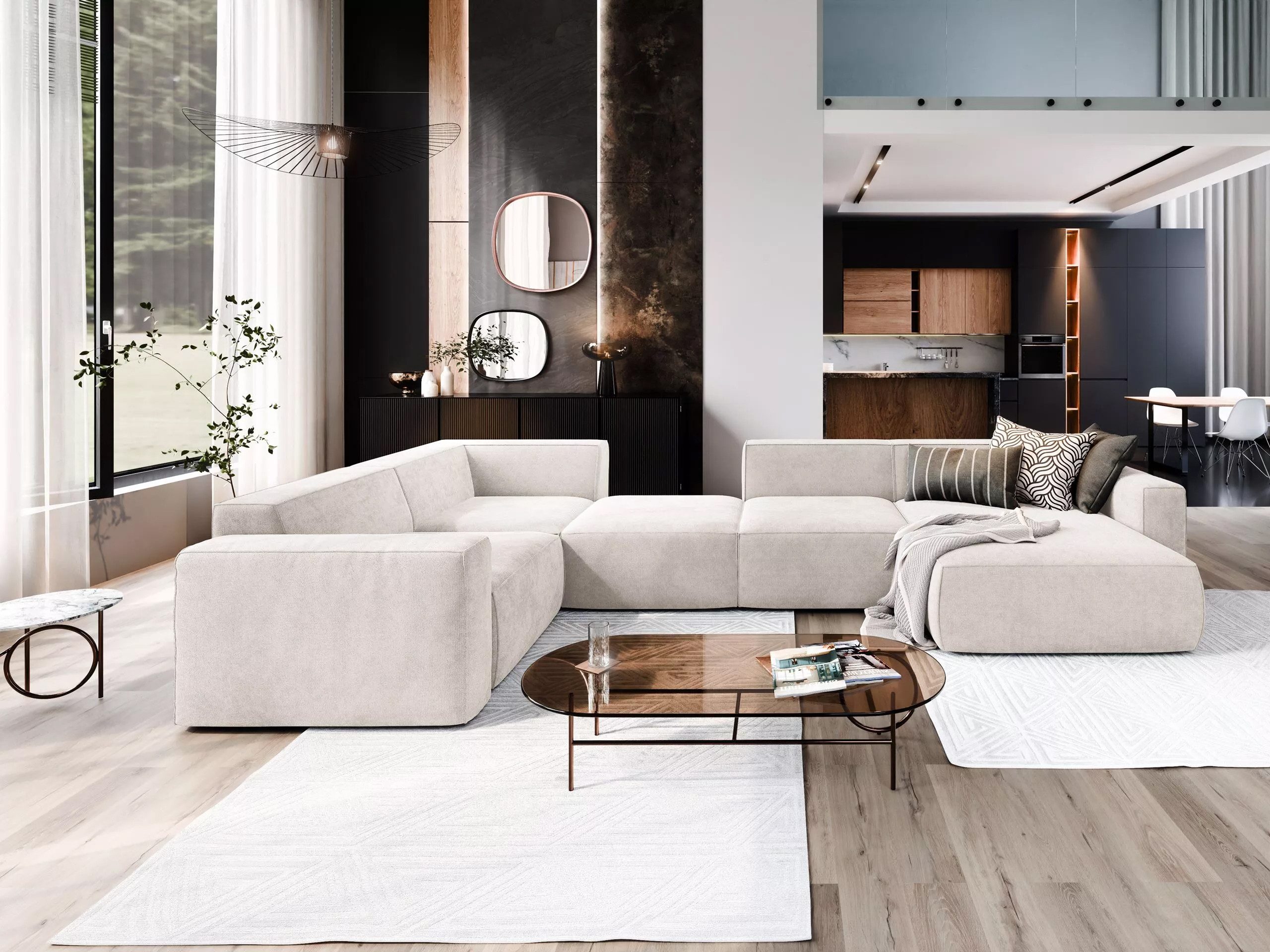 Das modulare Ecksofa Dream verbindet elegante Schlichtheit mit höchstem Komfort. Dank seiner zeitlosen Form und seiner universellen Gestaltung passt es sowohl in geräumige Wohnzimmer als auch in moderne, offene Wohnbereiche. Dank seines modularen Aufbaus kann das Ecksofa frei konfiguriert werden - so lässt sich seine Form leicht an die Einrichtung und die eigenen Bedürfnisse anpassen. Dieses Modell wurde mit Blick auf die alltägliche Entspannung entworfen - es hat keine Schlaffunktion, so dass wir uns ganz auf Ergonomie, Verarbeitung und Sitzkomfort konzentrieren konnten.
