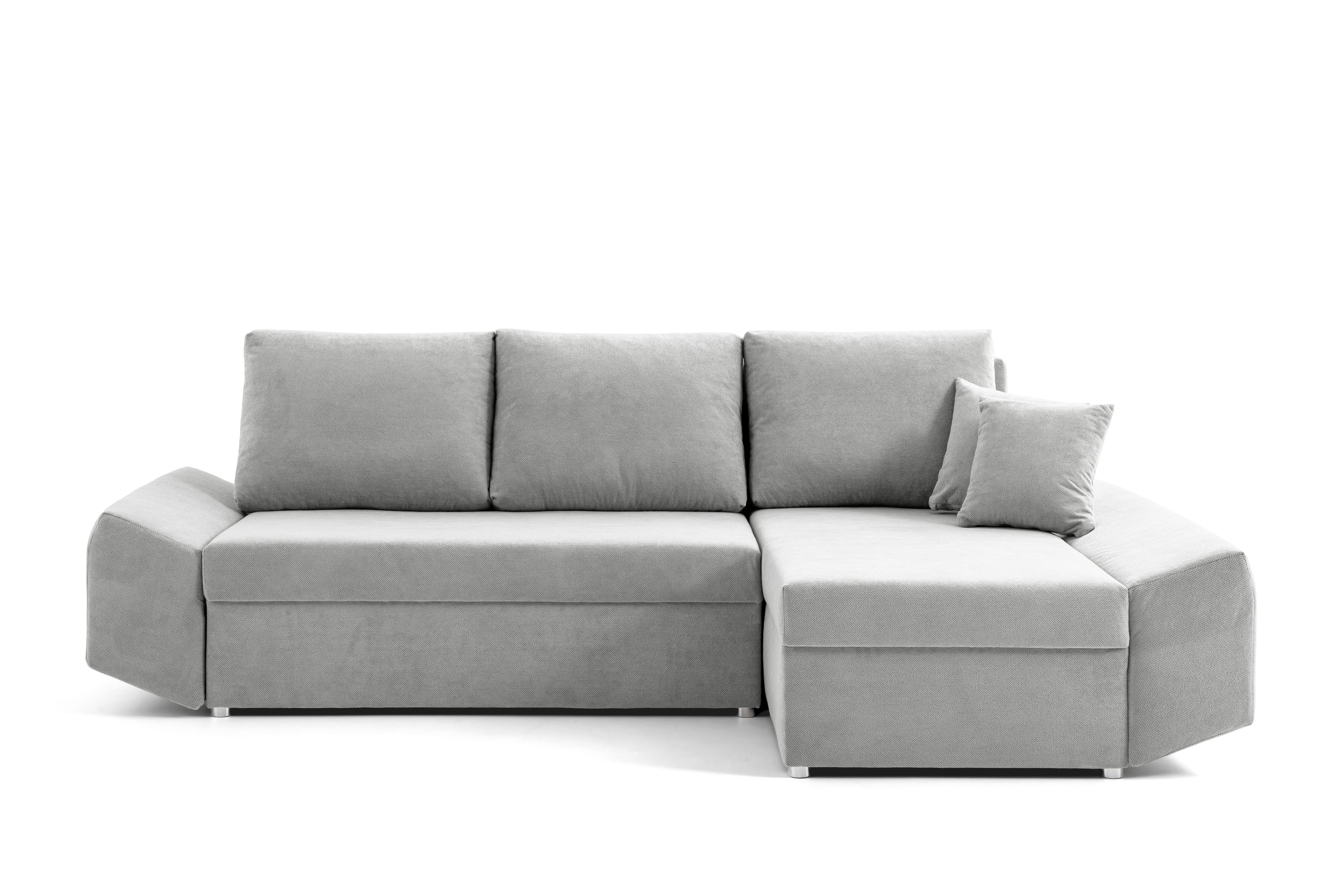 Die Eckcouch wurde mit Liebe zum Detail gefertigt und vereint Ästhetik und Komfort. Die solide Konstruktion sorgt für Langlebigkeit, während die weiche Polsterung und der angenehme Stoff dafür sorgen, dass sich das Möbelstück perfekt für den täglichen Gebrauch eignet. Sorgfältig ausgewählte Materialien und eine präzise Verarbeitung verleihen ihm einen eleganten Charakter, sodass sich das Ecksofa sowohl in moderne als auch in eher klassische Innenräume hervorragend einfügt.