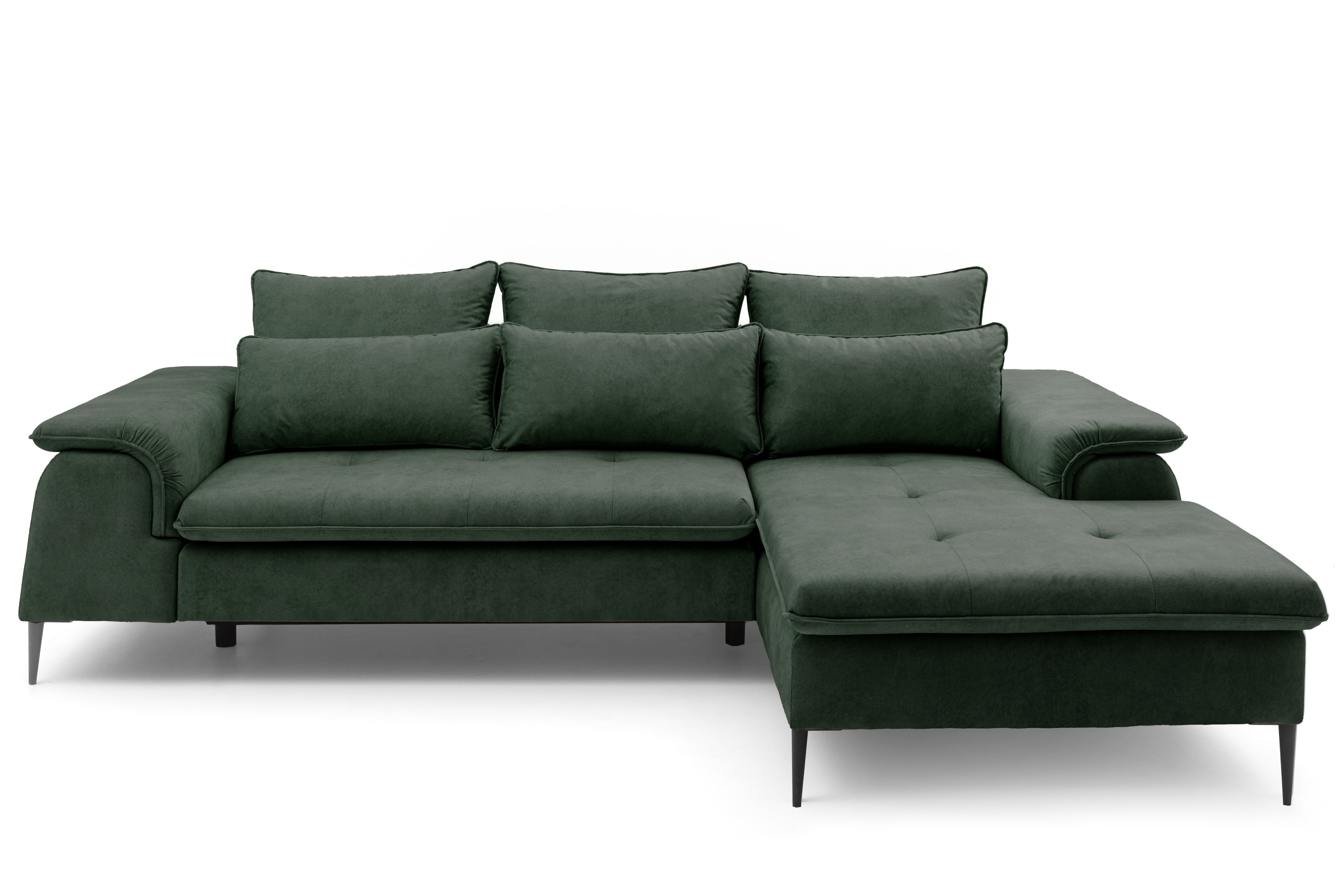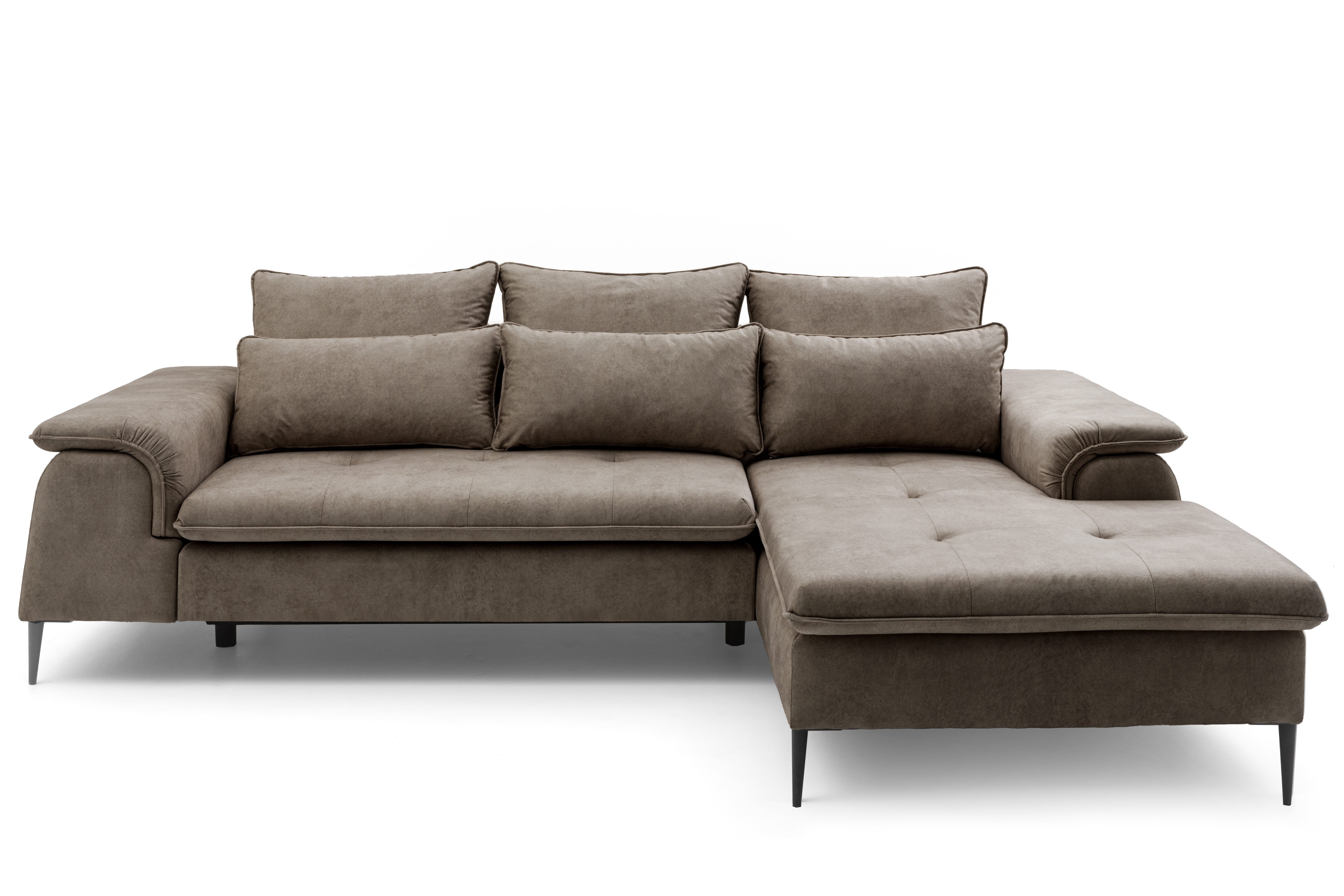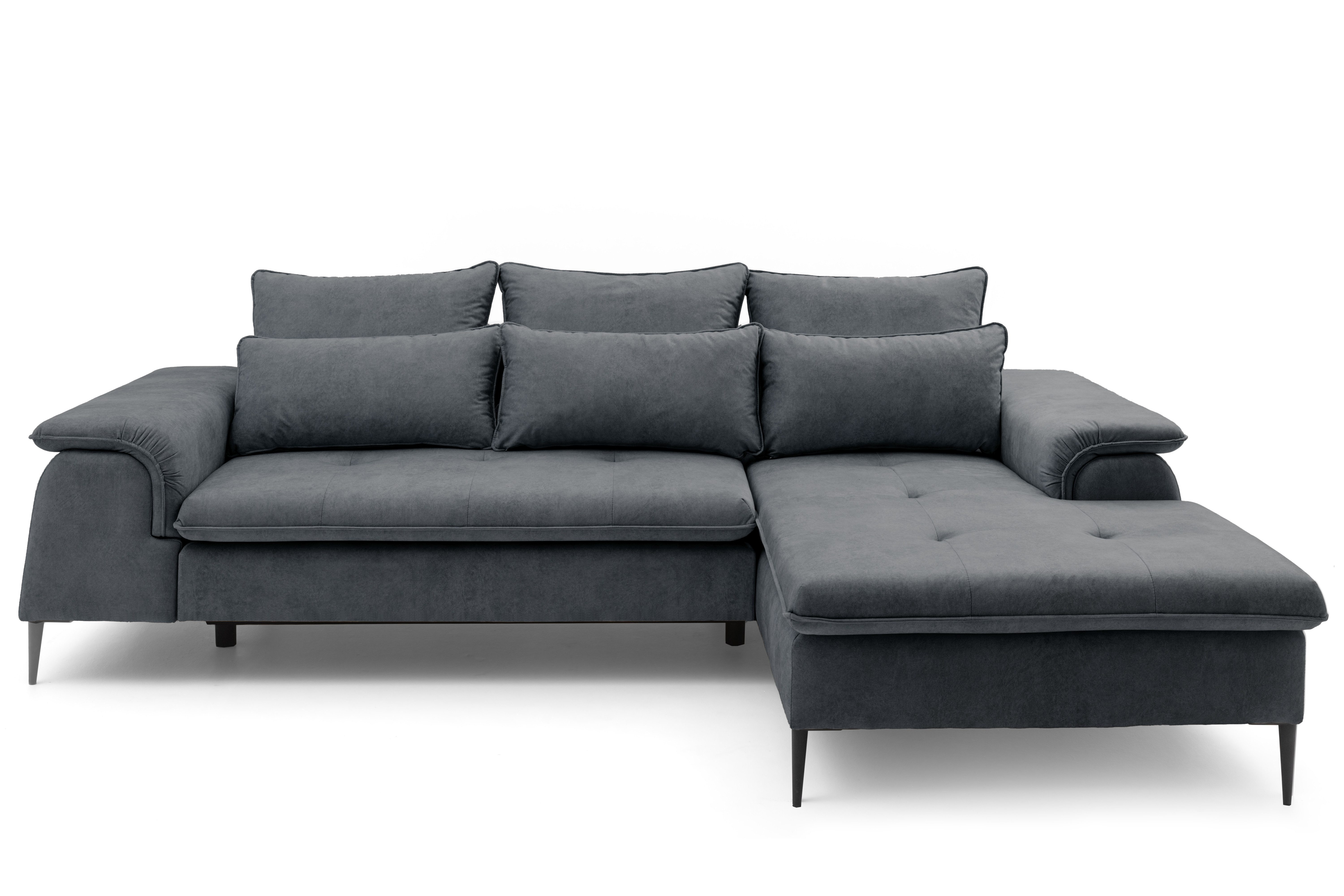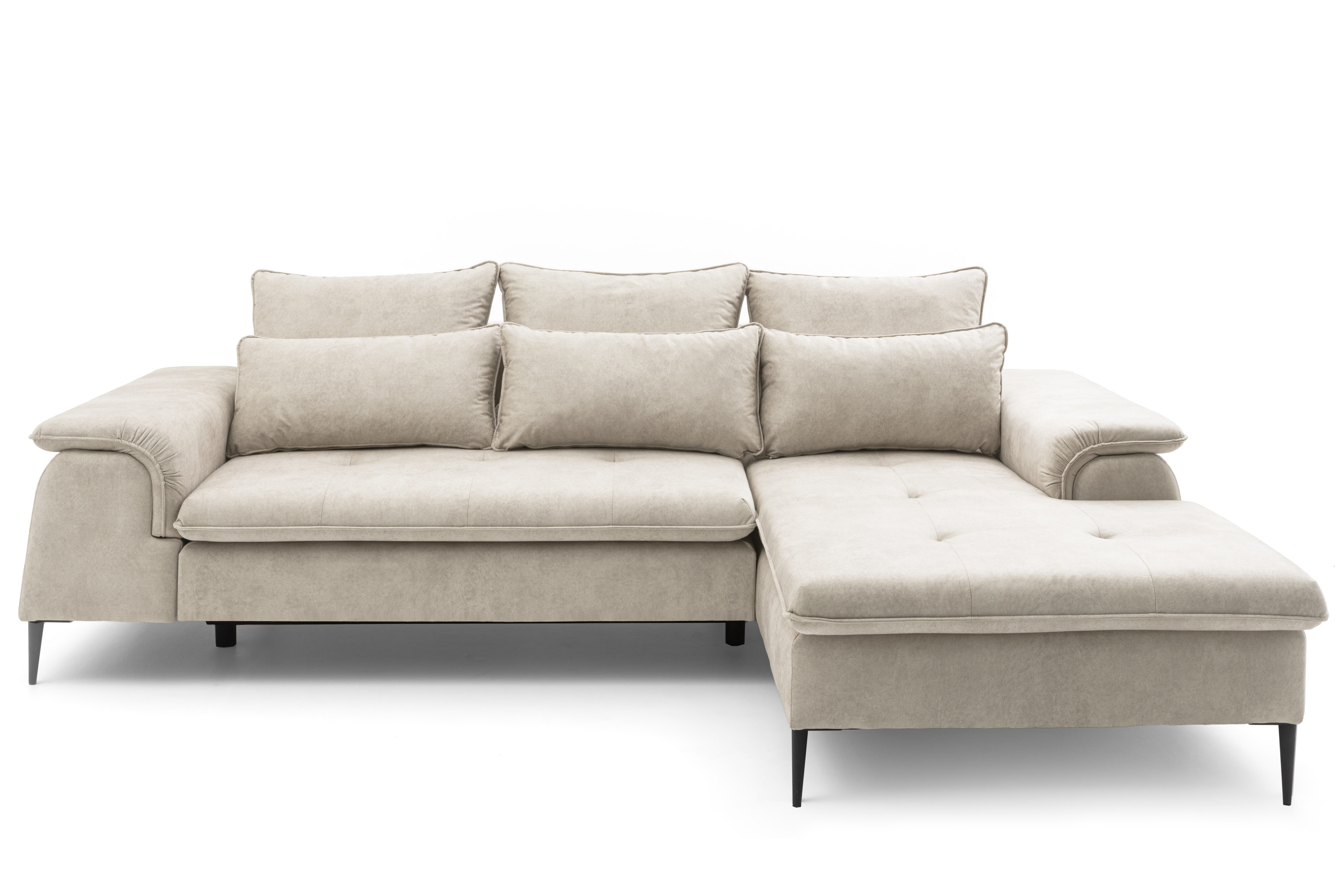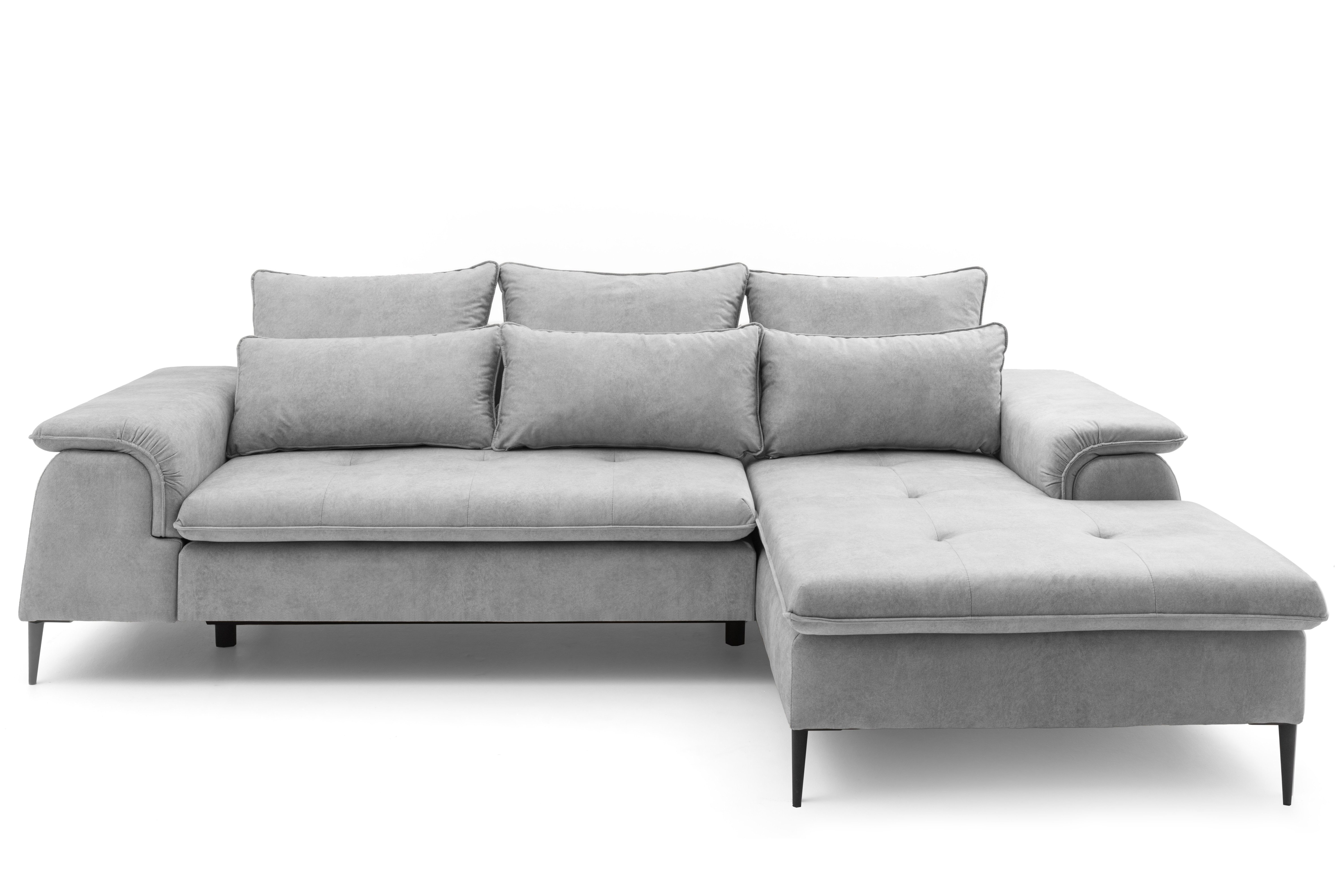 Das Schlafsofa wurde im Hinblick auf außergewöhnlichen Komfort und Langlebigkeit entwickelt. Seine Konstruktion basiert auf hochwertigem HR-Schaum (High Resilience), der eine optimale Unterstützung und Flexibilität bietet, sich der Körperform anpasst und seine Elastizität über lange Zeit beibehält. Darüber hinaus verbessern gewellte Federn im Sitz den Komfort, indem sie das Körpergewicht gleichmäßig verteilen und die Liegequalität verbessern. Das Entfaltungssystem, das auf der automatischen Maschine R1 basiert, garantiert eine einfache und bequeme Verwandlung des Ecksofas in einen geräumigen Schlafbereich. Der Mechanismus ist außergewöhnlich leichtgängig, leise und langlebig und garantiert Zuverlässigkeit über Jahre hinweg. Die Kombination aus modernen Materialien und innovativen Lösungen macht das Ecksofa bequem und funktionell und sorgt für eine perfekte Nutzung im Alltag