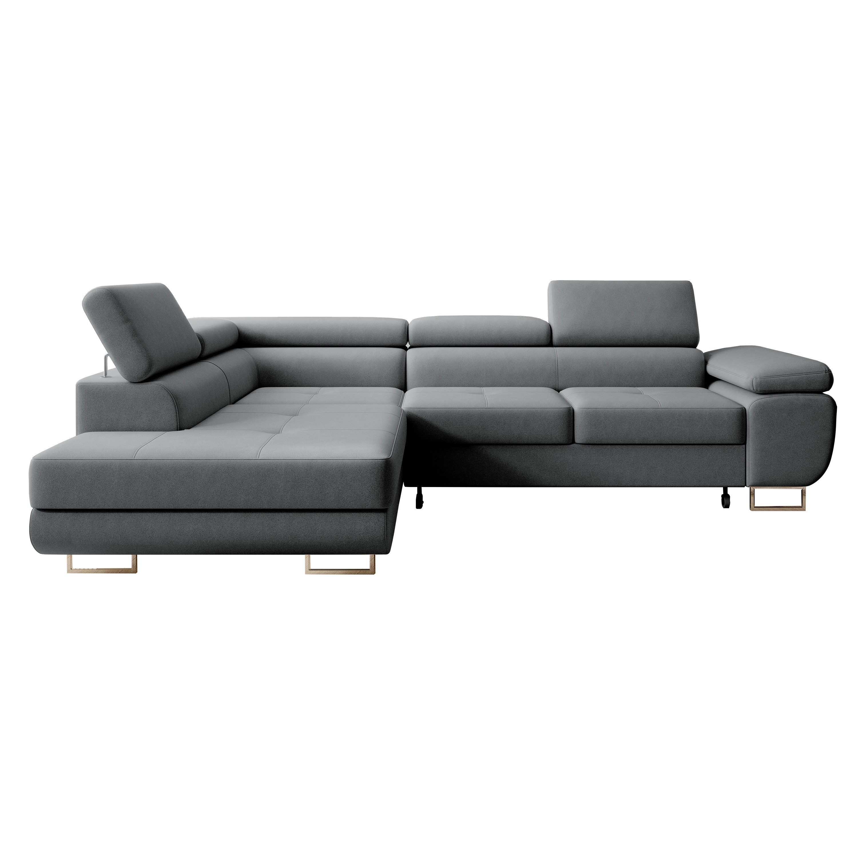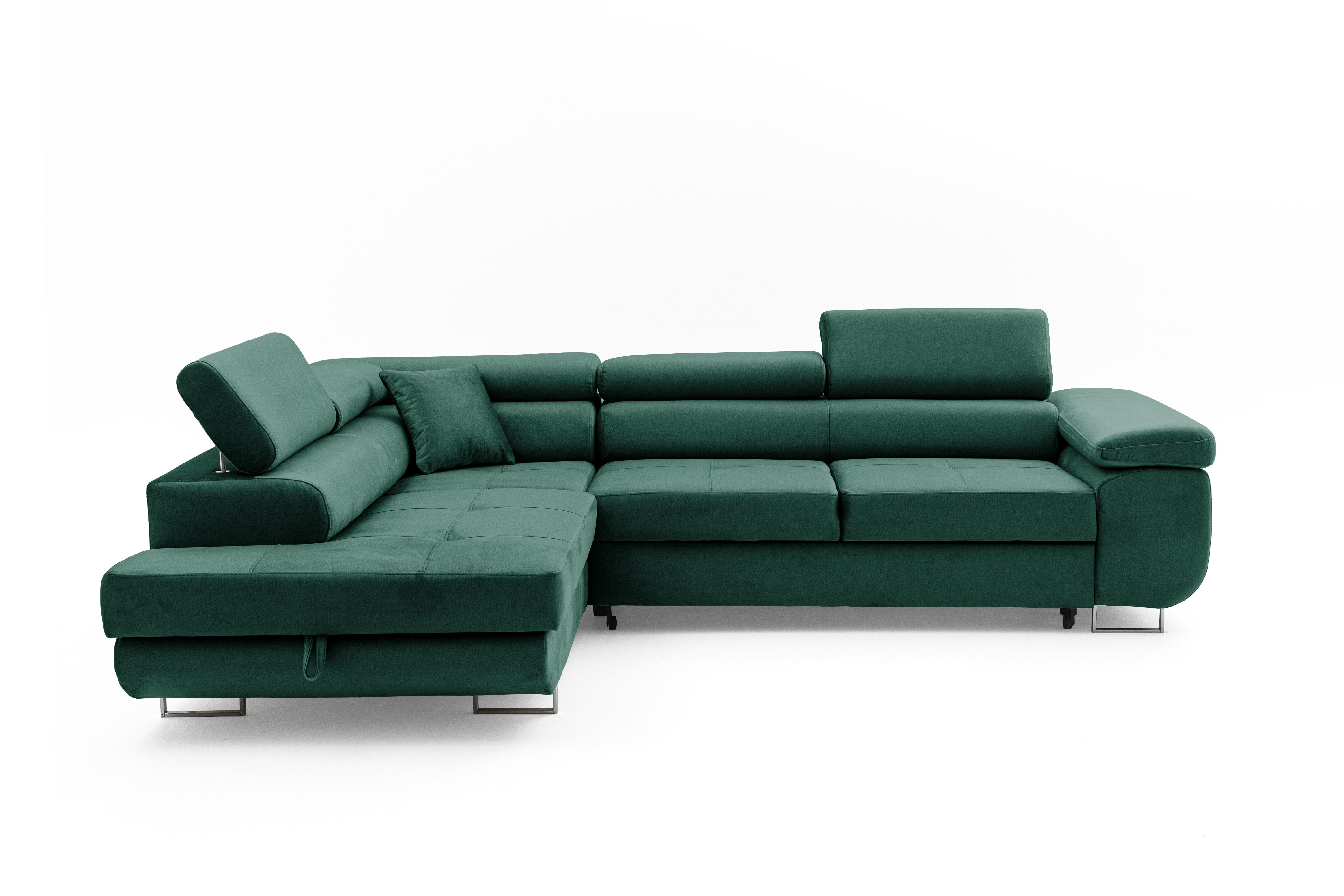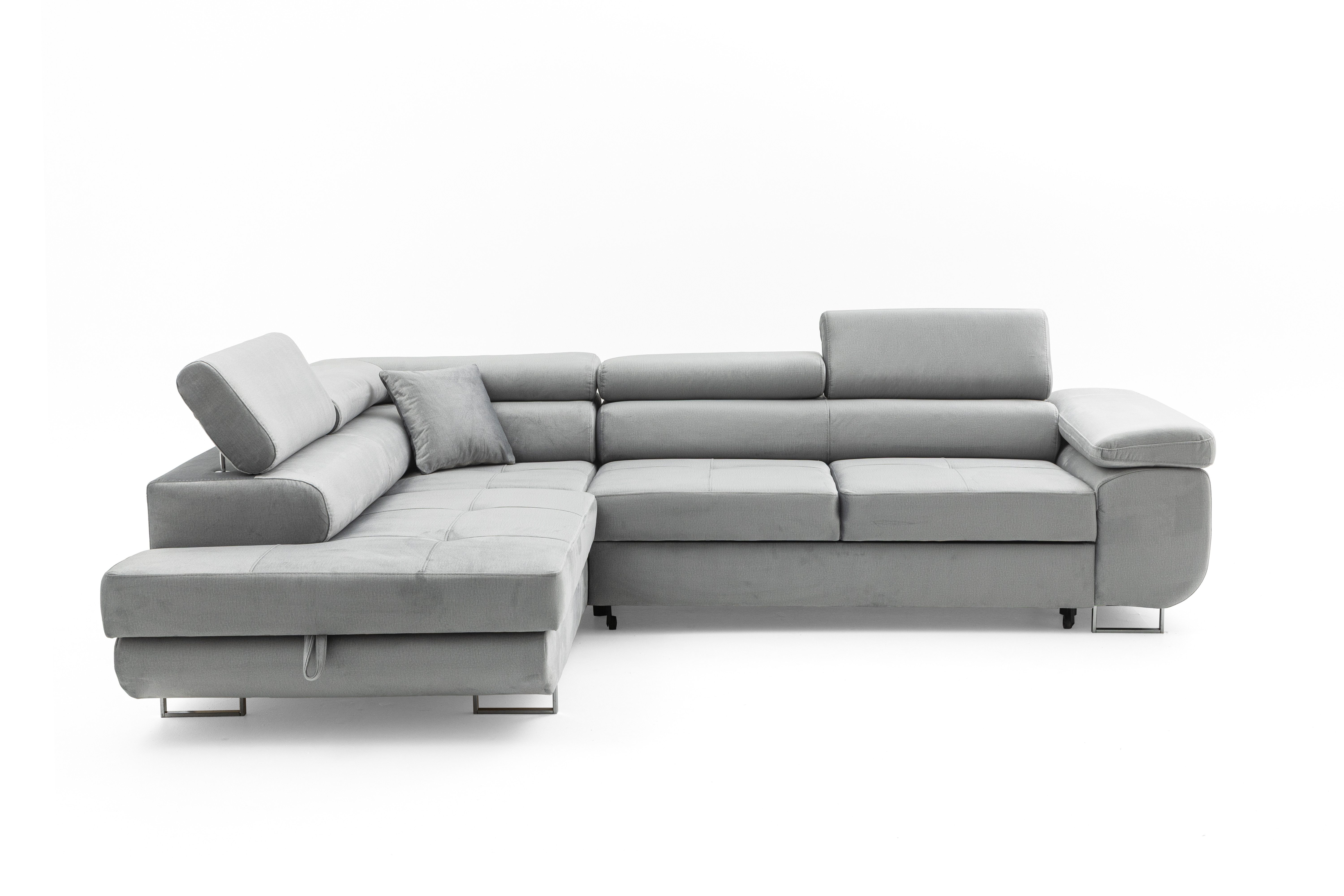 Ausstattung | Bettkasten Stauraum Verstellbare Kopfstutzen T30-Schaumstoff Made in Europa mit Wellenfeder mit Schlaffunktion Velour-Stoff Holzrahmen Chrome-Fusse |