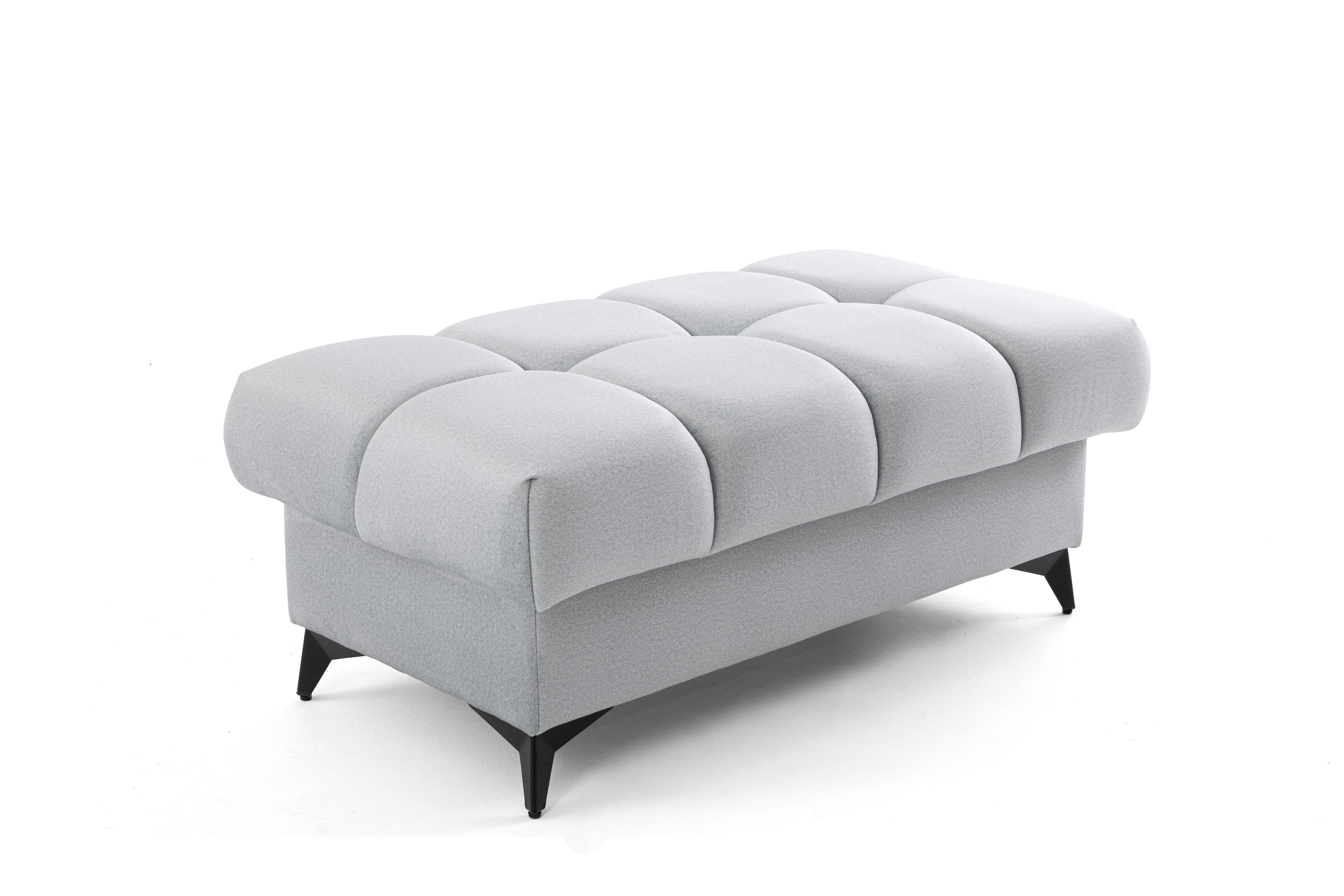 Der moderne gepolsterte Hocker ist eine stilvolle und funktionelle Ergänzung für jedes Wohnzimmer. Sein elegantes Steppdesign verleiht dem Interieur eine gemütliche Atmosphäre, während seine kompakte Form ihn sowohl als Sitzgelegenheit als auch als Fußhocker perfekt macht. Dieses Modell verfügt über einen praktischen Bettzeugbehälter, der zusätzlichen Stauraum bietet - ideal für Decken, Kissen oder andere kleine Gegenstände