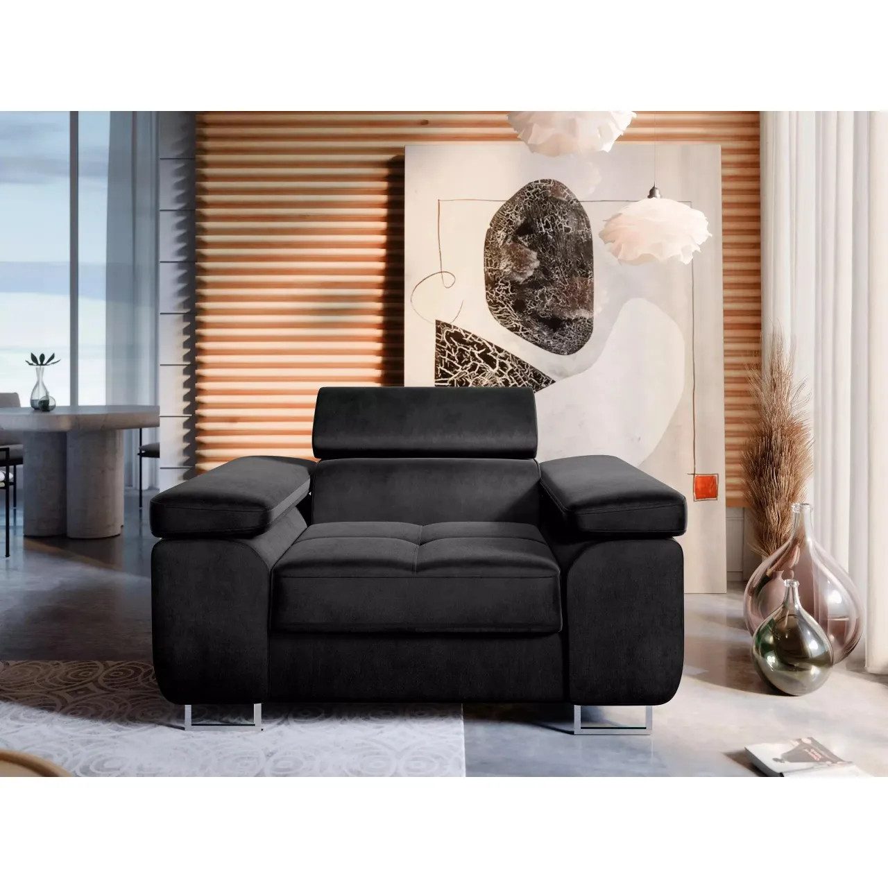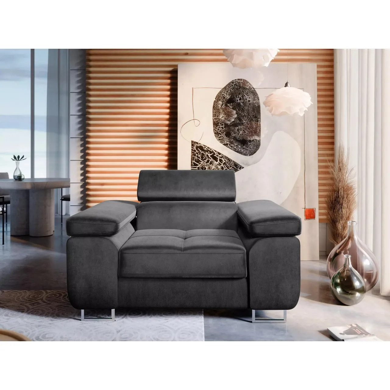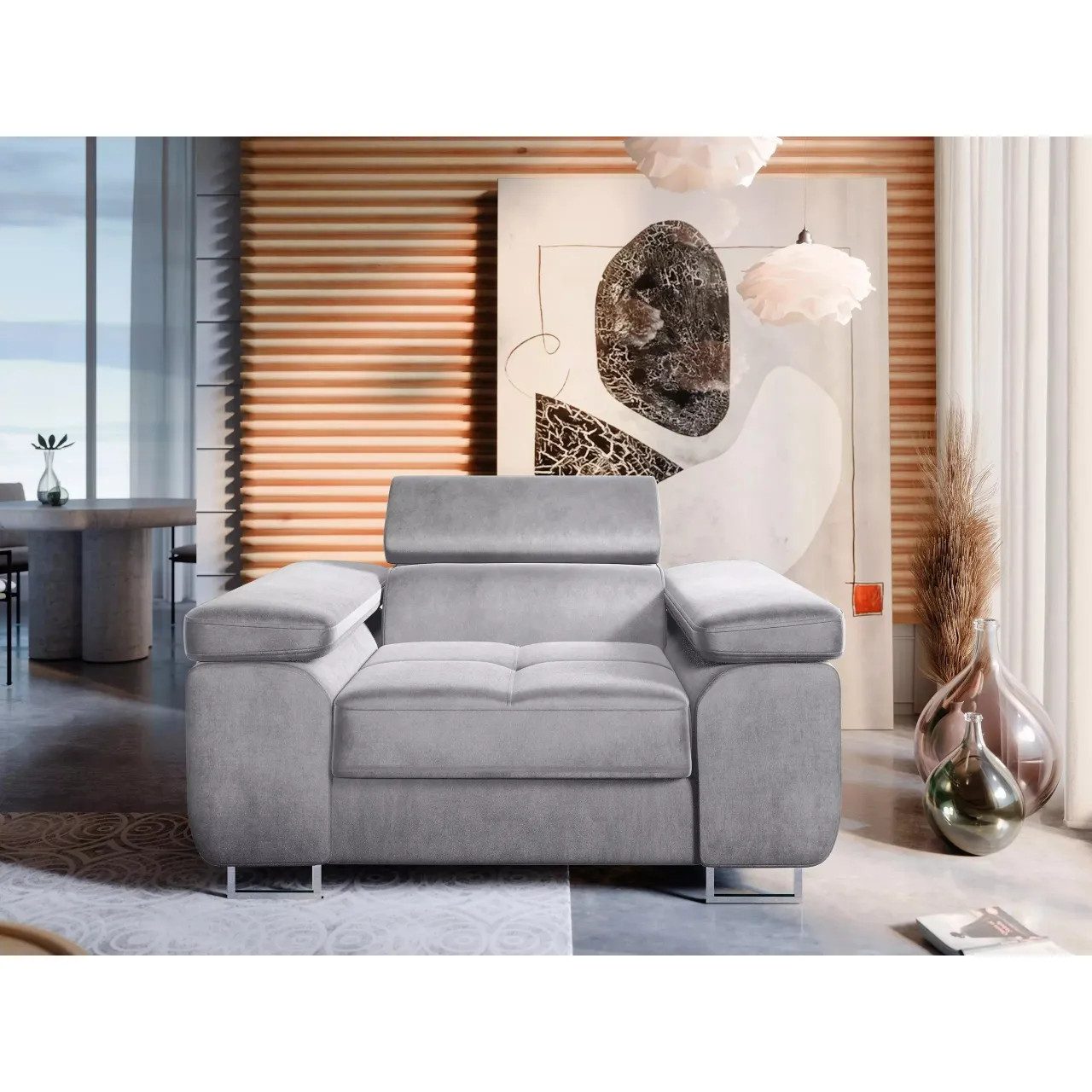Ein moderner und eleganter Sessel, der außergewöhnlichen Komfort mit zeitlosem Design verbindet. Sein stabiler Korpus, die breiten Armlehnen und die verstellbare Kopfstütze bieten die perfekten Voraussetzungen für Entspannung - sei es bei einer Nachmittagsruhe oder einem abendlichen Kinobesuch. Der Sessel passt perfekt in den Raum eines Wohnzimmers, Arbeitszimmers oder einer Lounge und verleiht der Einrichtung Charakter und Klasse..