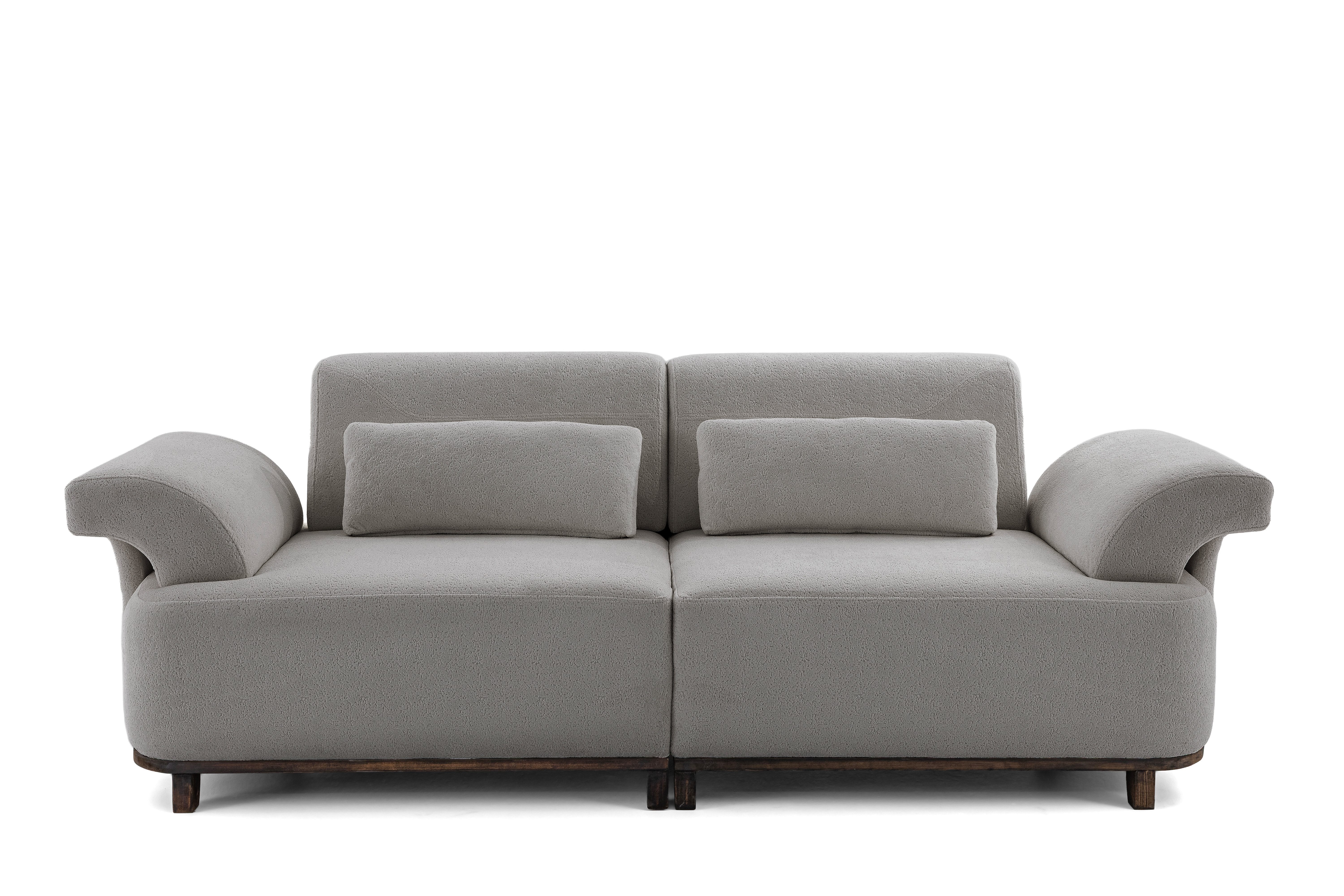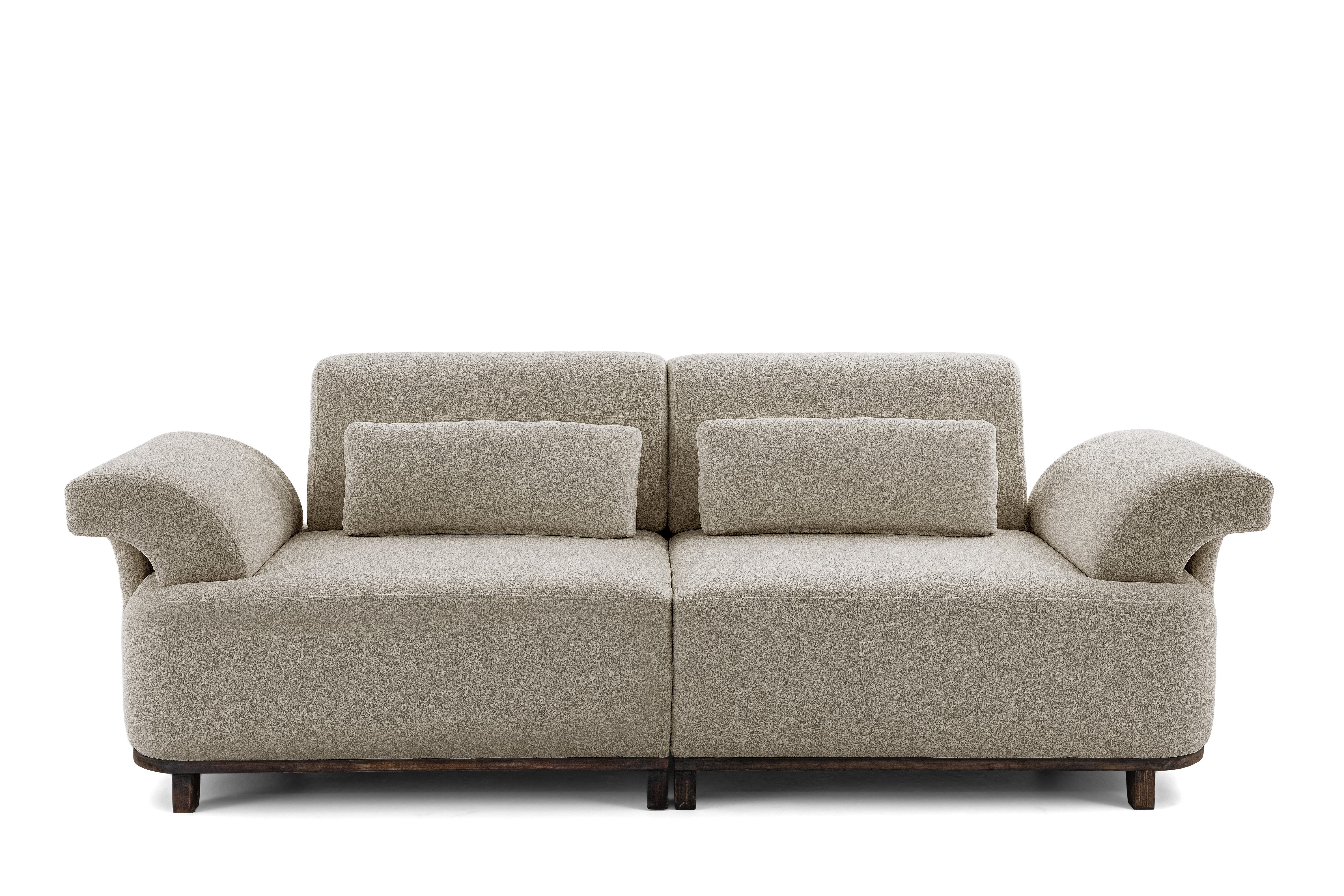 Das Sofa AURORA wurde mit Blick auf höchsten Nutzungskomfort und zeitlose Ästhetik entworfen. Die Sitzflächen und Rückenlehnen sind mit hochelastischem HR-Schaumstoff gefüllt, der sich durch seine außergewöhnliche Elastizität und Verformungsbeständigkeit auszeichnet, wodurch das Sofa auch nach intensivem Gebrauch seine Form und seinen Komfort beibehält. Das solide Gestell basiert auf einer Konstruktion aus Massivholz und Möbelplatten, die Langlebigkeit und Stabilität für viele Jahre garantiert. Eine Besonderheit dieses Modells sind die Dekoreinlagen aus naturbelassenem Buchenholz, die in einem zarten Seidenglanz ausgeführt sind - sie verleihen dem Möbelstück einen eleganten und edlen Charakter...