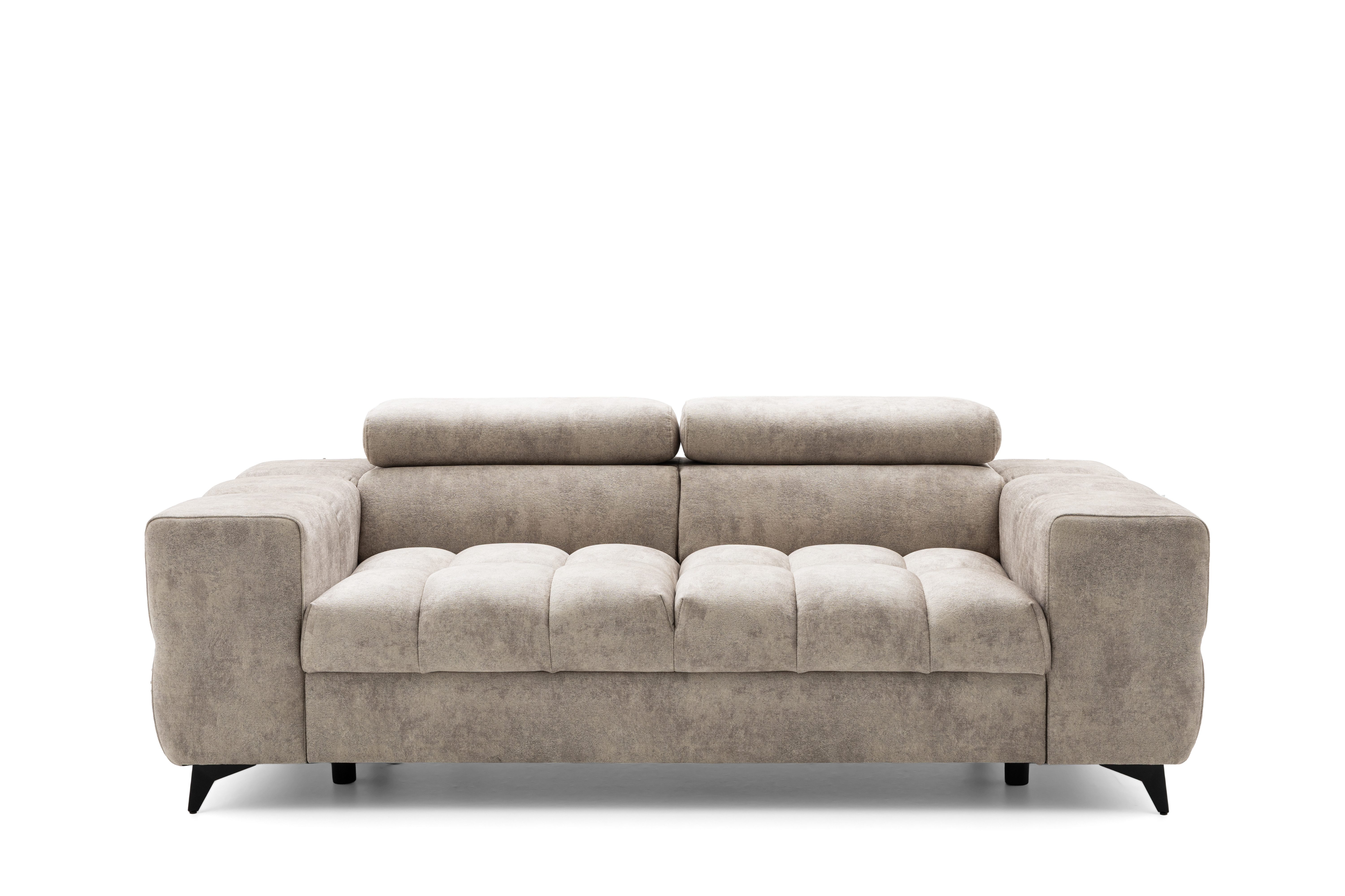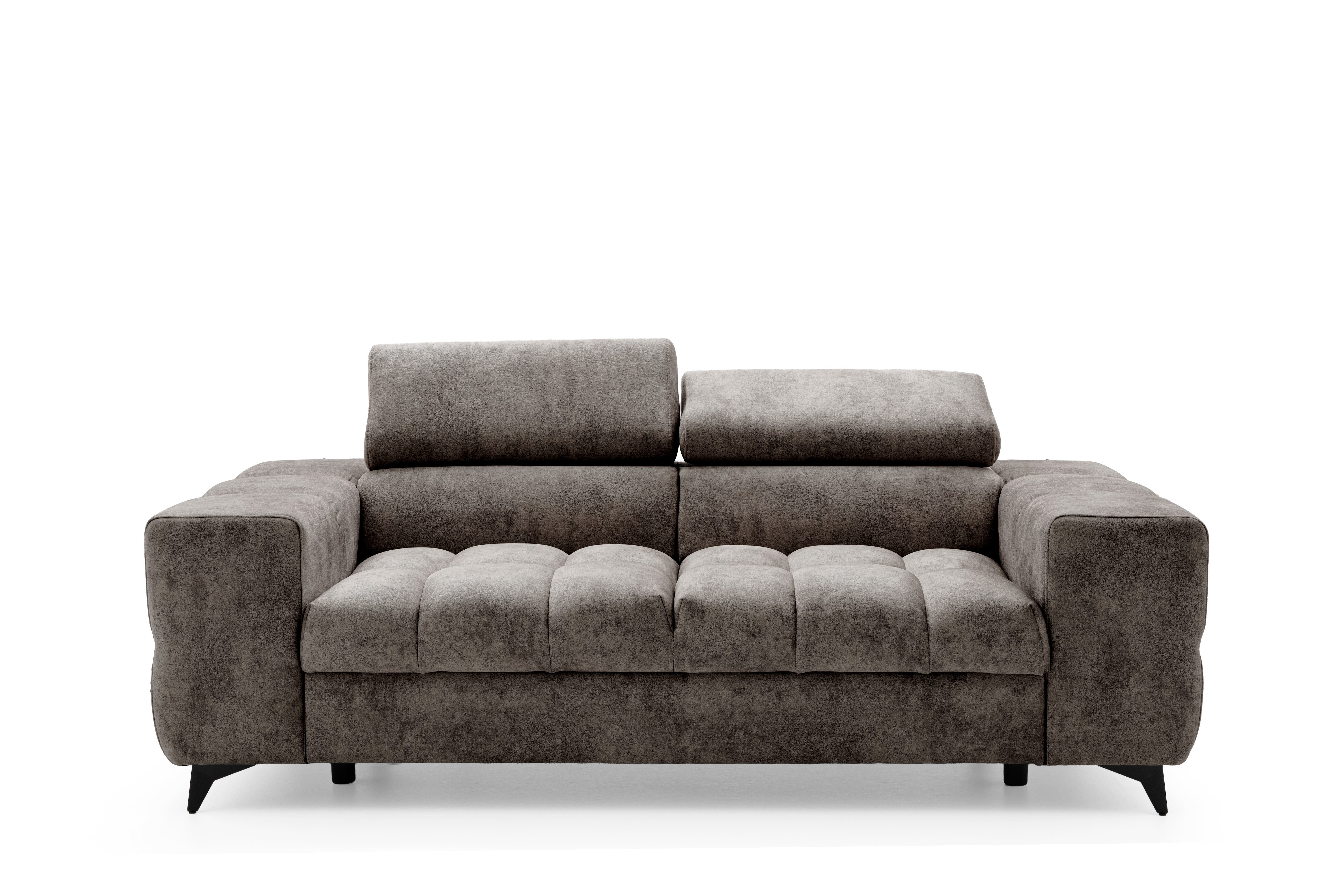 Das 2-Sitzer-Sofa ist ein Angebot für Menschen, die modernes Design, hohe Verarbeitungsqualität und maximalen Komfort in kompakter Form schätzen. Seine elegante, schlichte Linie mit charakteristischen Nähten auf der Sitzfläche und massiven Armlehnen sorgt dafür, dass sich das Möbelstück sowohl in minimalistischen als auch in eher klassischen Innenräumen perfekt einfügt. Die verstellbaren Kopfstützen ermöglichen es, die Rückenlehne an die individuellen Bedürfnisse des Benutzers anzupassen und sorgen so für Komfort beim täglichen Entspannen.