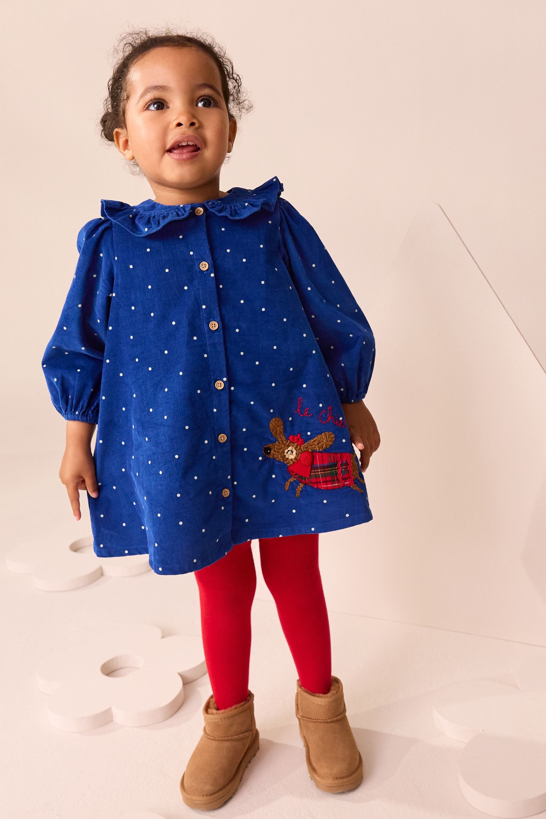 Materialzusammensetzung | Kleid: 100 % Baumwolle. Strumpfhose: 76 % Baumwolle, 22 % Polyamid, 2 % Elasthan. |