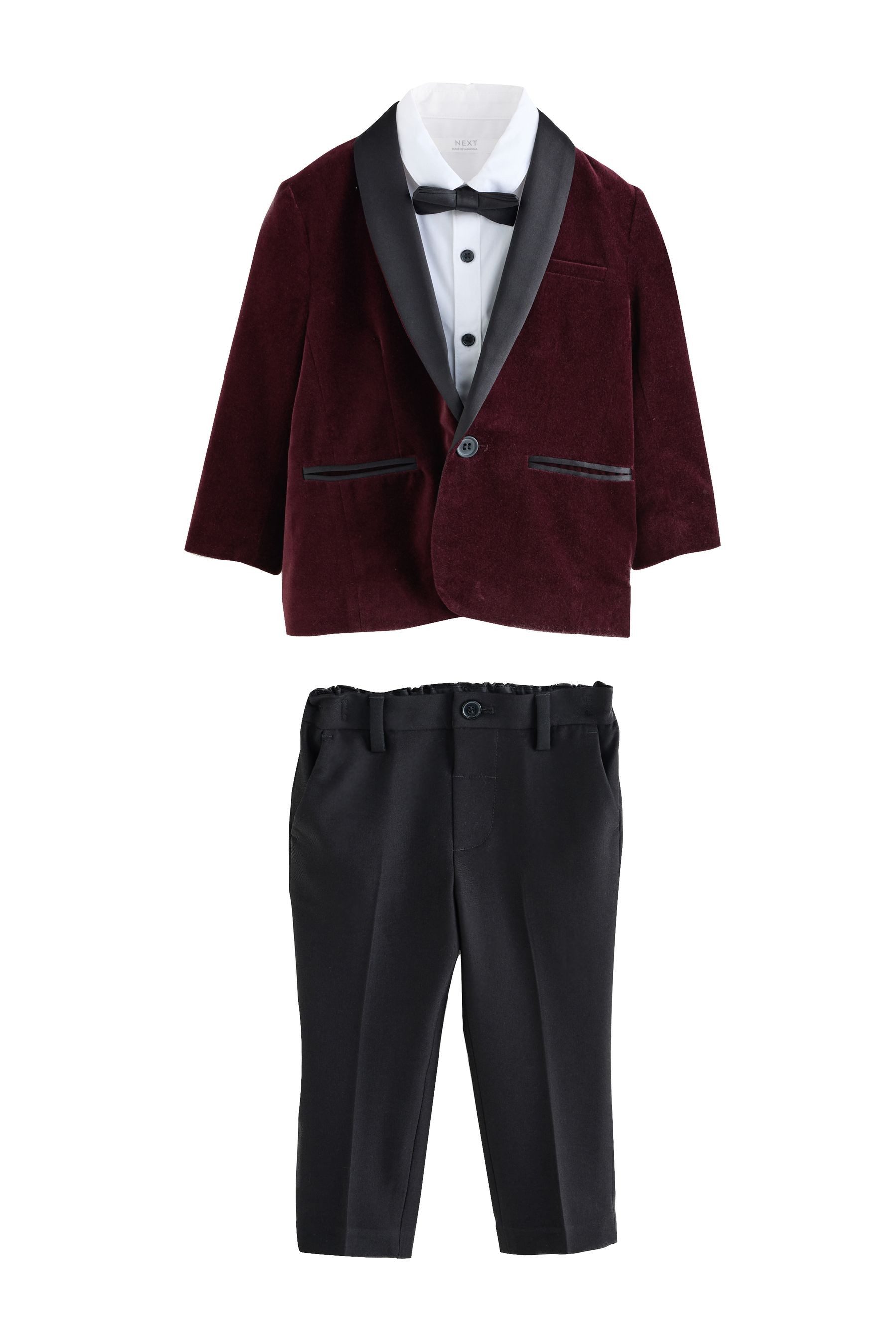 Materialzusammensetzung | Sakko Oberstoff: 100% Baumwolle. Futter: 100% Polyester/ Hemd Oberstoff: 100% Baumwolle/ Hose Oberstoff: 78% Polyester, 18% Viskose, 4% Elasthan/ Fliege Oberstoff: 100% Polyester |