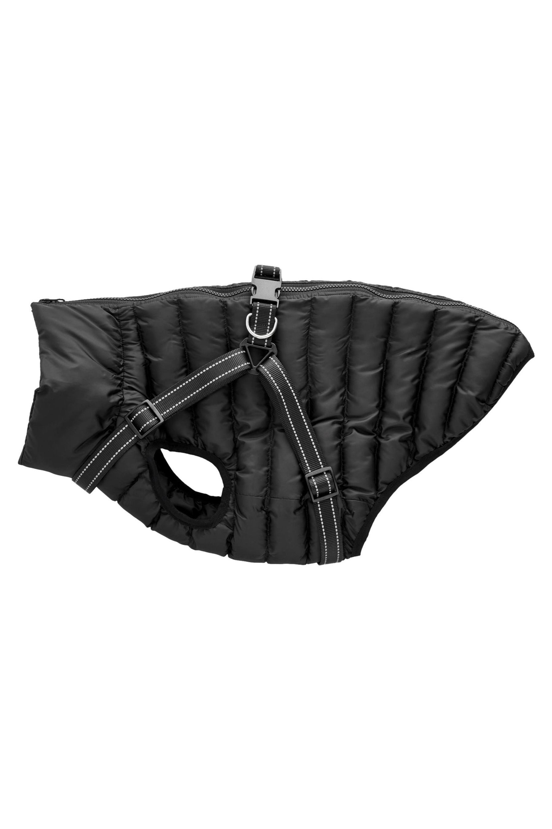 Mit diesem Hundemantel mit Hundegeschirr bleibt Ihr vierbeiniger Freund schön warm. Der Mantel hat 2 Beine, einen Reißverschluss, gepolsterte Einsätze und Metallclips für die Leine.