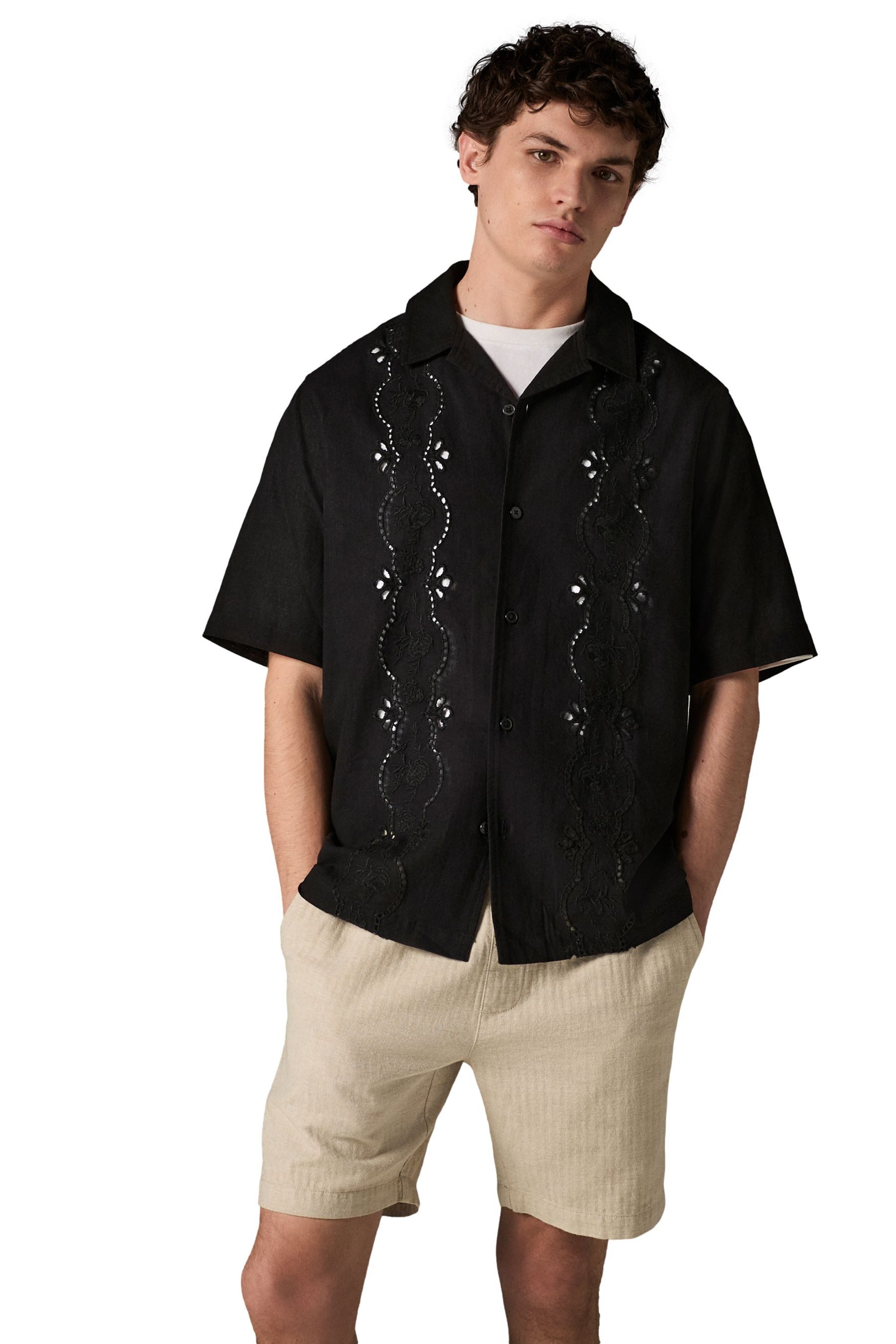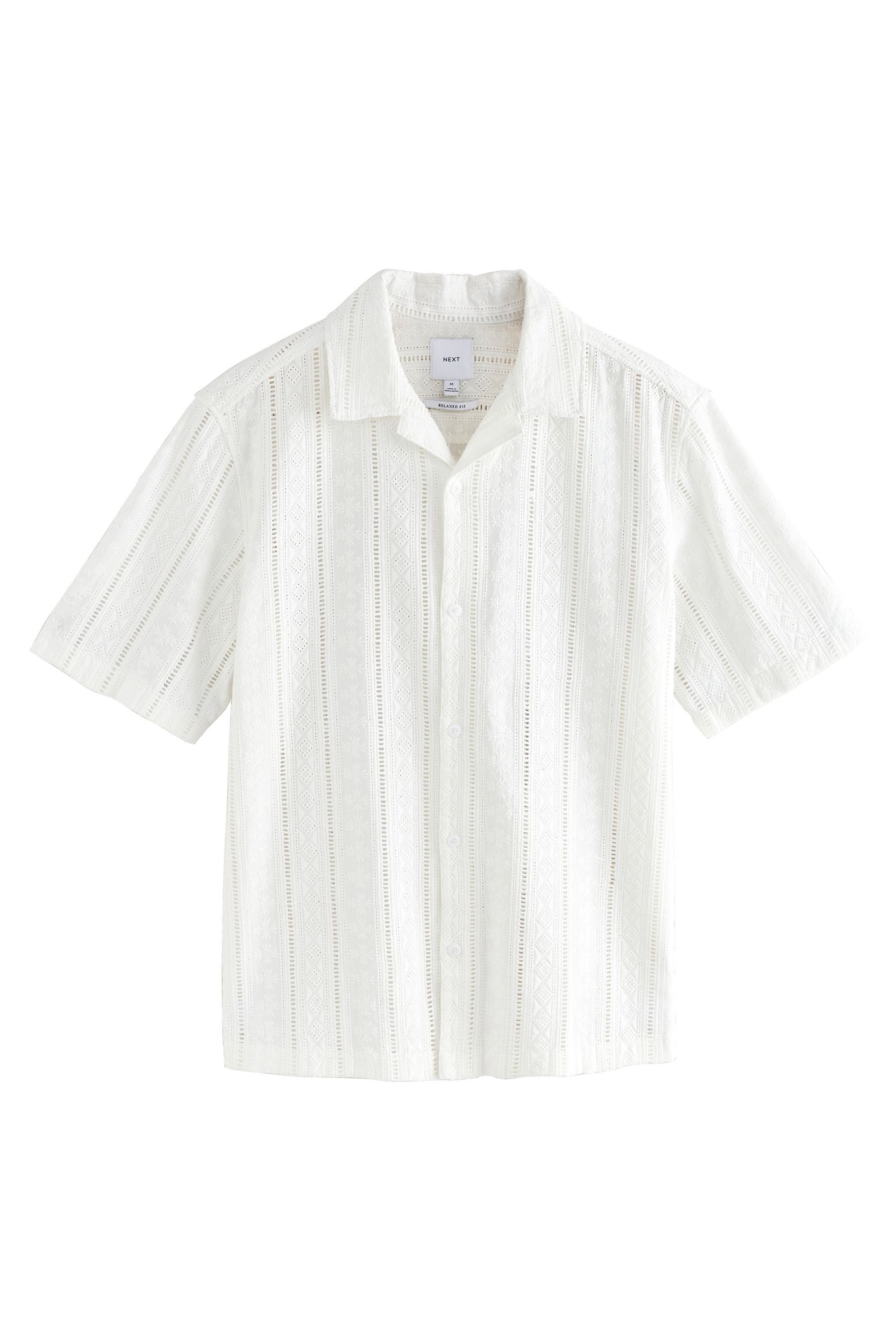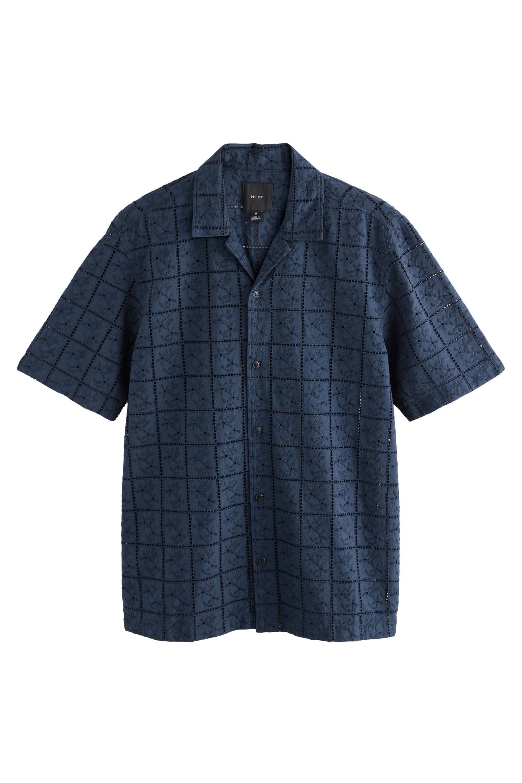Next Kurzarmhemd Kurzärmeliges, strukturiertes Hemd mit Lochspitze (1-tlg)