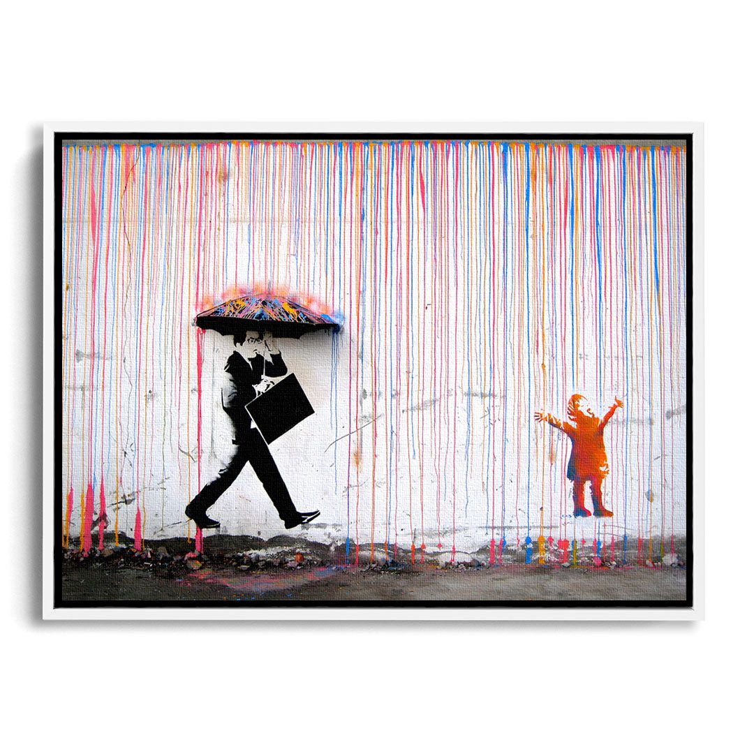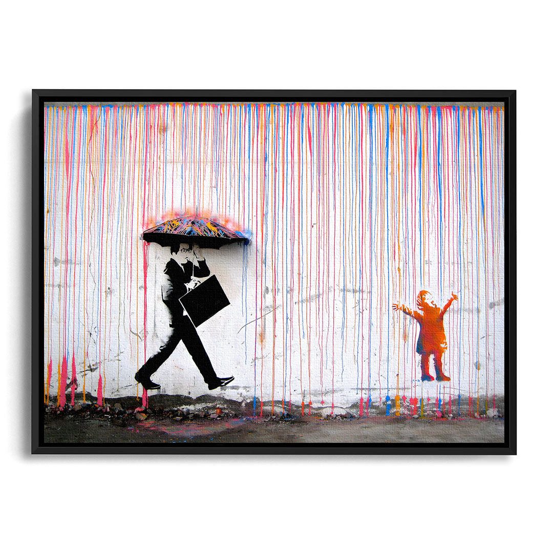 Colored Rain – Wandbild auf Leinwand & AcrylglasDieses Wandbild kombiniert Street-Art mit einer inspirierenden Botschaft. Die farbenfrohen Regentropfen und die kraftvolle Silhouette machen es zu einem einzigartigen Kunstwerk. Künstlerisches Design: Ein kontrastreicher Mix aus Schwarz-Weiß-Elementen und lebendigen Farben. Hochwertige Materialien: Erhältlich auf Leinwand oder glänzendem Acrylglas für eine besondere Tiefenwirkung. Inspirierender Akzent: Perfekt für Wohnräume, Büros oder kreative Bereiche, die eine besondere Atmosphäre suchen. Deine Vorteile bei uns: Einzigartige Motive für dein Zuhause Made in Germany Montagefertig inkl. Aufhängeset Kein Risiko! 30 Tage Geld-zurück-Garantie