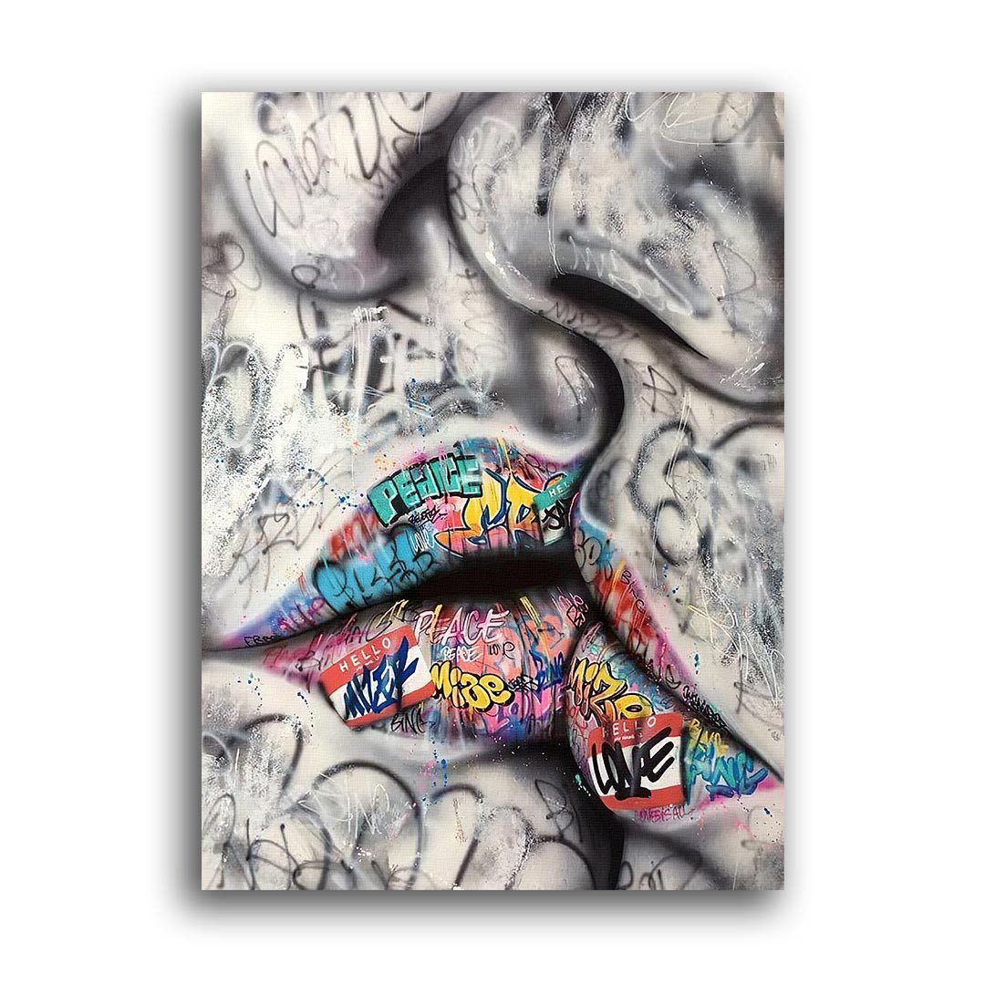 Graffiti Kiss – Wandbild auf Leinwand & AcrylglasDieses Wandbild verbindet Romantik und Streetart auf spektakuläre Weise. Die lebhaften Graffiti-Akzente auf den Lippen sorgen für einen urbanen und künstlerischen Look, der jeden Raum in einen echten Hingucker verwandelt. Ikonisches Design: Romantische Lippen gepaart mit modernen Graffiti-Details für ein einzigartiges Kunstwerk. Hochwertige Materialien: Präziser Druck auf robuster Leinwand oder stilvollem Acrylglas für brillante Farben und eine langlebige Qualität. Ein stilvolles Statement: Perfekt für moderne Wohnzimmer, Schlafzimmer oder kreative Räume. Deine Vorteile bei uns: Einzigartige Motive für dein Zuhause Made in Germany Montagefertig inkl. Aufhängeset Kein Risiko! 30 Tage Geld-zurück-Garantie