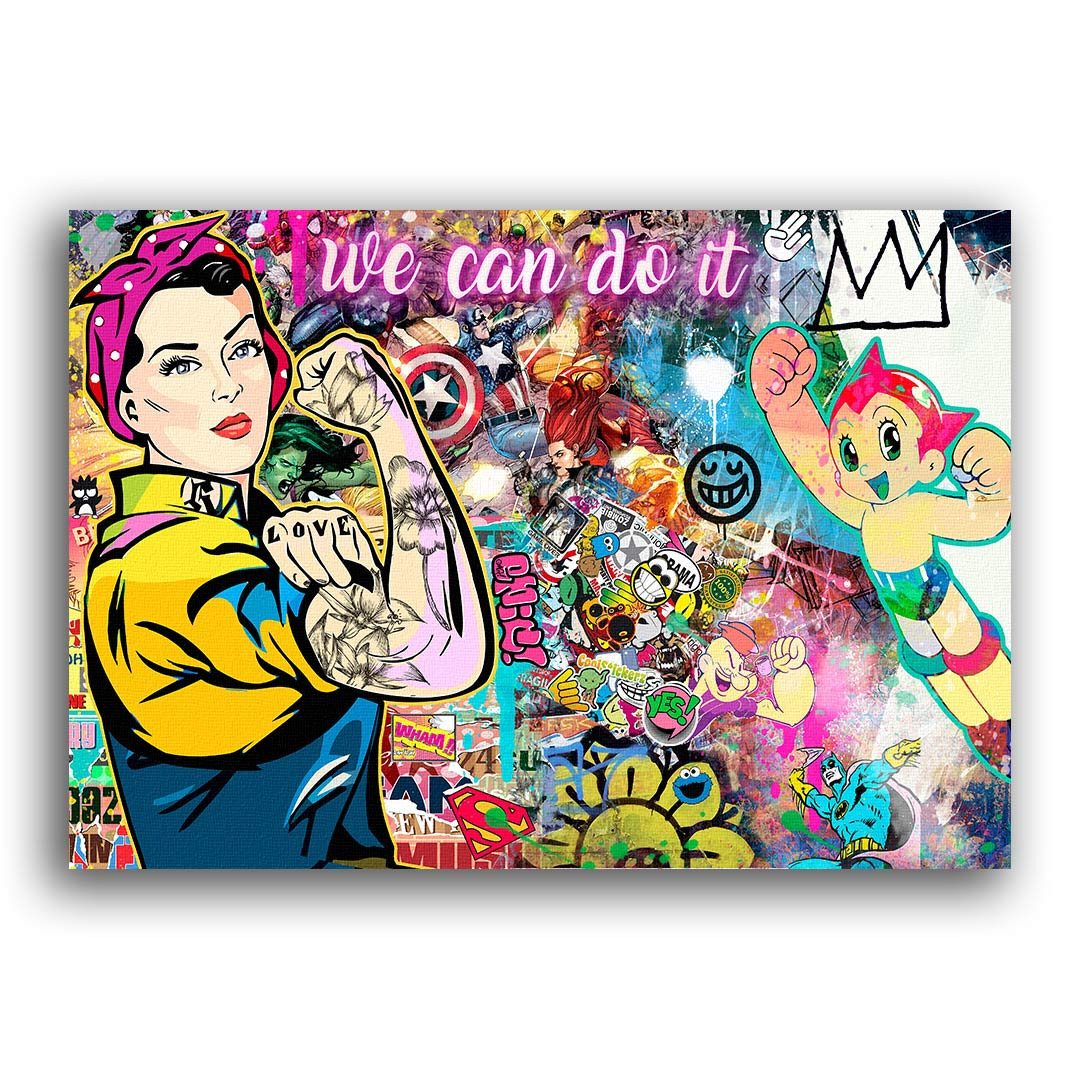 Rosie – Wandbild auf Leinwand & Acrylglas Dieses lebendige und kraftvolle Wandbild zeigt die ikonische Rosie, die mit ihrem "We can do it"-Herausforderungsbild und einem energiegeladenen Graffiti-Hintergrund eine positive Botschaft von Stärke und Selbstbewusstsein verbreitet. Perfekt für ein kreatives Zuhause. Design: Ein popkulturelles Statement mit einer modernen Interpretation von Rosie the Riveter im Graffiti-Stil, das Kraft und Inspiration vermittelt. Hochwertige Materialien: Wähle zwischen edler Leinwand oder glänzendem Acrylglas für beeindruckende Tiefenwirkung. Stilvolle Inspiration: Dieses Wandbild ist ideal für ein modernes, trendiges Zuhause oder als Statement in deinem Arbeitszimmer. Deine Vorteile bei uns: Einzigartige Motive für dein Zuhause Made in Germany Montagefertig inkl. Aufhängeset Kein Risiko! 30 Tage Geld-zurück-Garantie