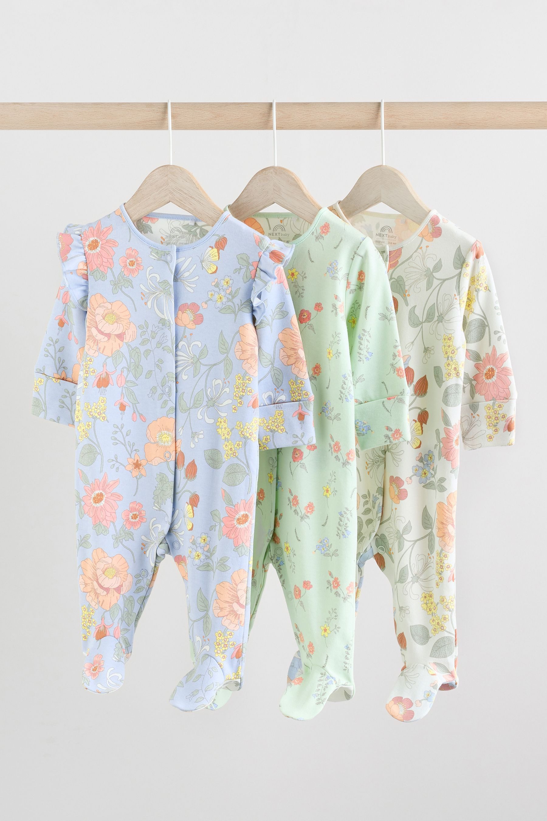 Next Schlafoverall Baby Schlafanzüge mit Blumenmuster, 3er-Pack (3-tlg)