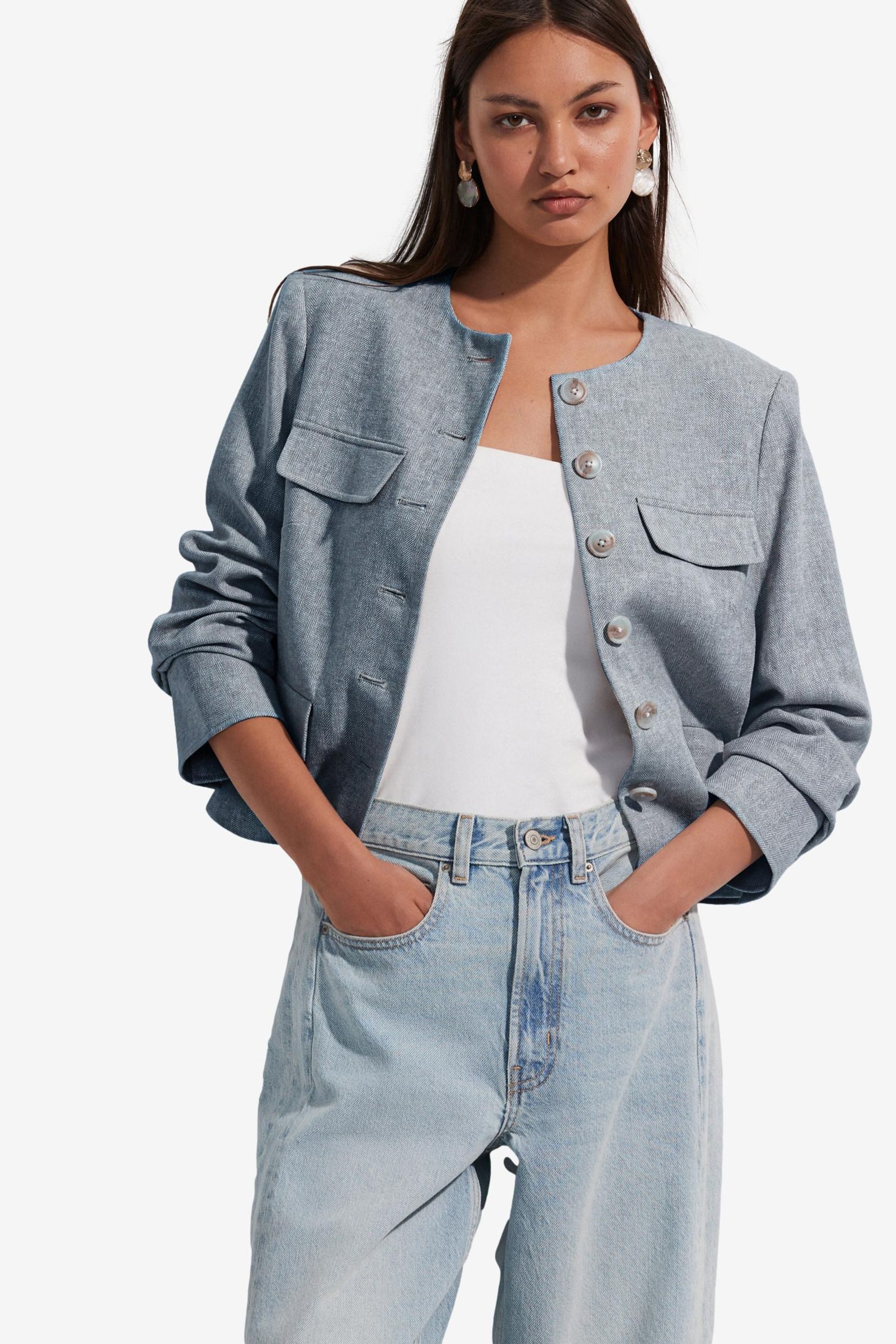 Materialzusammensetzung | 53 % Leinen, 29 % Polyester (recycelt), 16 % Viskose, 2 % Elasthan. |