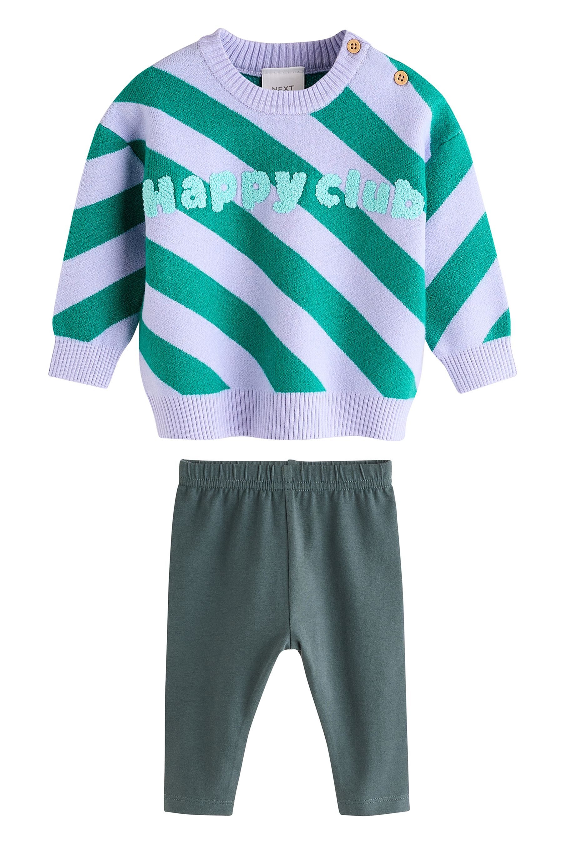 Materialzusammensetzung | Pullover: 48 % Viskose, 30 % Polyester, 22 % Polyamid. Leggings: 96 % Baumwolle, 4 % Elasthan. |