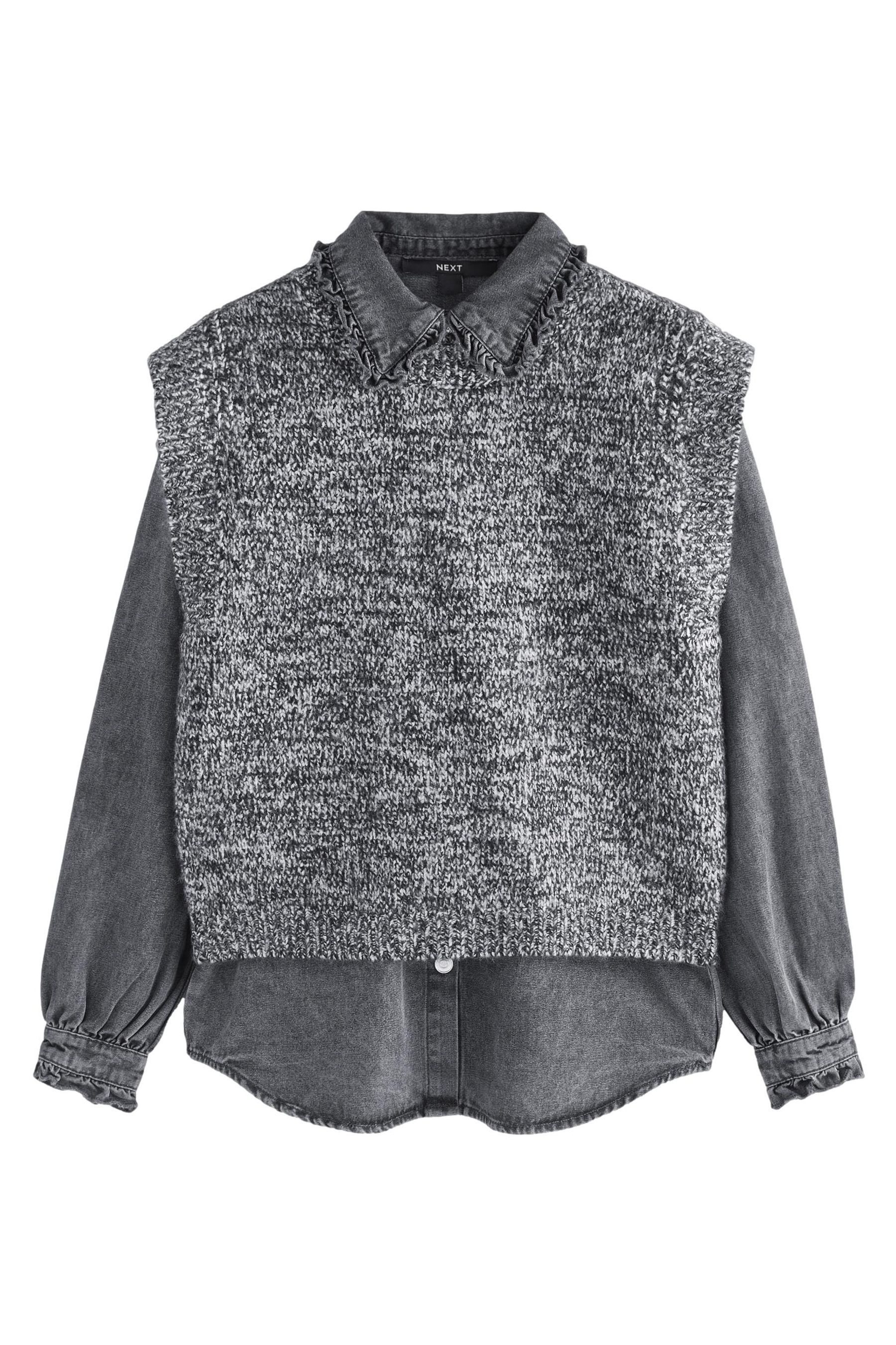 Next Strickpullover Pullover mit Denim-Hemd-Detail und Wollanteil (2-tlg)