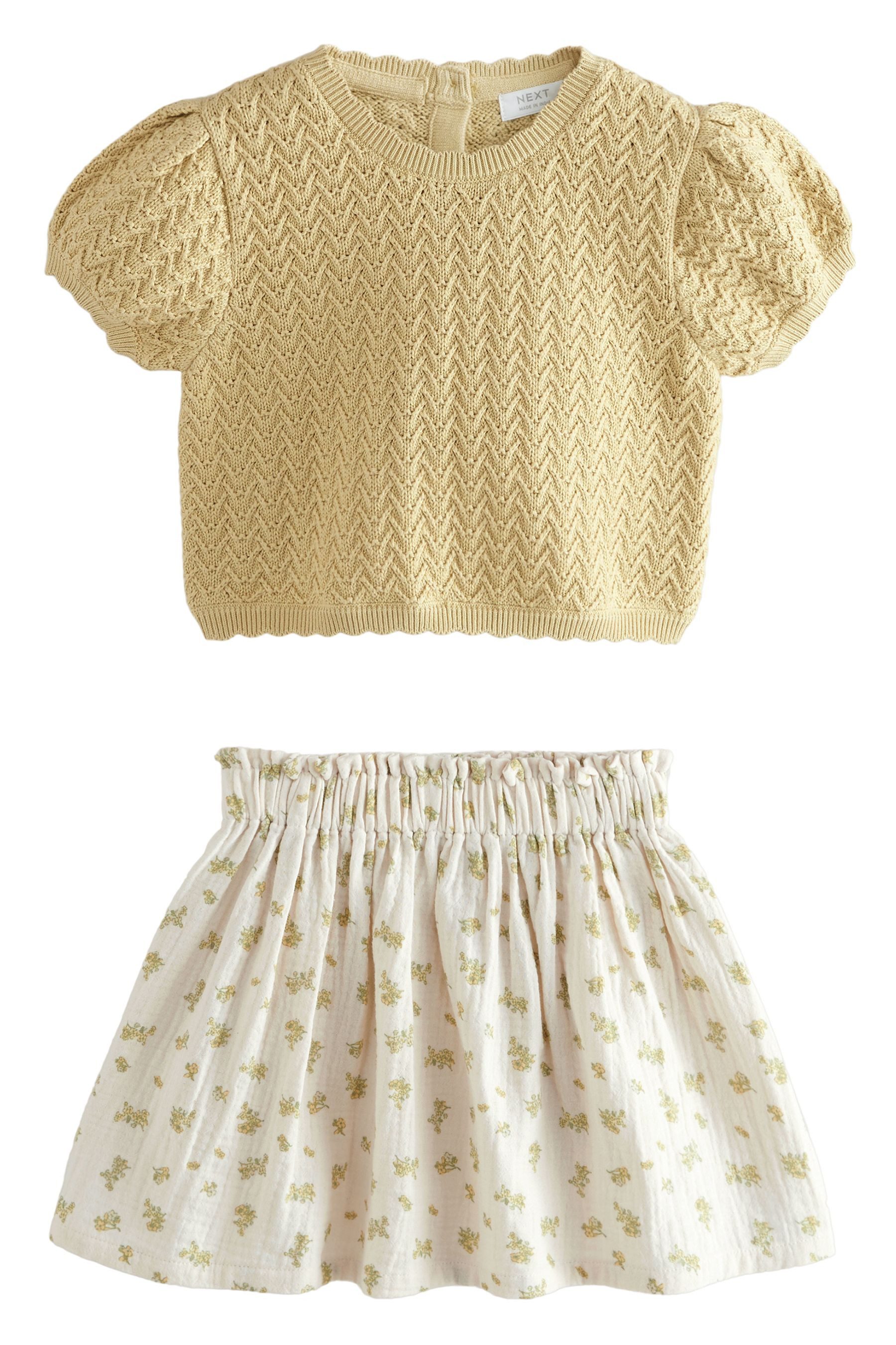 Materialzusammensetzung | Pullover: 100 % Baumwolle. Rock: 100 % Baumwolle. |