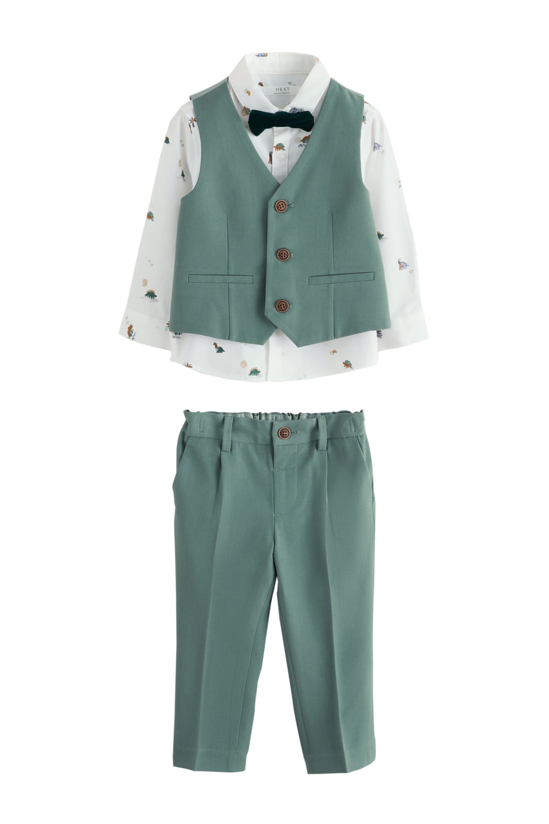 Materialzusammensetzung | Weste, Hauptmaterial: 78 % Polyester, 17 % Viskose, 5 % Elasthan. Futter: 100 % Polyester. Hemd, Hauptmaterial: 100 % Baumwolle. Hose, Hauptmaterial: 78 % Polyester, 17 % Viskose, 5 % Elasthan. Fliege, Hauptmaterial: 100 % Polyester. |