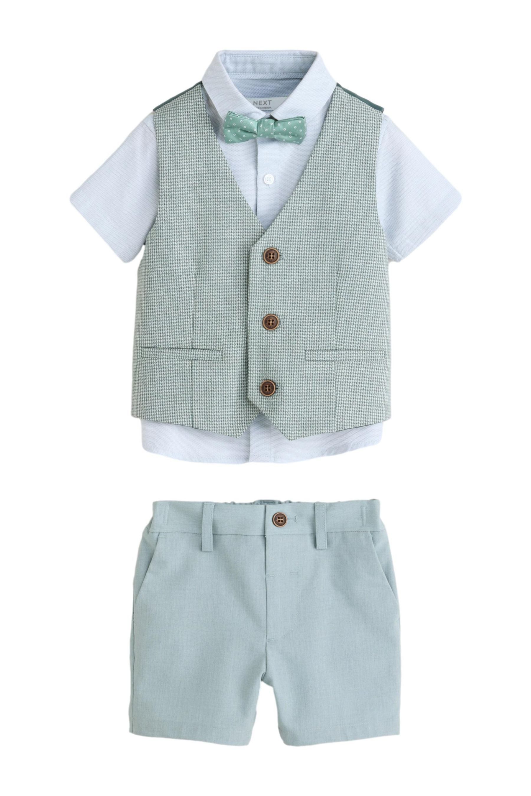 Materialzusammensetzung | Weste, Hauptmaterial: 77 % Polyester, 21 % Viskose, 2 % Elasthan. Futter: 100 % Polyester. Hemd, Hauptmaterial: 100 % Baumwolle. Shorts, Hauptmaterial: 69 % Polyester, 25 % Viskose, 6 % Elasthan. Fliege, Hauptmaterial: 100 % Polyester. |