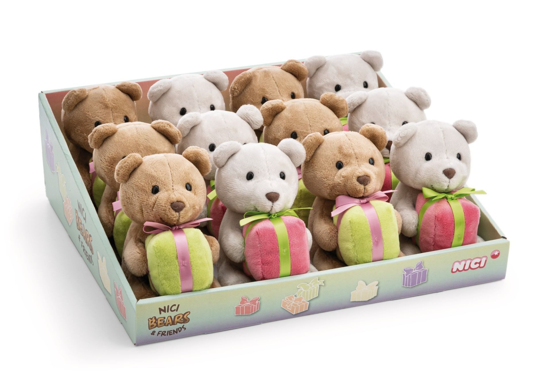 Die beiden niedlichen Bären aus kuschelweichem Plüsch in braun und grau sind die perfekten Geschenkboten für kleine und große Teddybären-Fans! In sitzender Position halten sie stolz ein großes Geschenk zwischen ihren Pfoten - ein Anblick, der Herzen höher schlagen lässt! Als bärenstarkes Mitbringsel zu besonderen Anlässen oder einfach so, um jemandem ein Lächeln ins Gesicht zu zaubern, warten die beiden Bärenfreunde in einem farbenfrohen Thekendisplay auf neue Abenteuer. Die Bären sind Teil der NICI GREEN Produktwelt. Für NICI GREEN Produkte verwenden wir fast ausschließlich Plüsch- und Füllstoffe, die aus recycelten Materialien bestehen. Hierfür werden vor allem alte PET-Flaschen zu RPET verarbeitet.