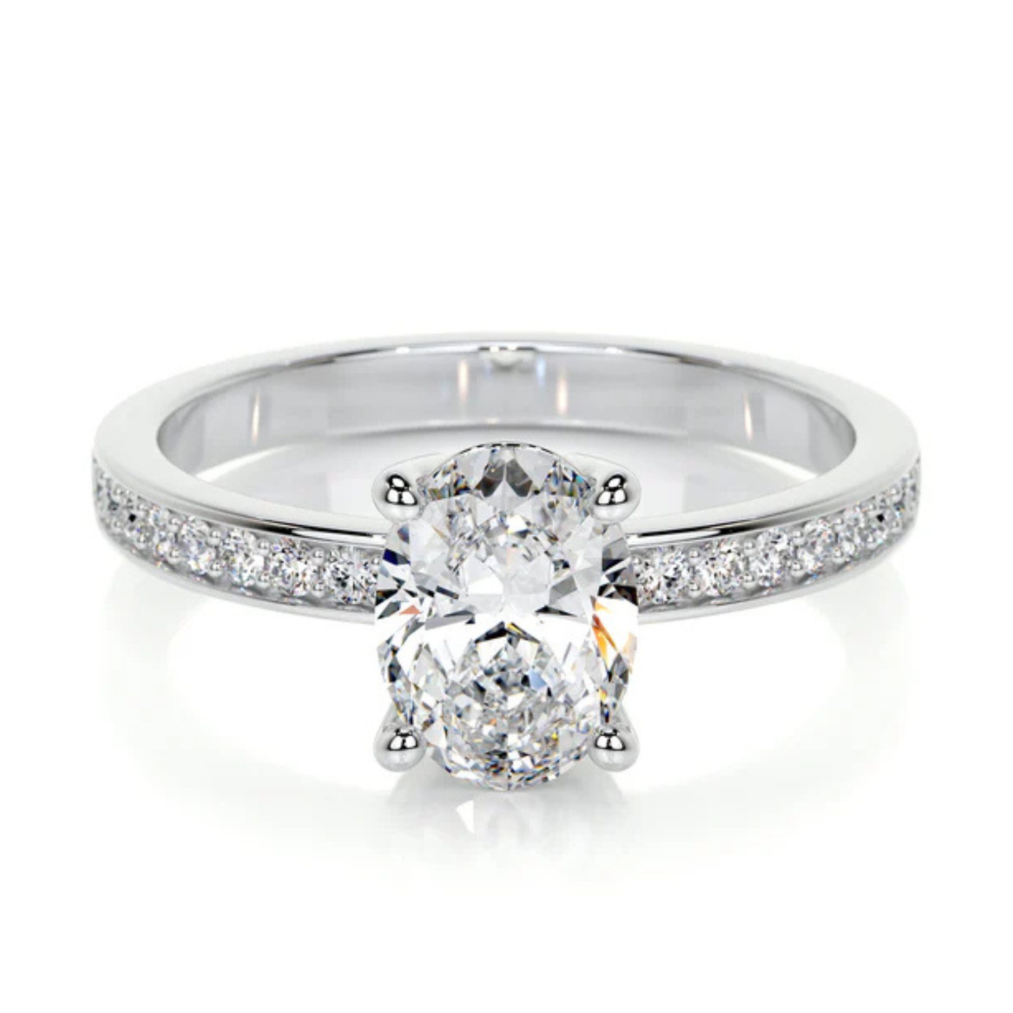 Erleben Sie die perfekte Verbindung von Eleganz mit unserem ovalen Solitärring aus 585 Weiß- oder Gelbgold, einem Labordiamanten und zusätzlichen Diamanten an der Seite. Lassen Sie sich von der Schönheit und Qualität dieses besonderen Schmuckstücks begeistern.