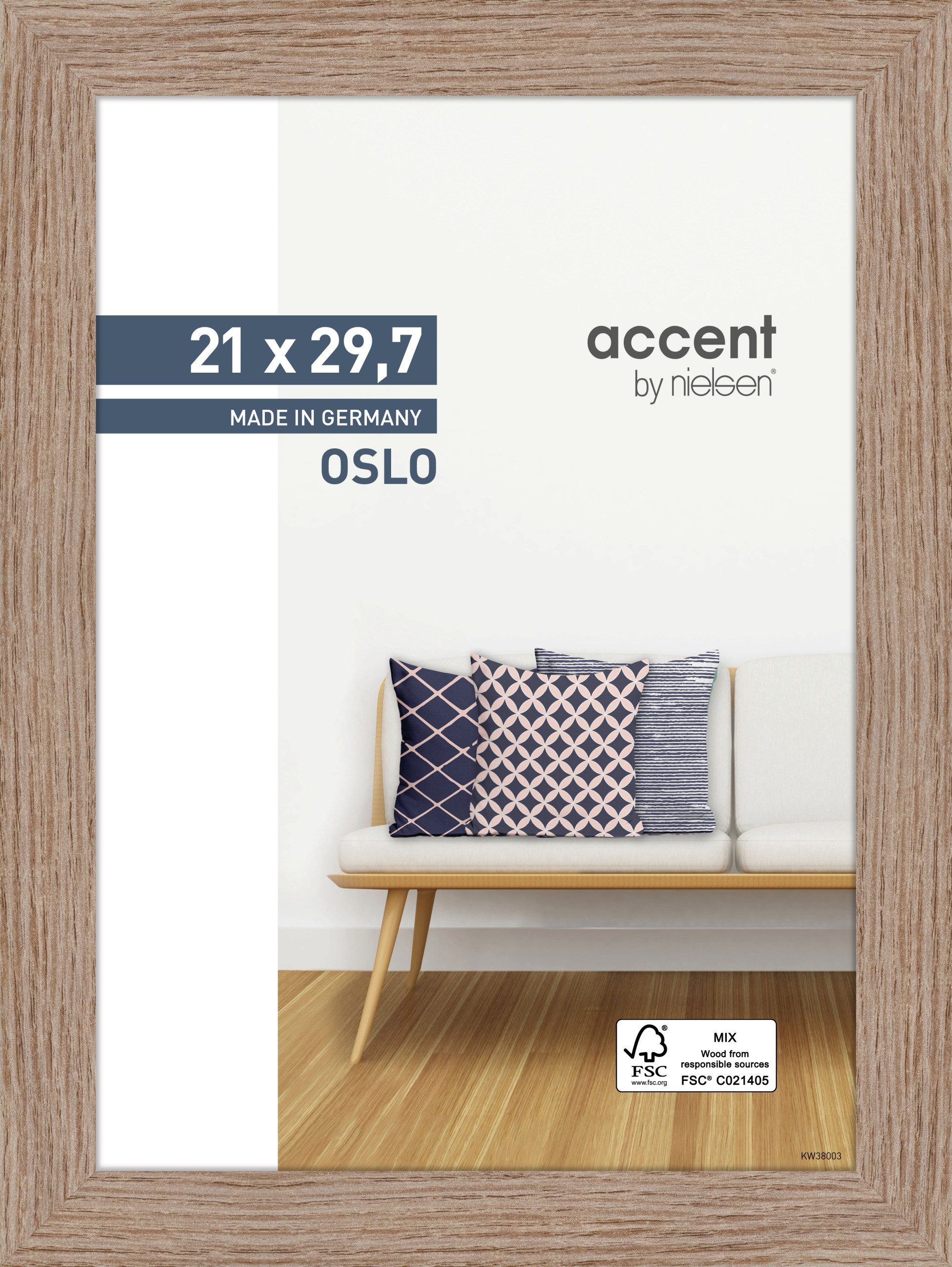 Oslo mit seinem 28 mm breiten Profil ist in fünf Farben und 7 Formaten erhältlich. Die Rahmen in Schwarz, Weiß, Eiche, Silber oder Blau verleihen Ihrem Bild einen modernen und attraktiven Rahmen.