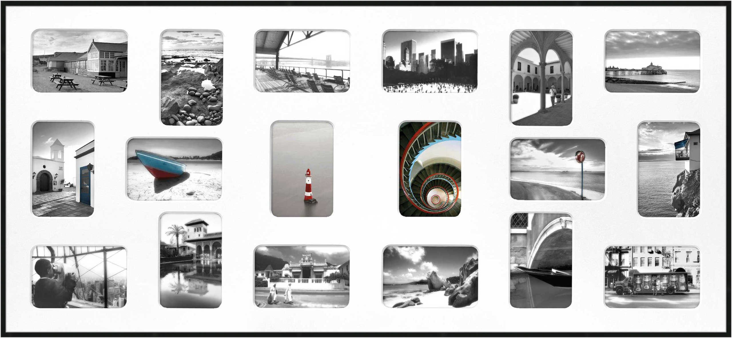 Mach aus deinen Fotos schnell und einfach wunderschöne, hochwertige Fotocollage. Klebe die Bilder mit den beigefügten Klebepads hinter das Passepartout und in kürzester Zeit ist deine individuelle Collage erstellt. Die robuste MDF-Rückwand kann an den Drehfedern im Hoch- oder Querformat aufgehängt werden.